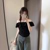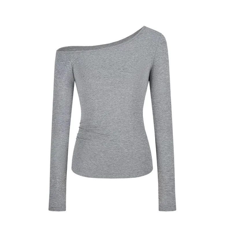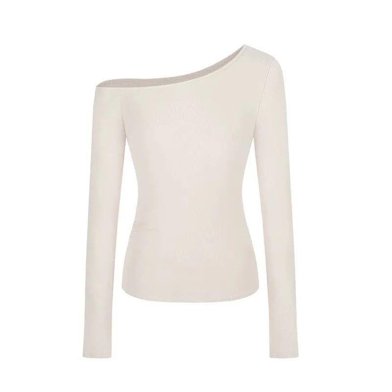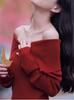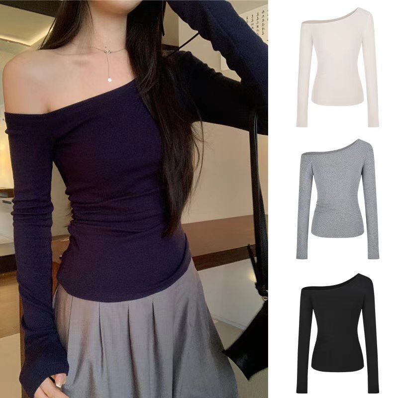 Top ajustado de hombros descubiertos con una capa base para mujer, estilo chica hot, nuevo temperamento chic de estilo coreano ajustado de manga larga para principios de la primavera de 2025