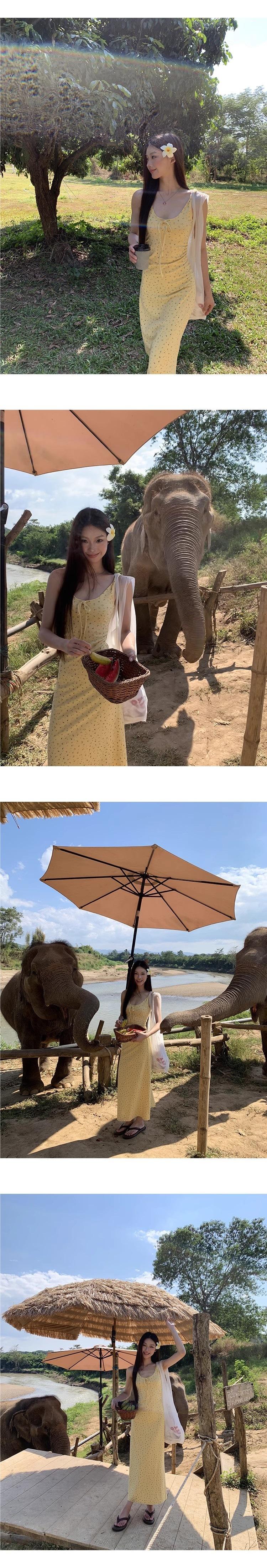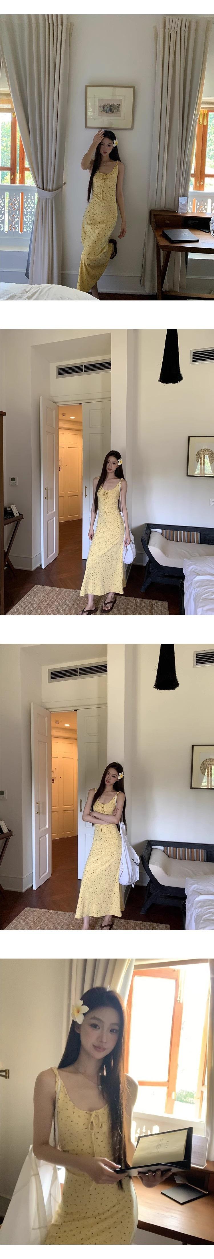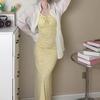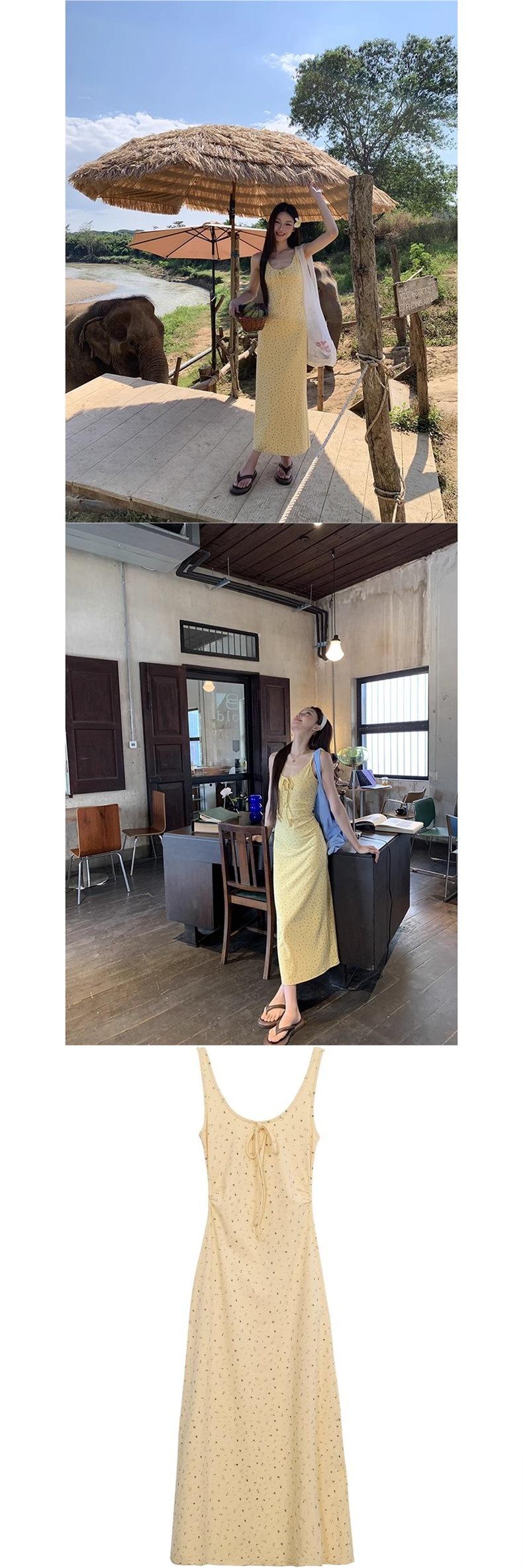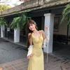 Temperamento Dulce Floral Francés Amarillo Camisola Vestido Mujer Verano Nueva Colección Adelgazante Ajustado Impresionante Vestido Largo