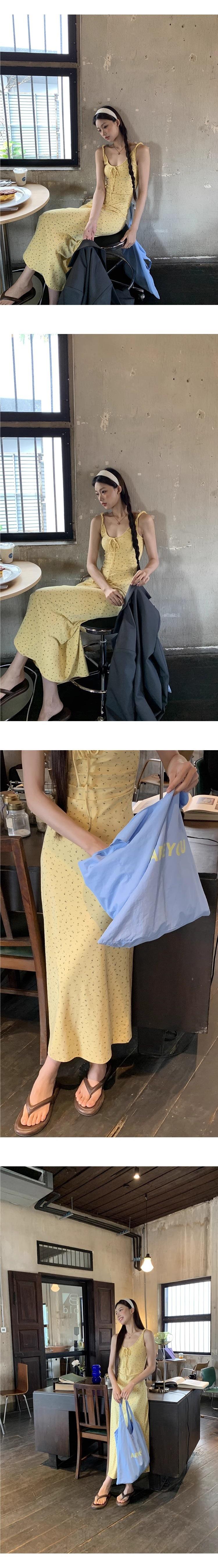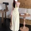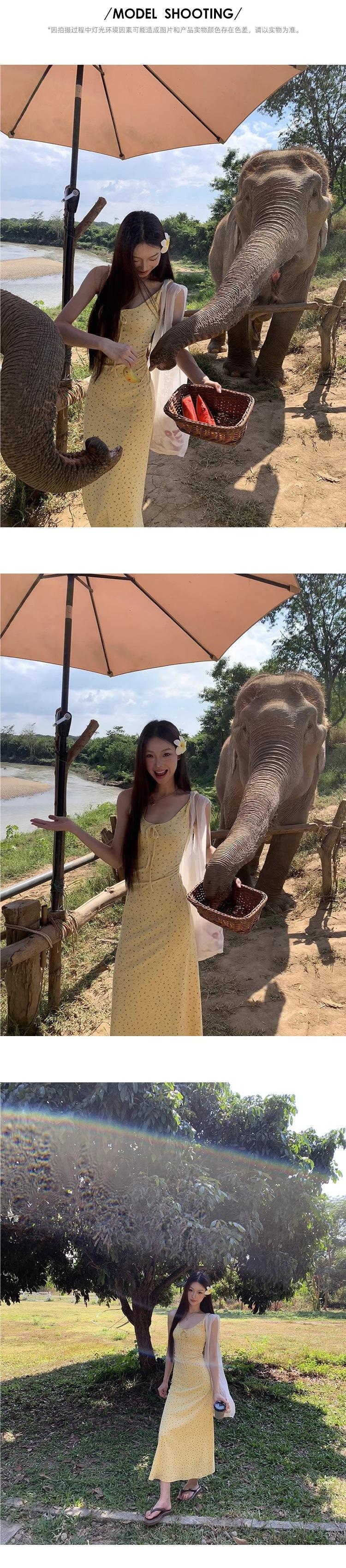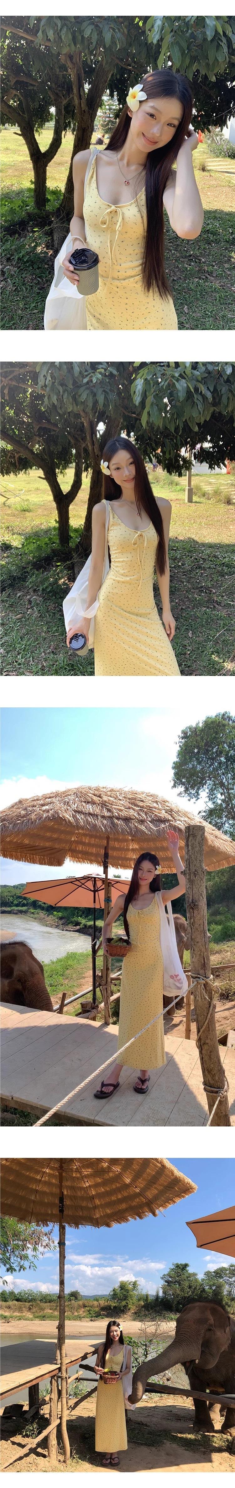 Temperamento Dulce Floral Francés Amarillo Camisola Vestido Mujer Verano Nueva Colección Adelgazante Ajustado Impresionante Vestido Largo