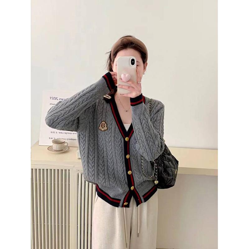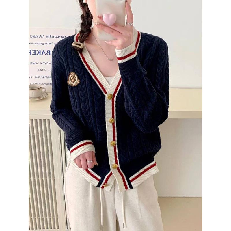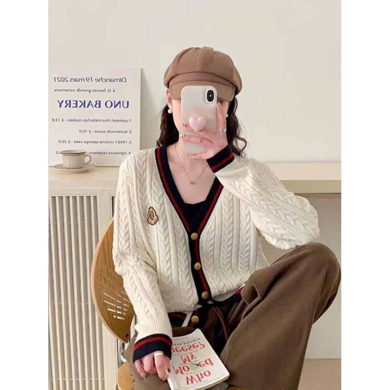 Abrigo suéter de cuello en V para mujer otoño 2025 nuevo estilo casual versátil corto cárdigan de punto estilo hot top petite