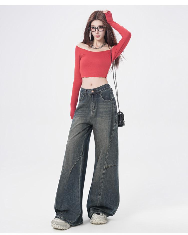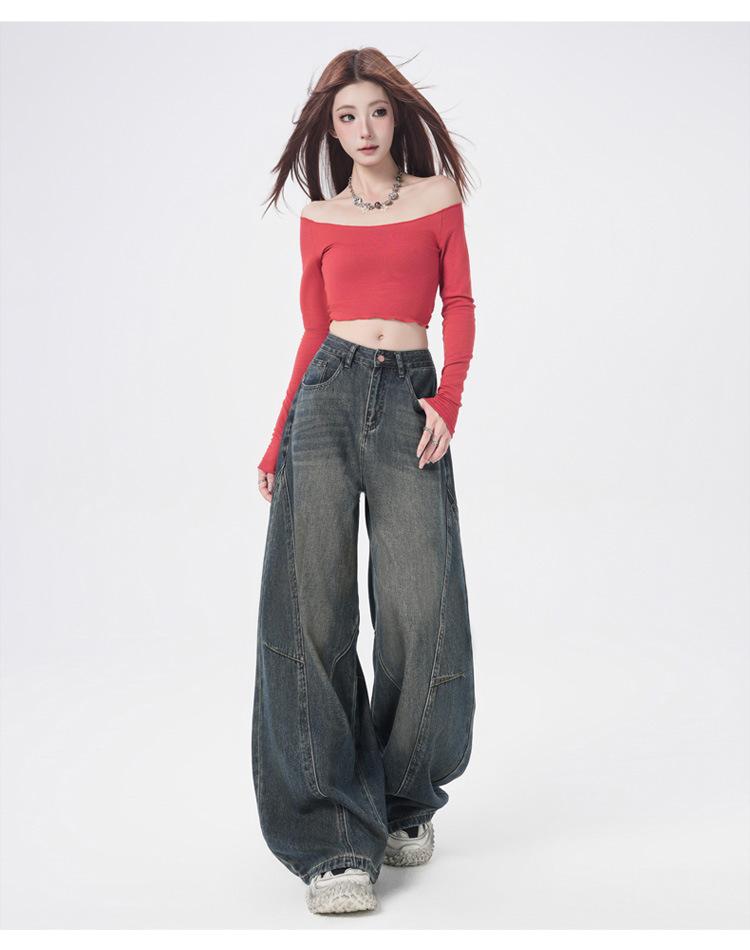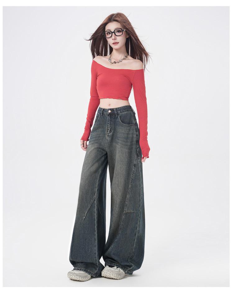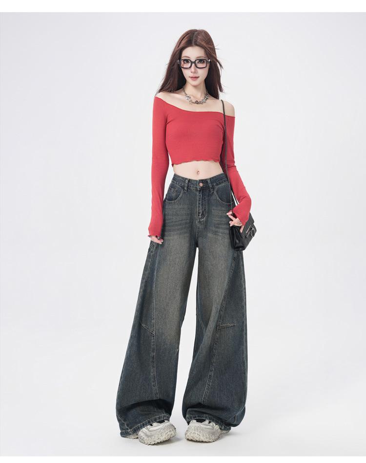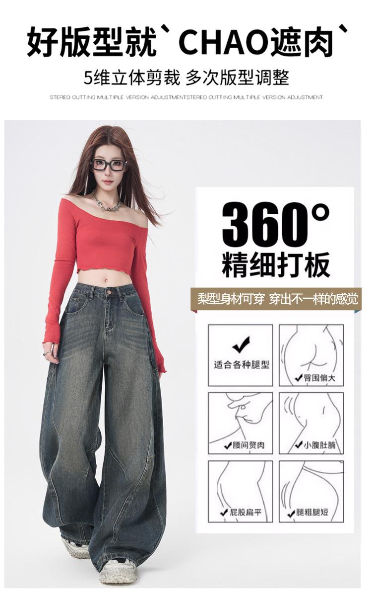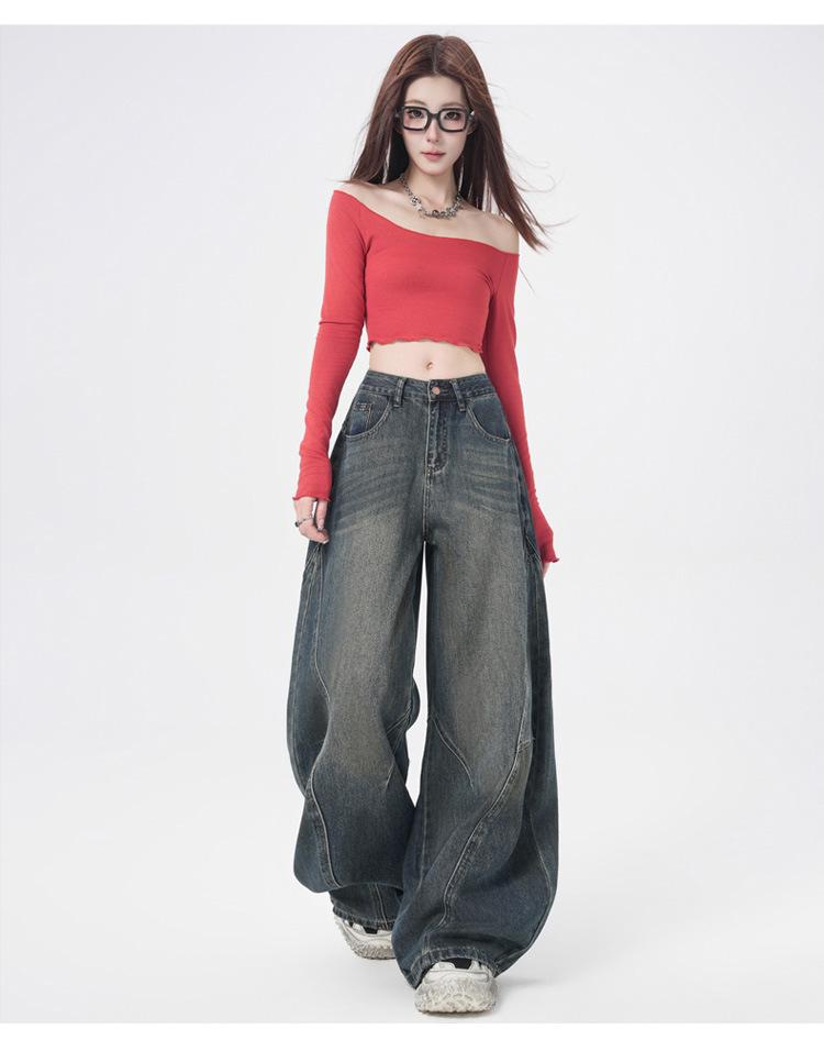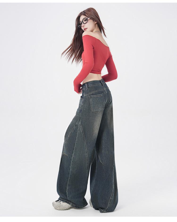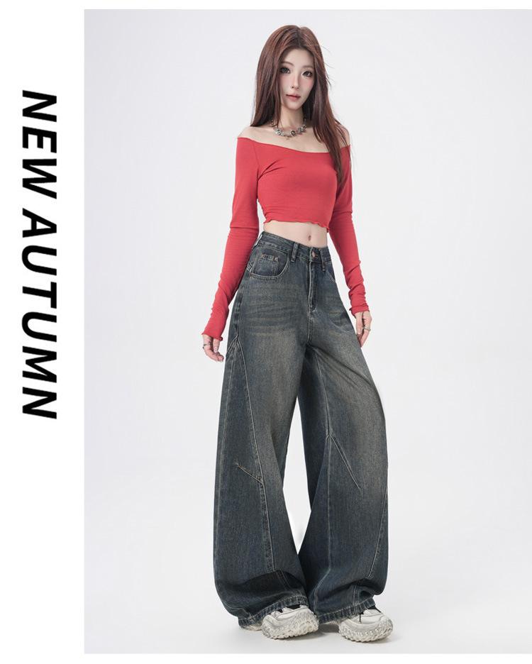 2025 Otoño/Invierno Nuevo Moda Chica Picante Tendencia Retro Pantalones Cimitarra Holgados Pantalones de Pierna Ancha Jeans de Mujer