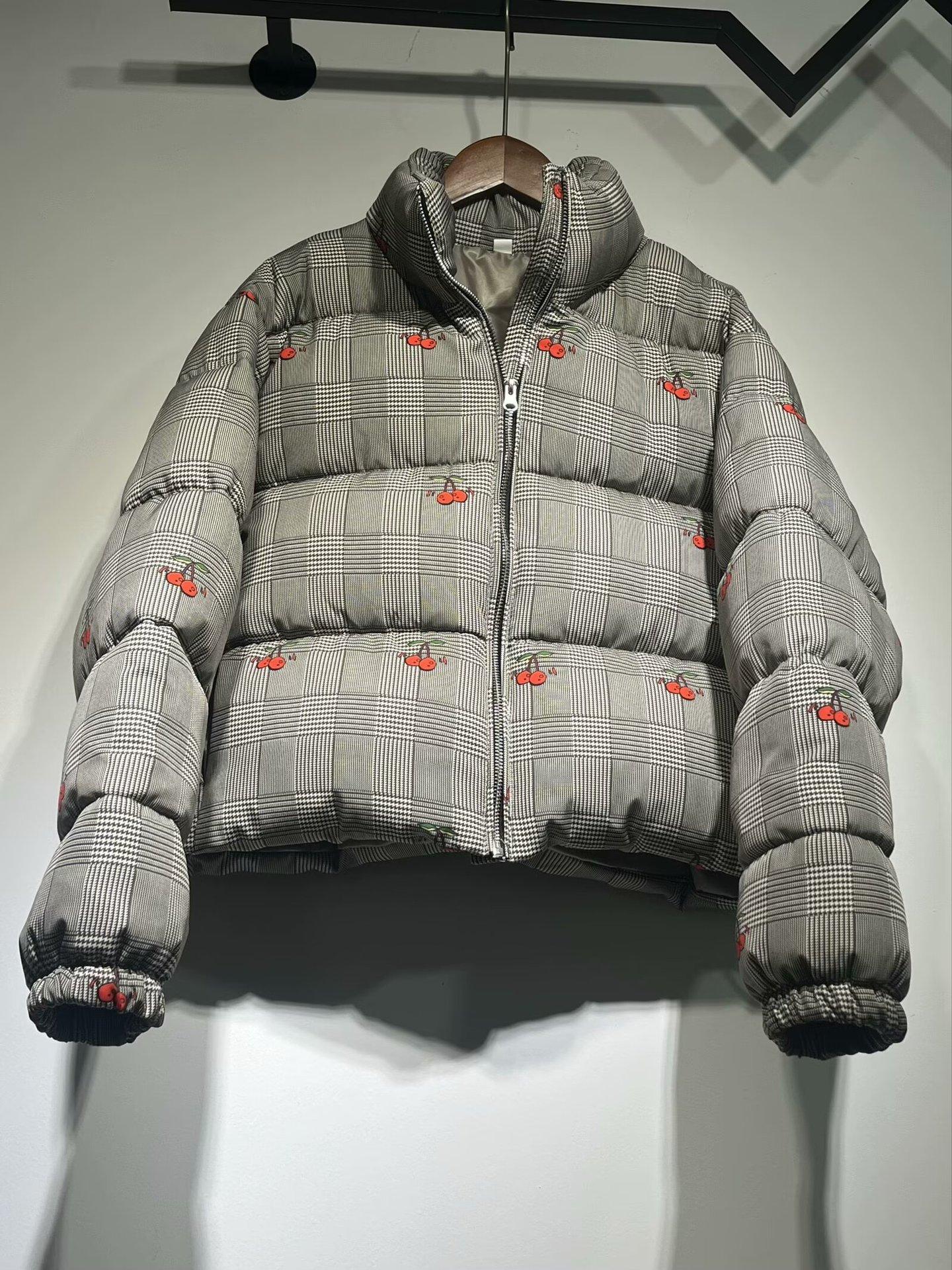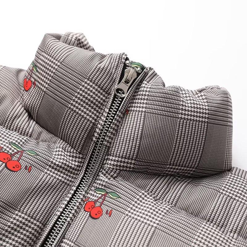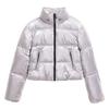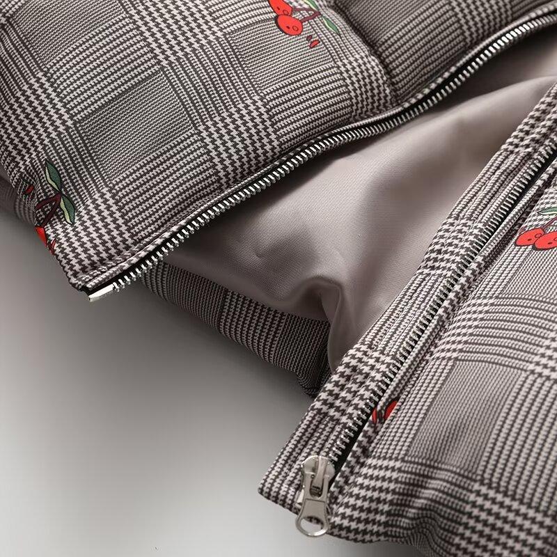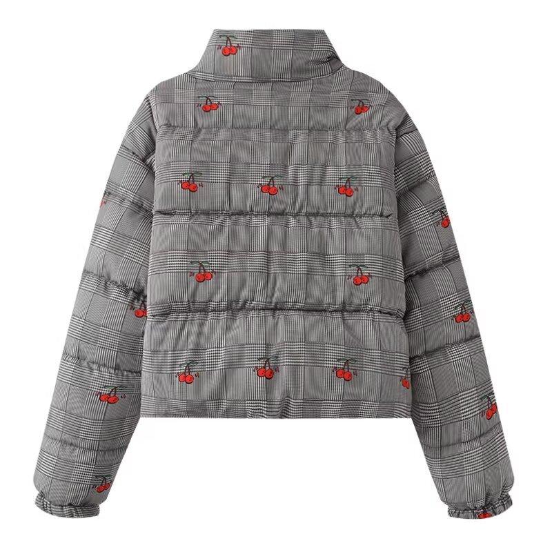 Comercio exterior transfronterizo mayoreo 2024 otoño e invierno nuevo abrigo corto acolchado de algodón para mujer con estampado retro americano cuello alto