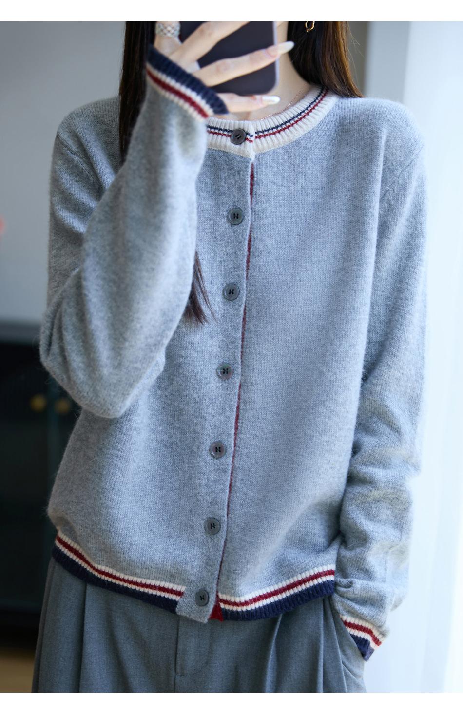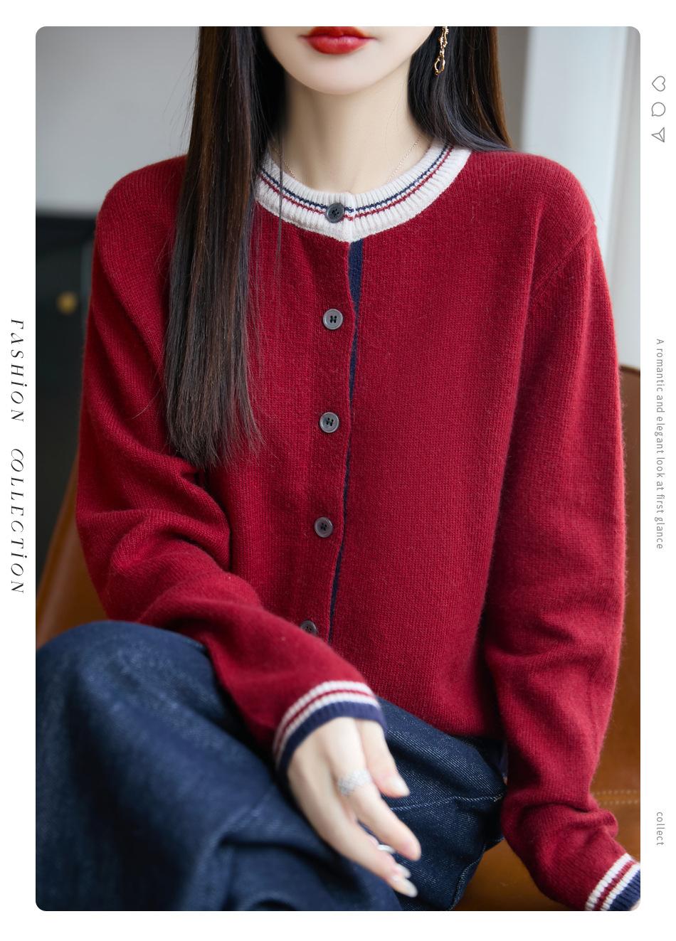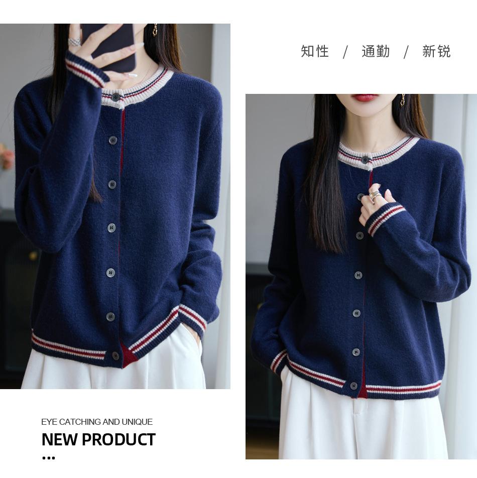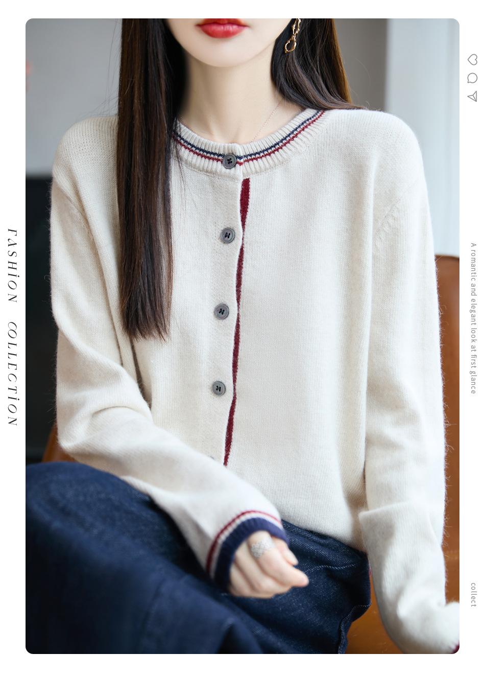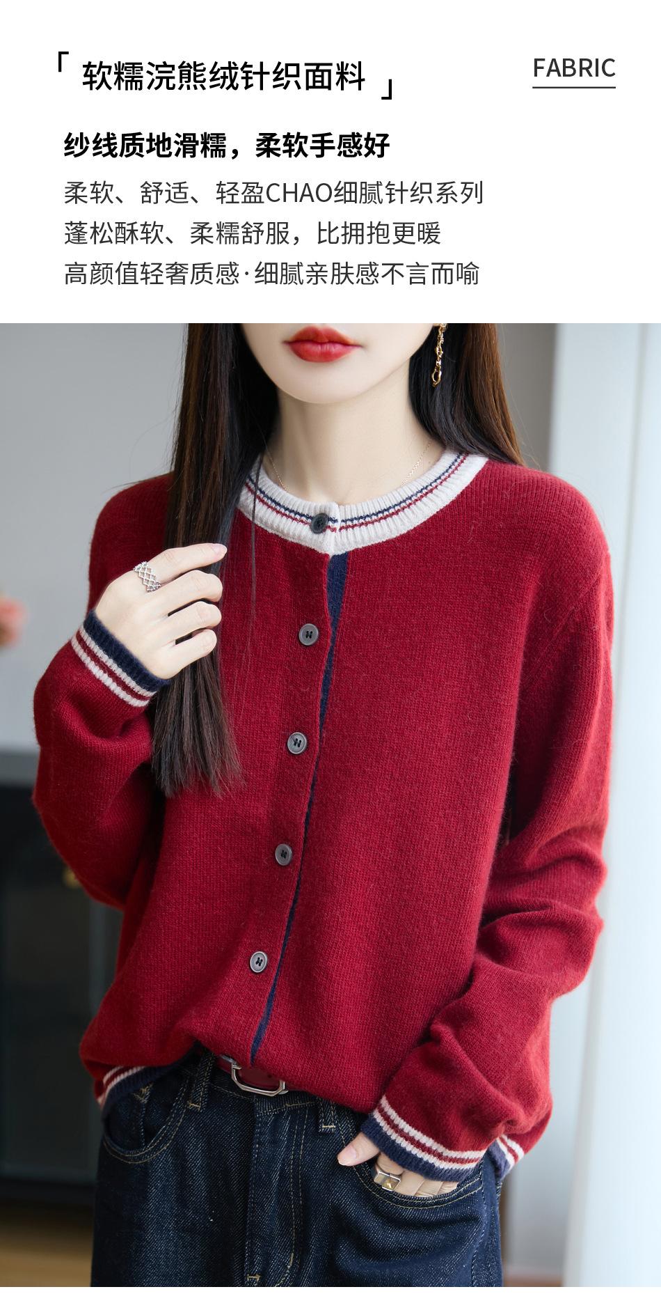 Cárdigan de Punto de Lana de Mapache Nueva Colección Otoño/Invierno Cuello Redondo Manga Larga para Mujer Bloque de Color Holgado Versátil Temperamento Top Ropa Exterior
