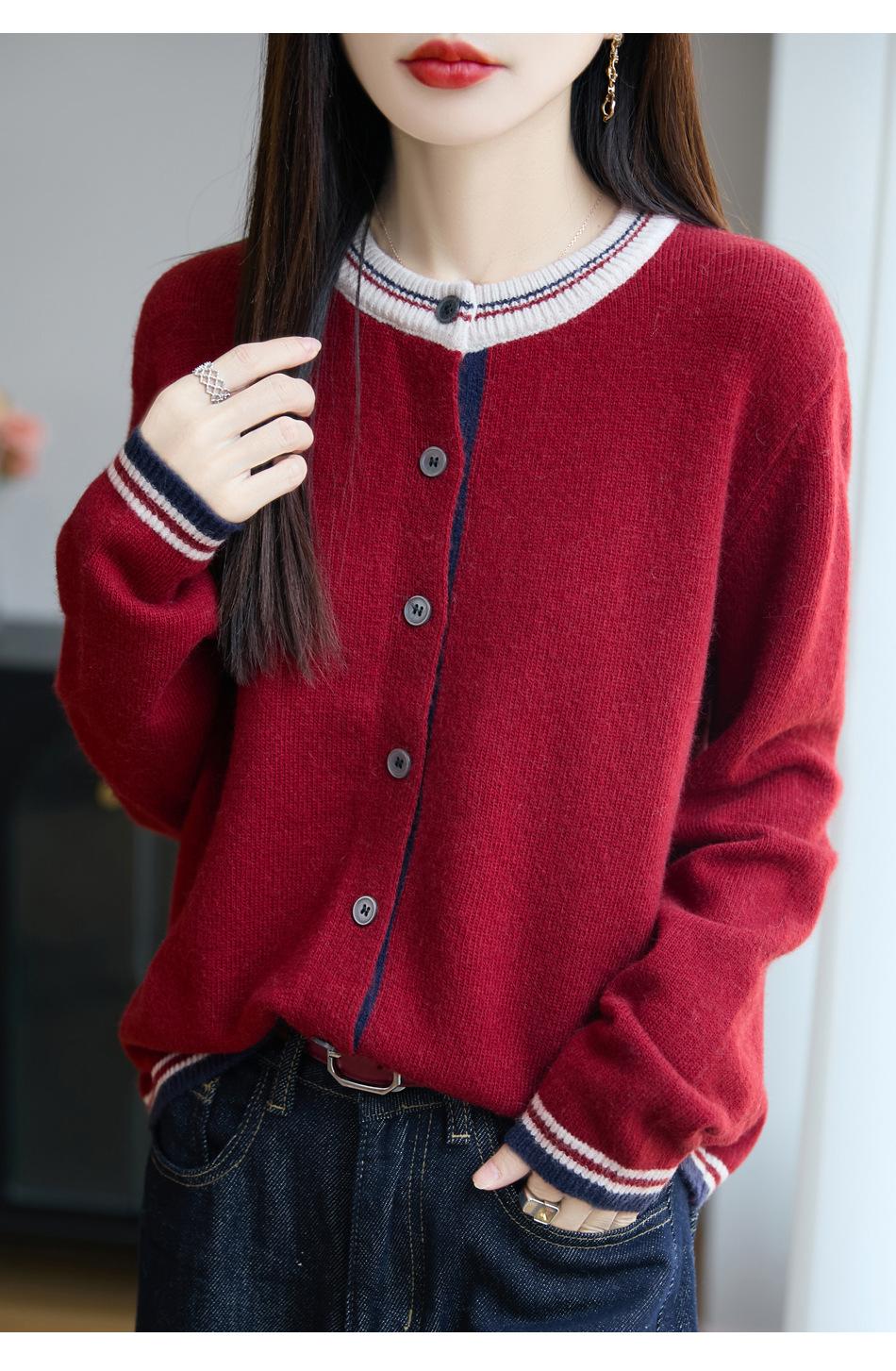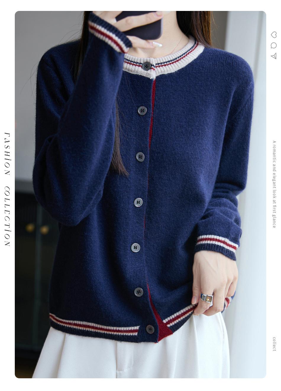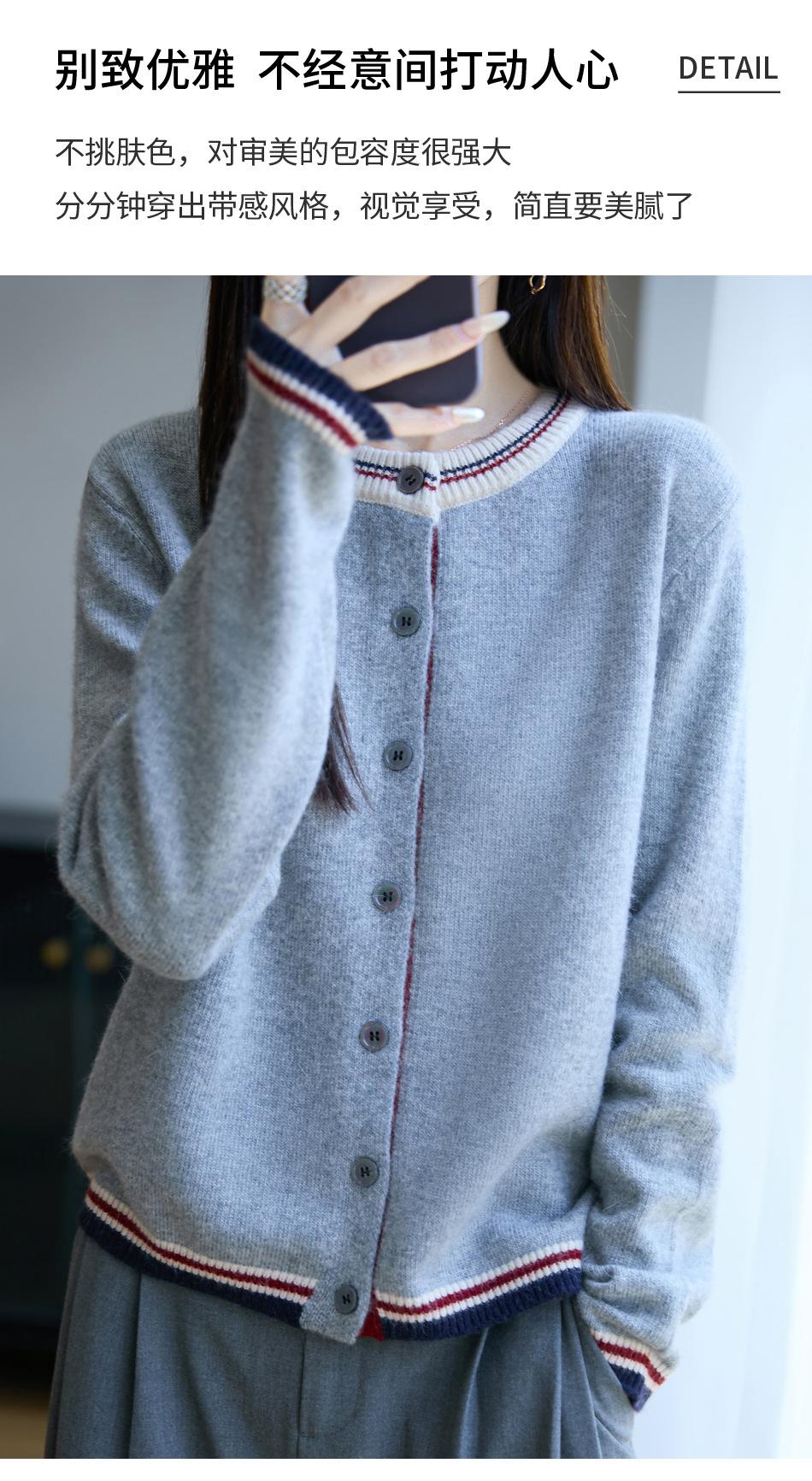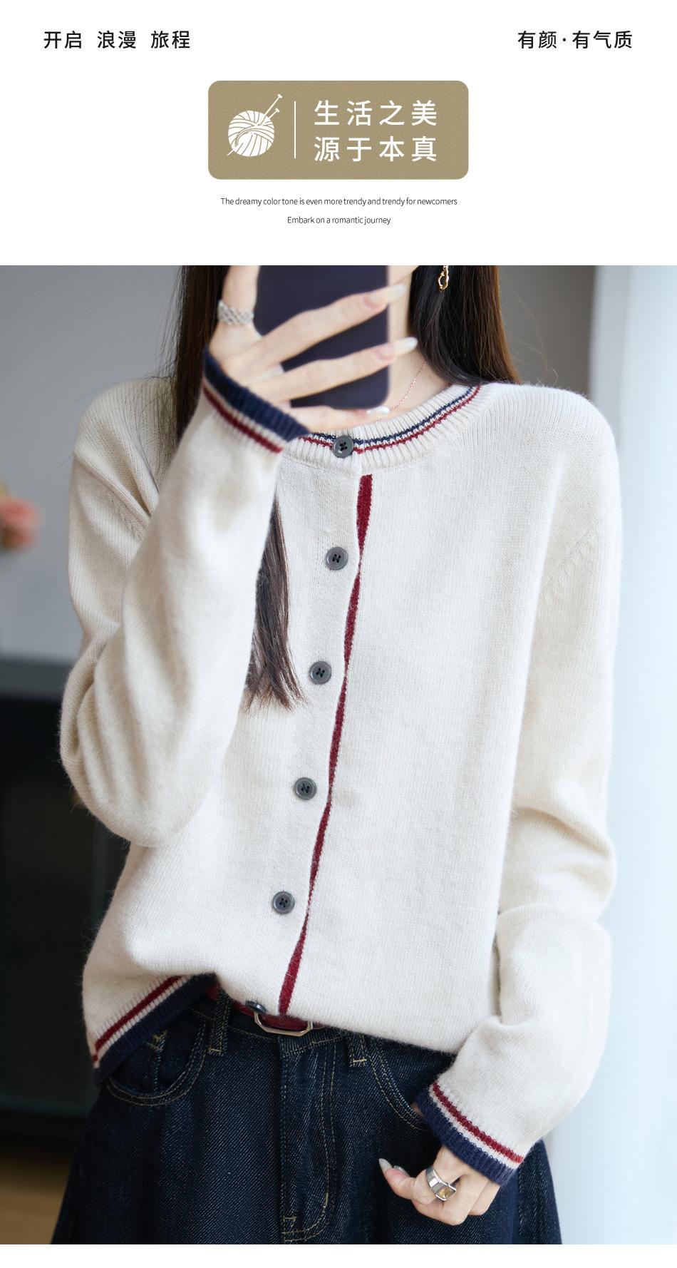 Cárdigan de Punto de Lana de Mapache Nueva Colección Otoño/Invierno Cuello Redondo Manga Larga para Mujer Bloque de Color Holgado Versátil Temperamento Top Ropa Exterior