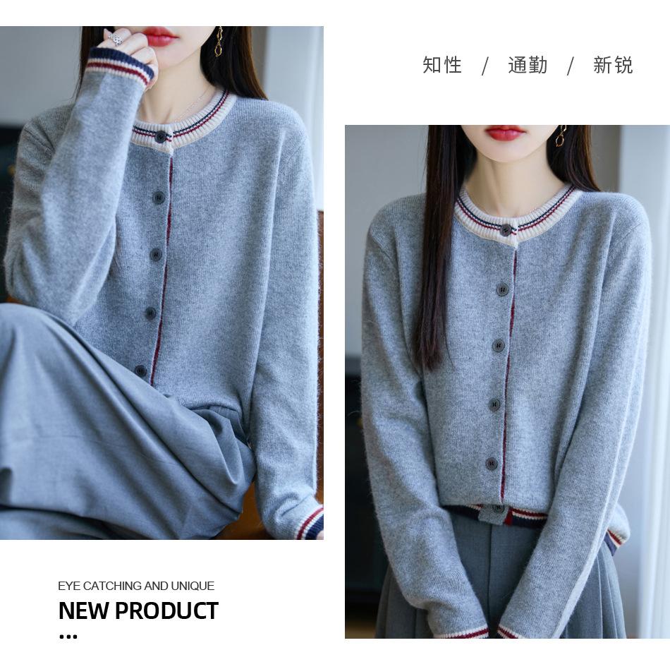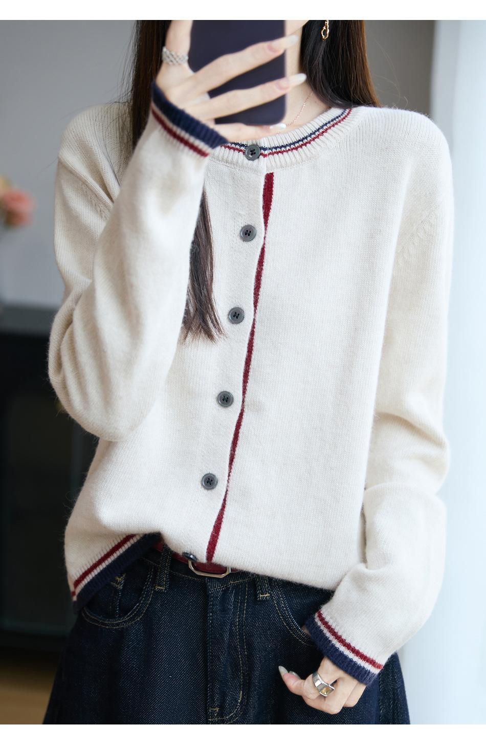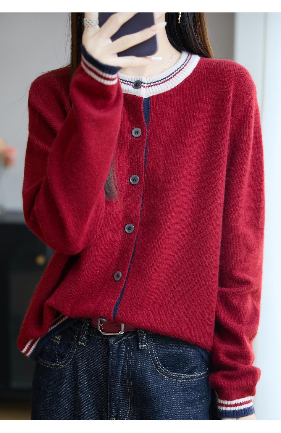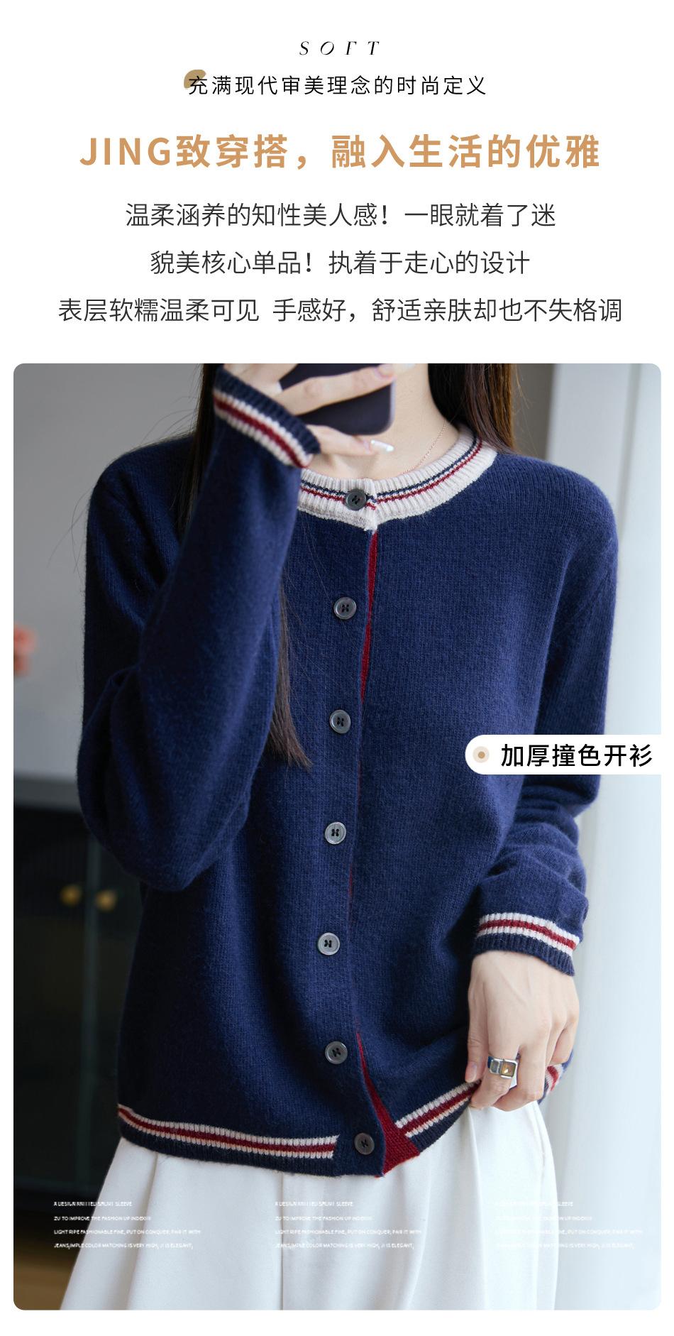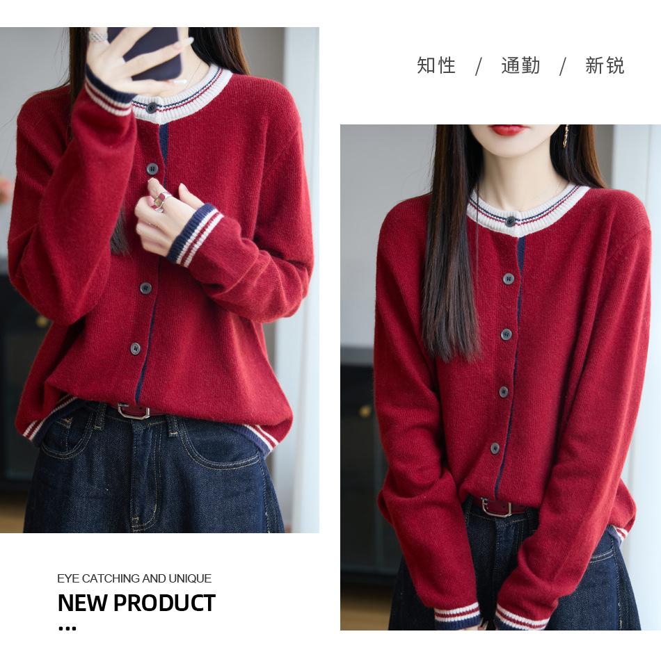 Cárdigan de Punto de Lana de Mapache Nueva Colección Otoño/Invierno Cuello Redondo Manga Larga para Mujer Bloque de Color Holgado Versátil Temperamento Top Ropa Exterior