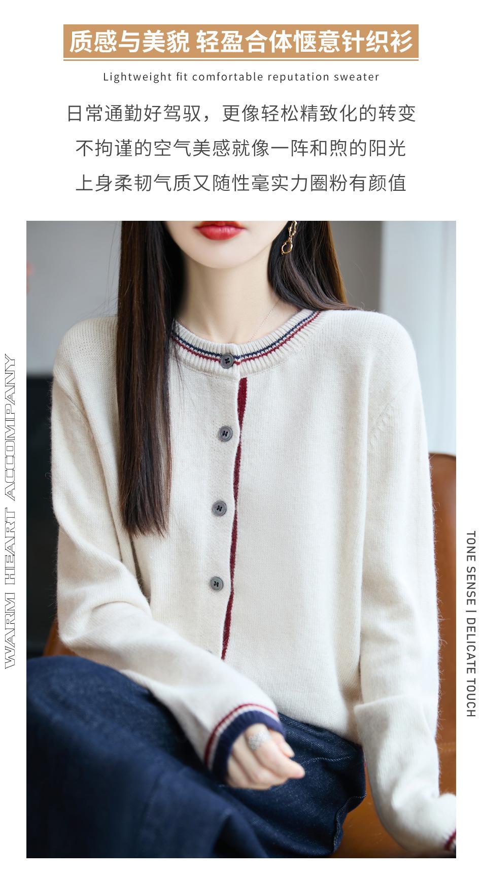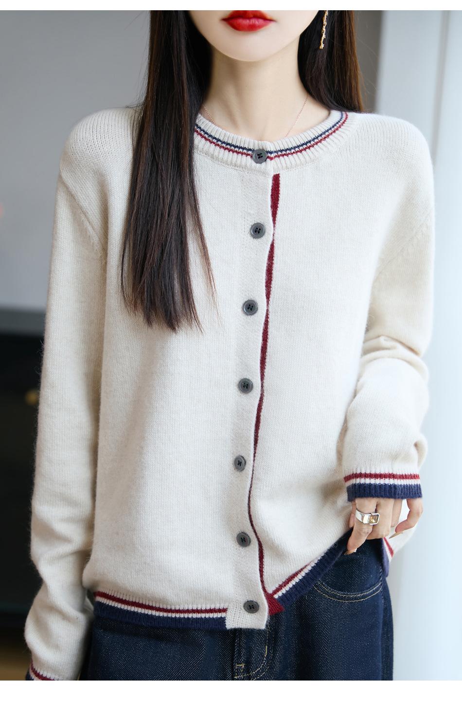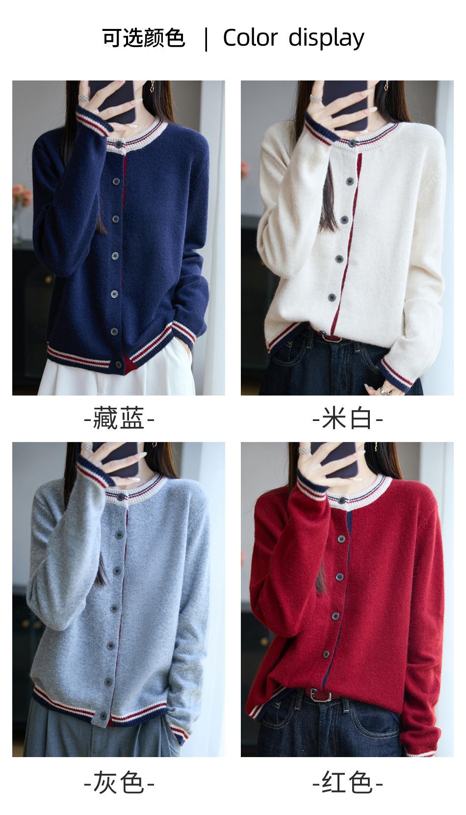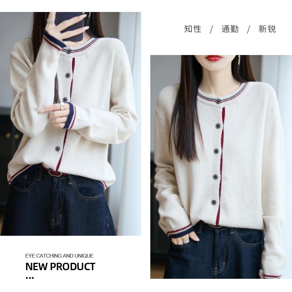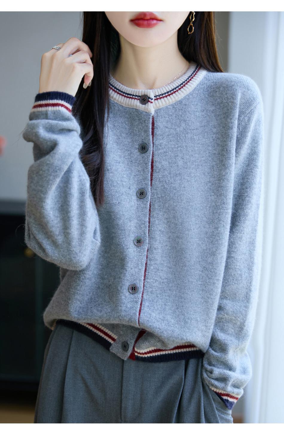 Cárdigan de Punto de Lana de Mapache Nueva Colección Otoño/Invierno Cuello Redondo Manga Larga para Mujer Bloque de Color Holgado Versátil Temperamento Top Ropa Exterior