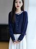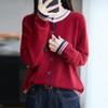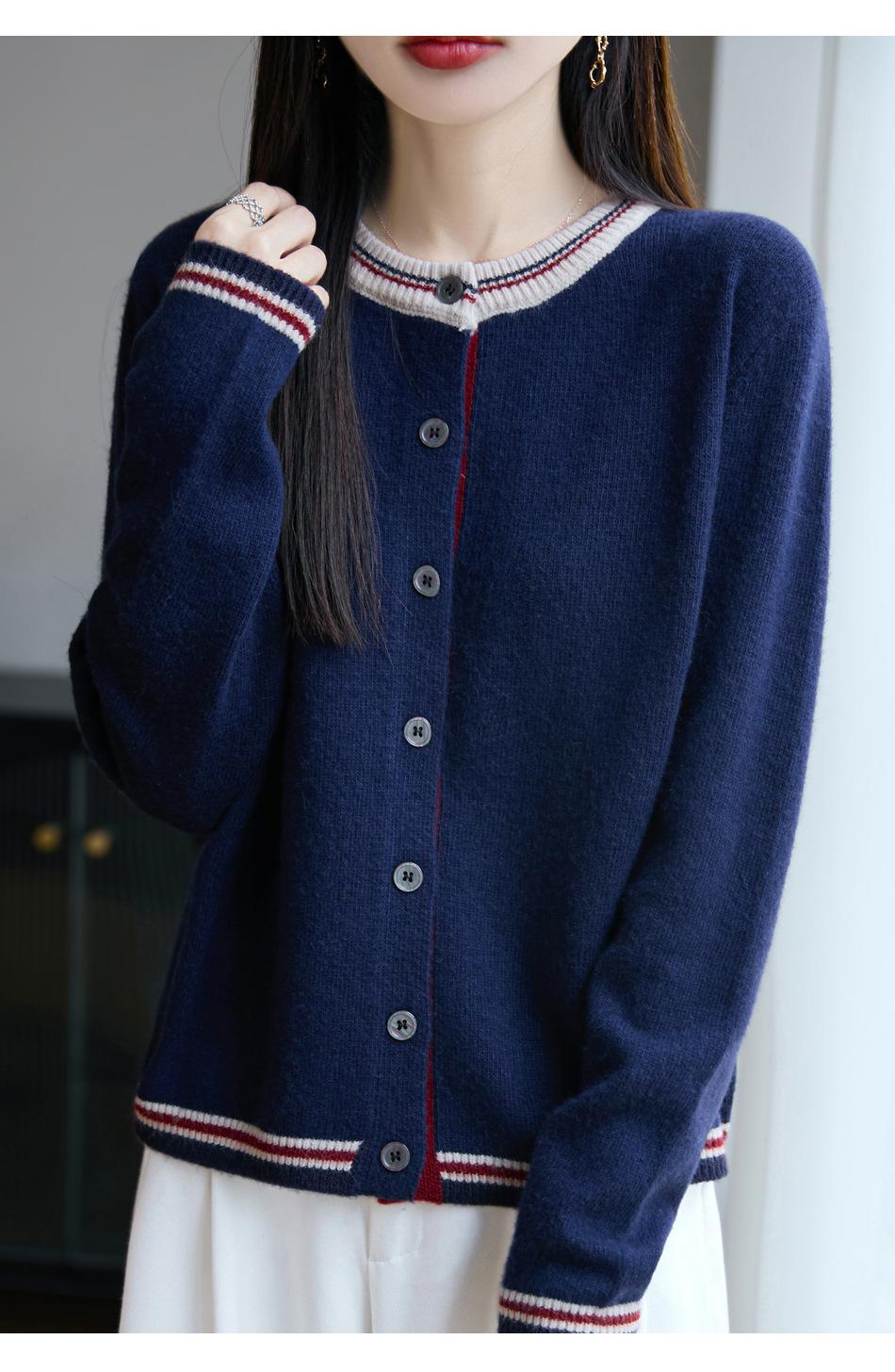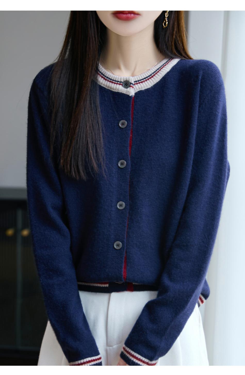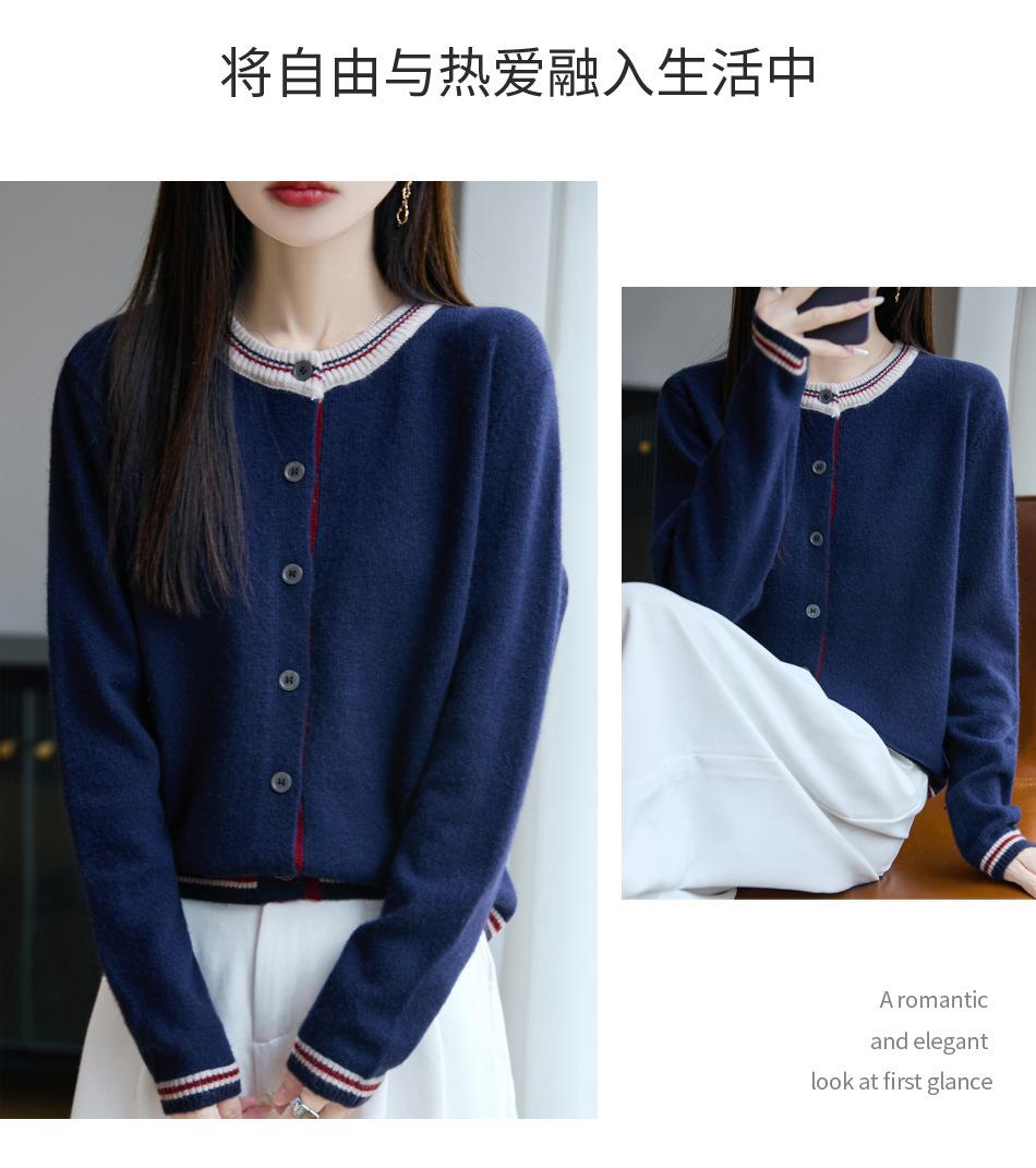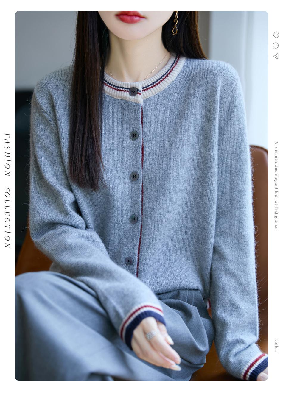 Cárdigan de Punto de Lana de Mapache Nueva Colección Otoño/Invierno Cuello Redondo Manga Larga para Mujer Bloque de Color Holgado Versátil Temperamento Top Ropa Exterior