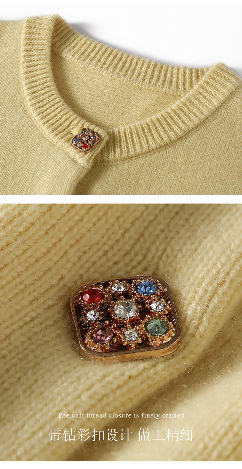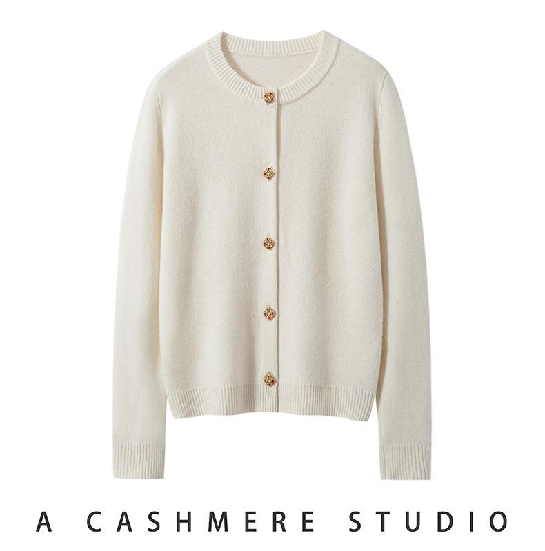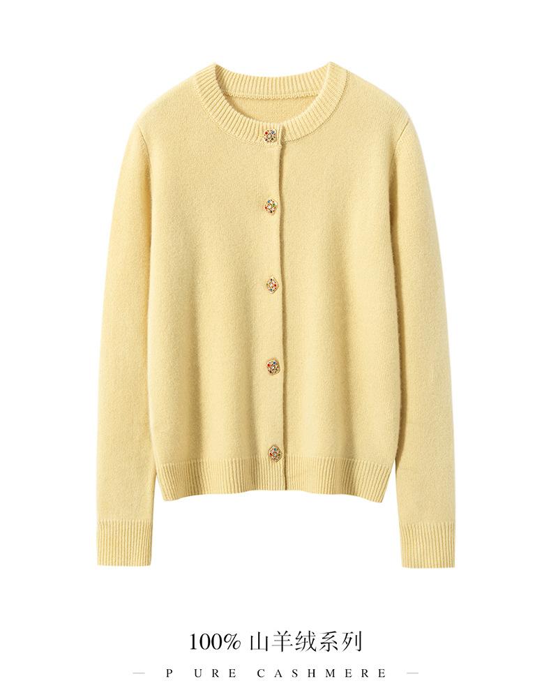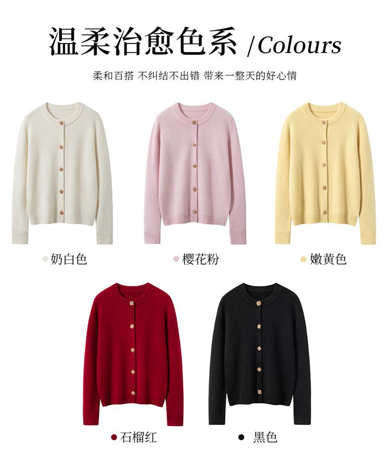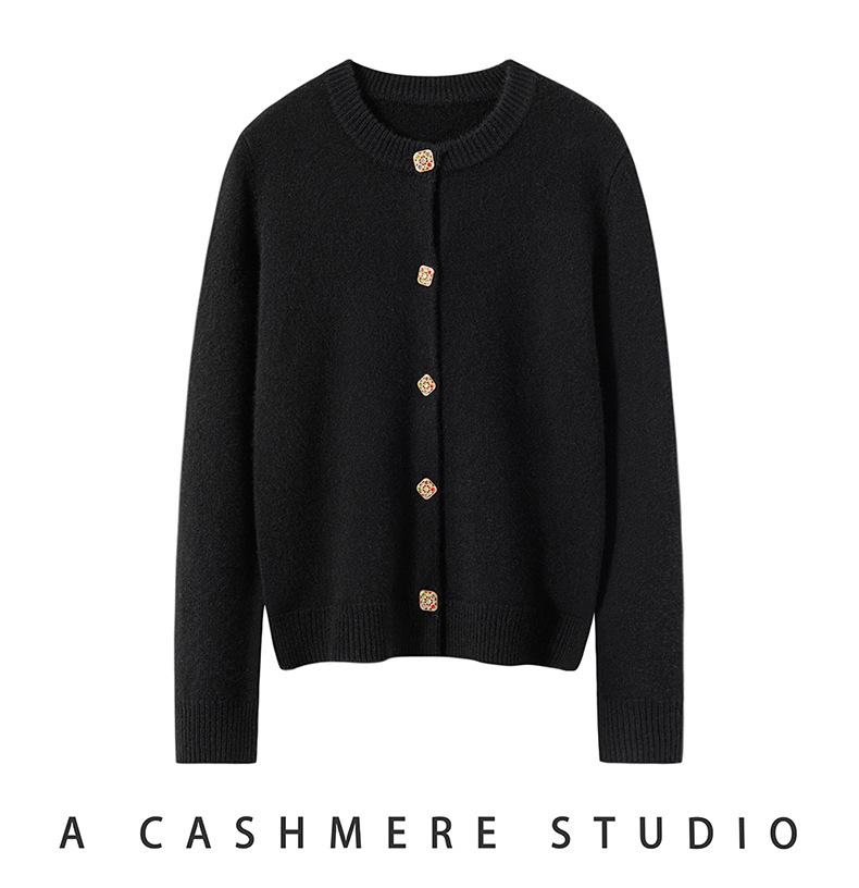 Nuevo Otoño/Invierno 100% Lana Pura para Mujer Cárdigan Suéter Casual Versátil Holgado Color Sólido Cuello Redondo Tejido