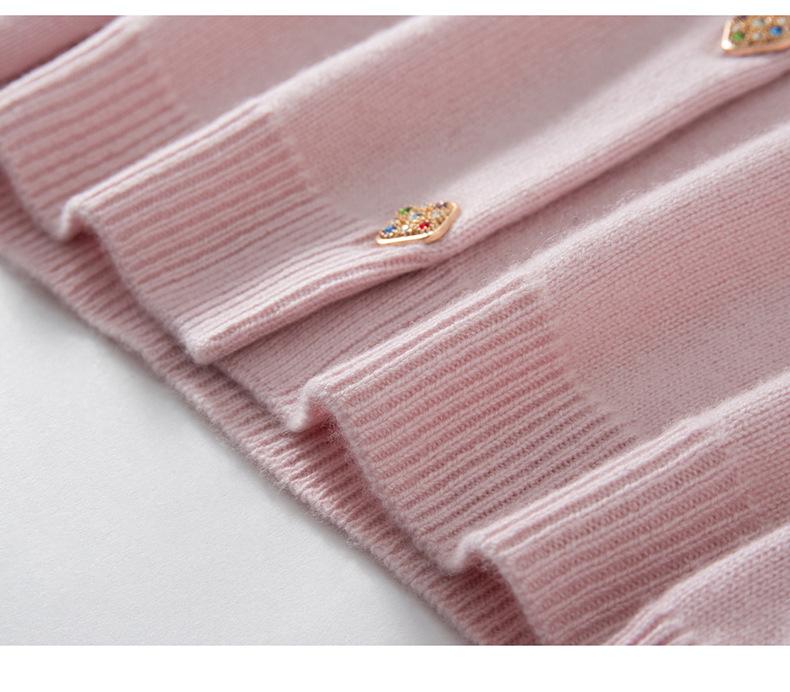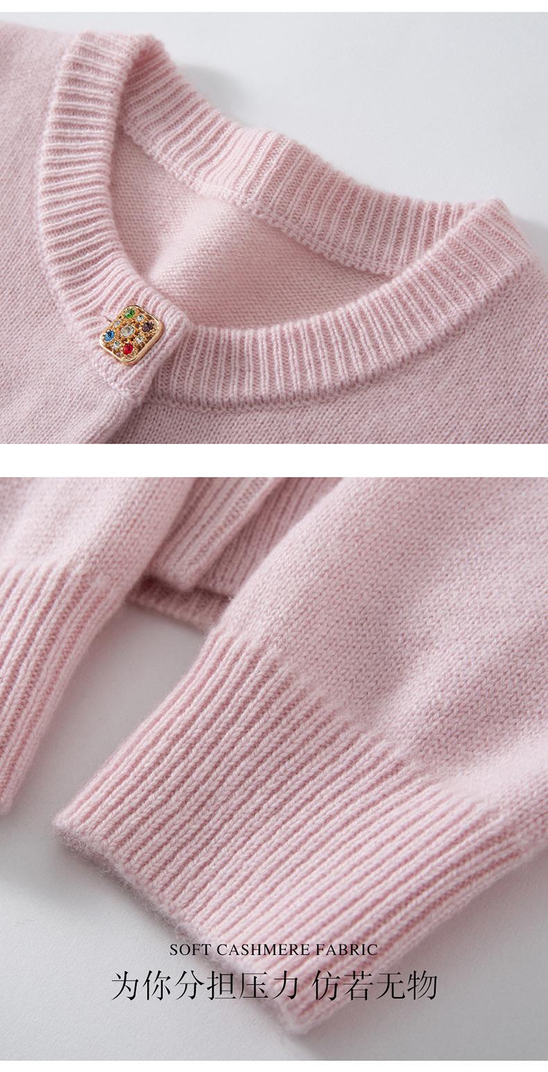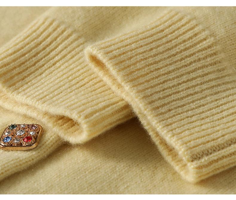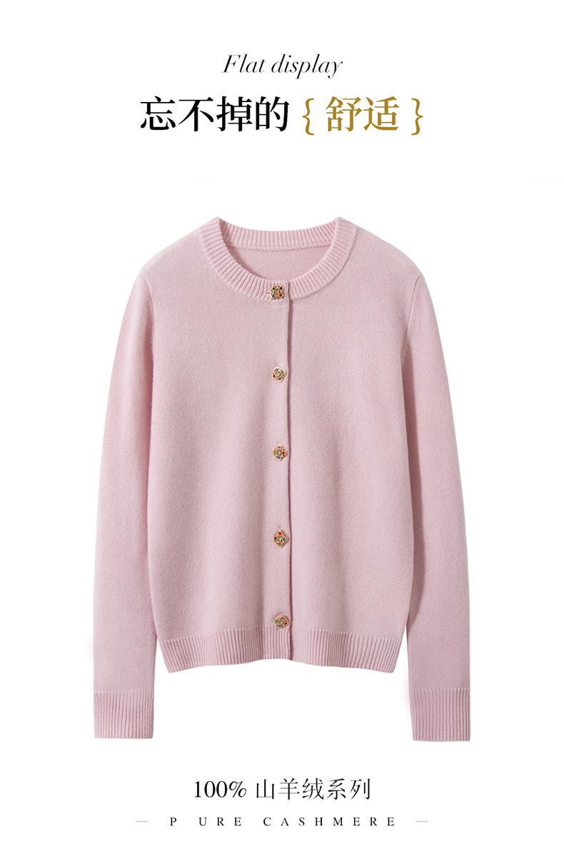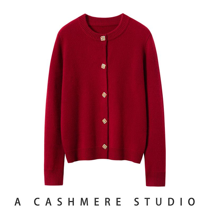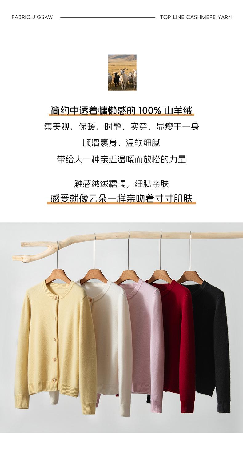 Nuevo Otoño/Invierno 100% Lana Pura para Mujer Cárdigan Suéter Casual Versátil Holgado Color Sólido Cuello Redondo Tejido