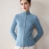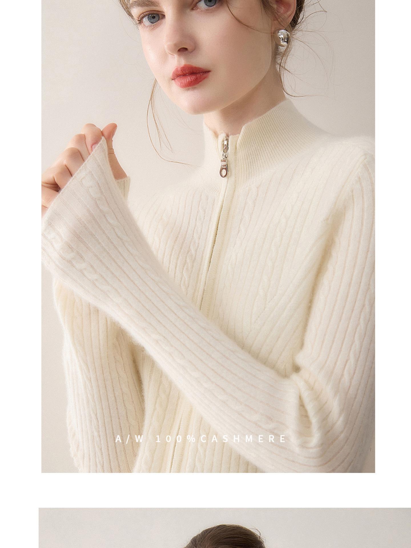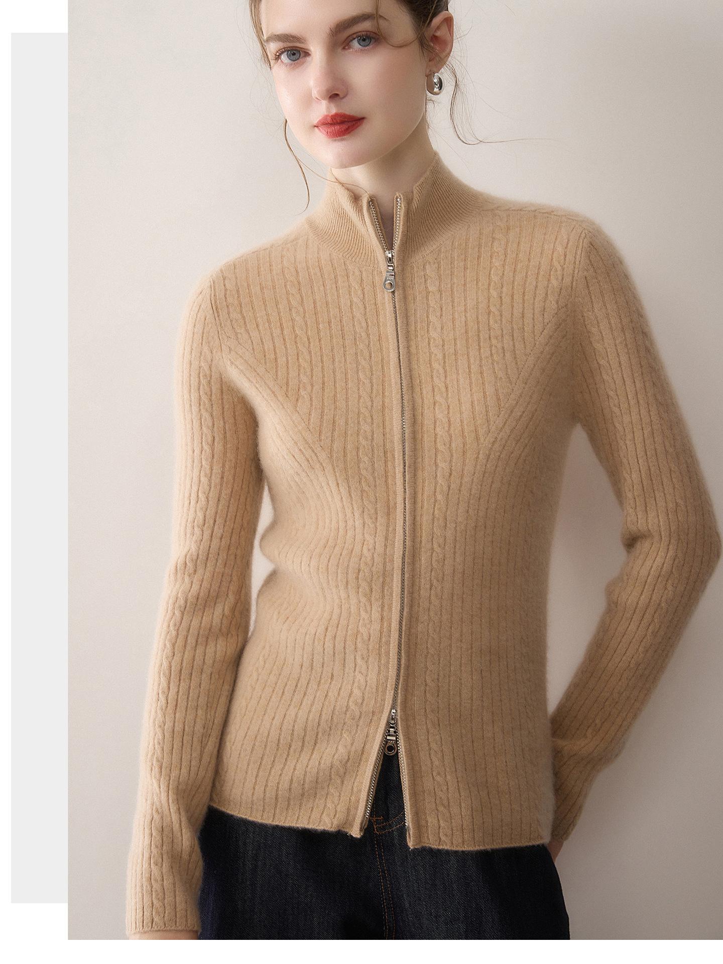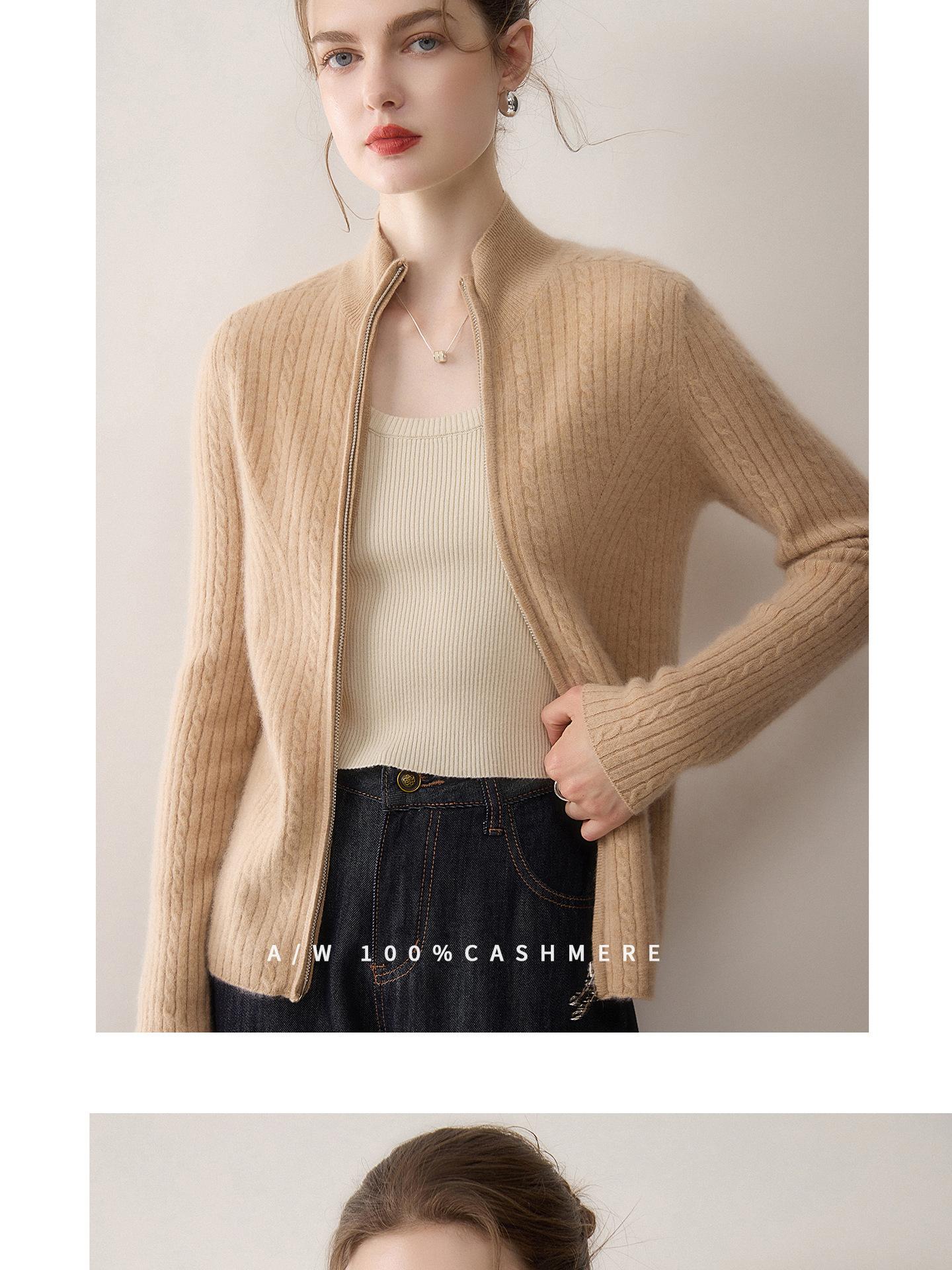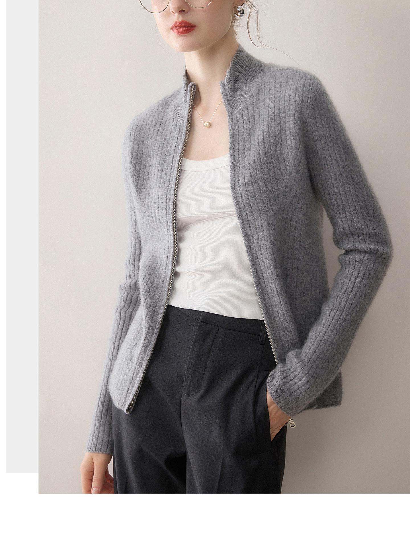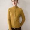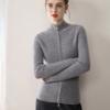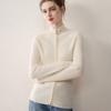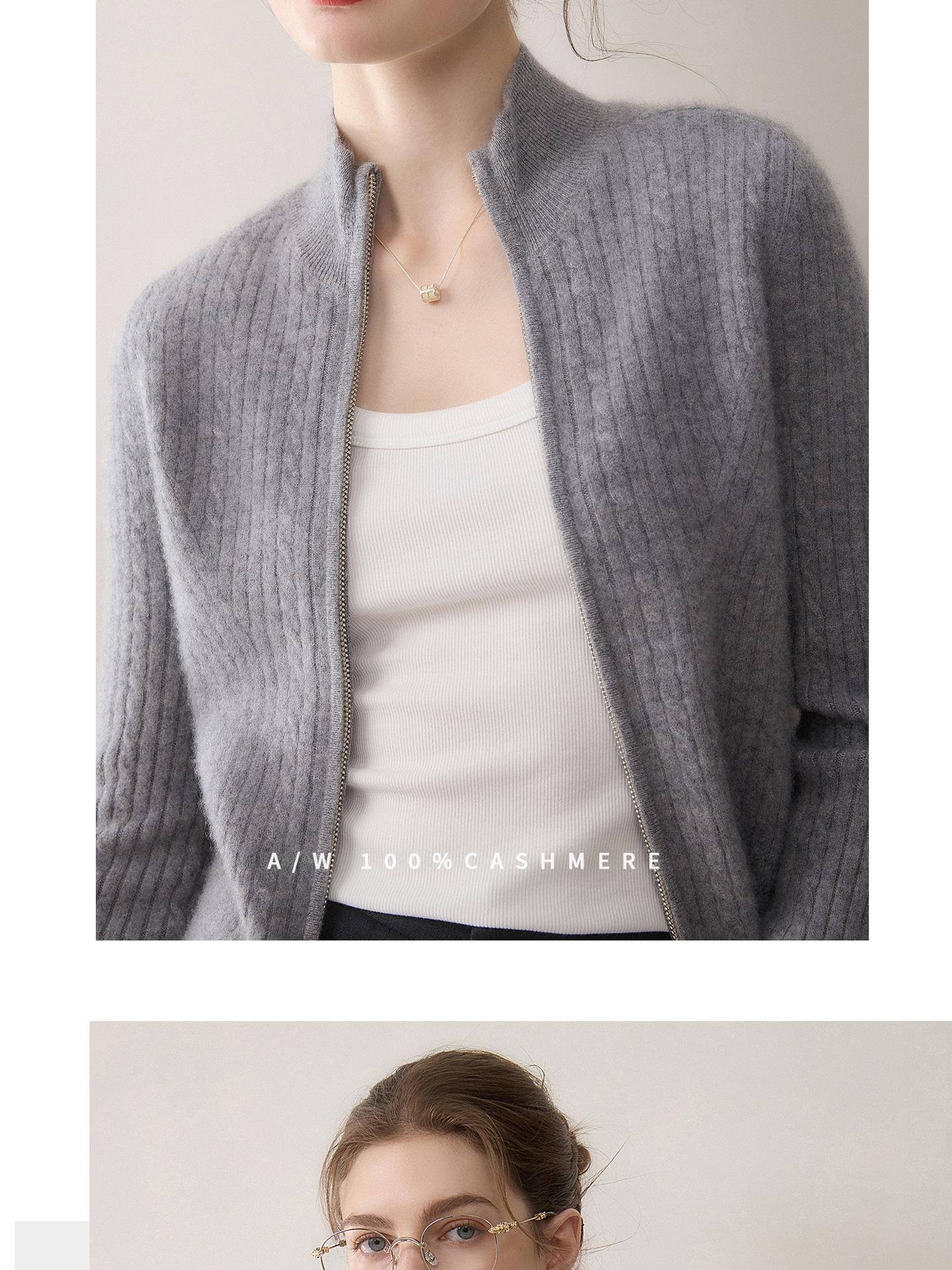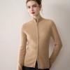 Estilo otoño e invierno 100% cachemira para mujer cárdigan de punto de corte ajustado versátil suave respetuoso con la piel cremallera cuello medio alto abrigo