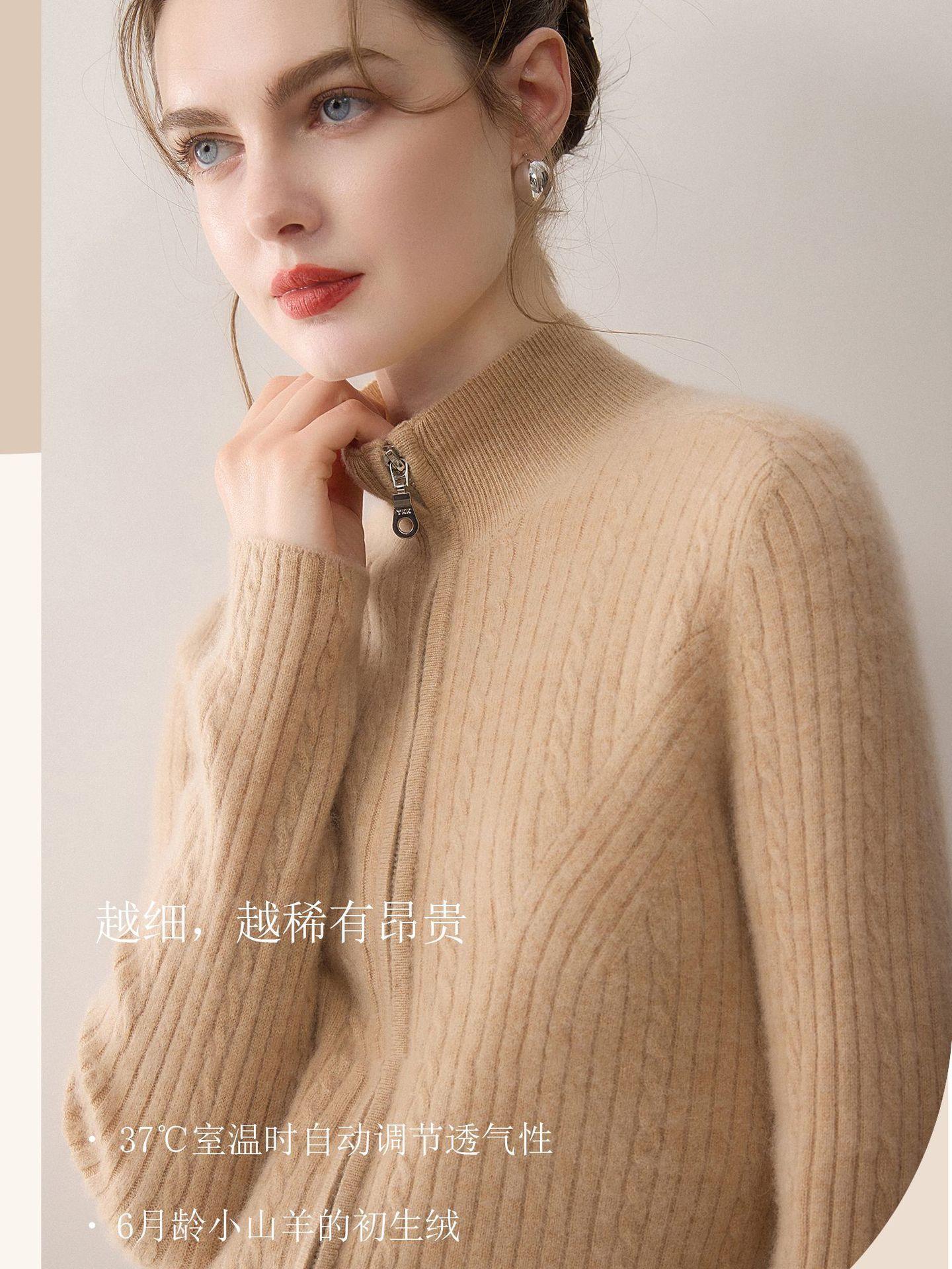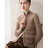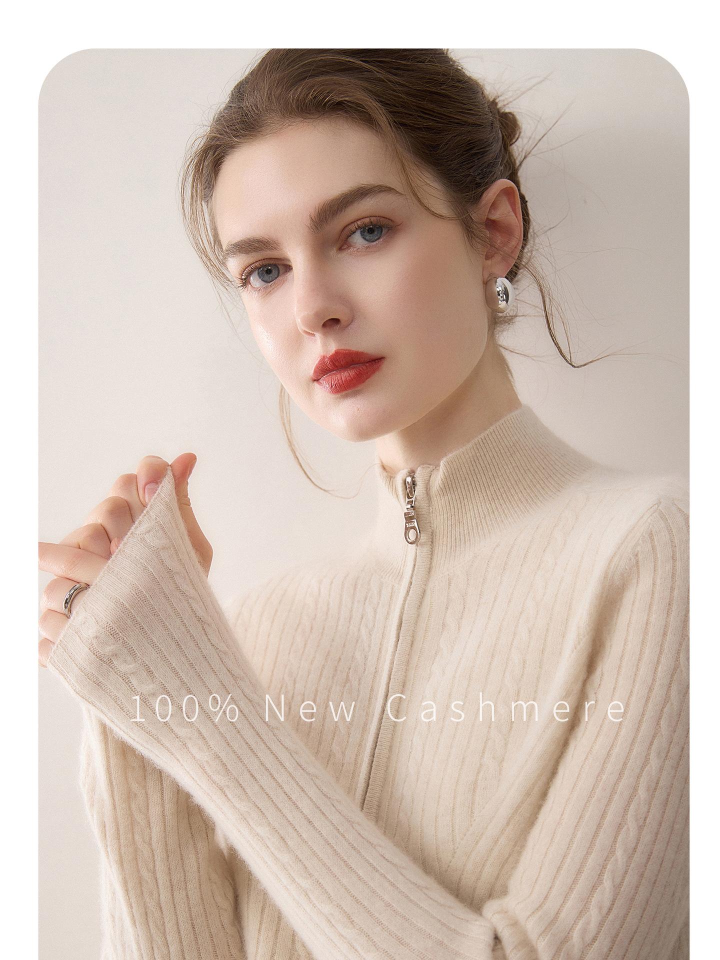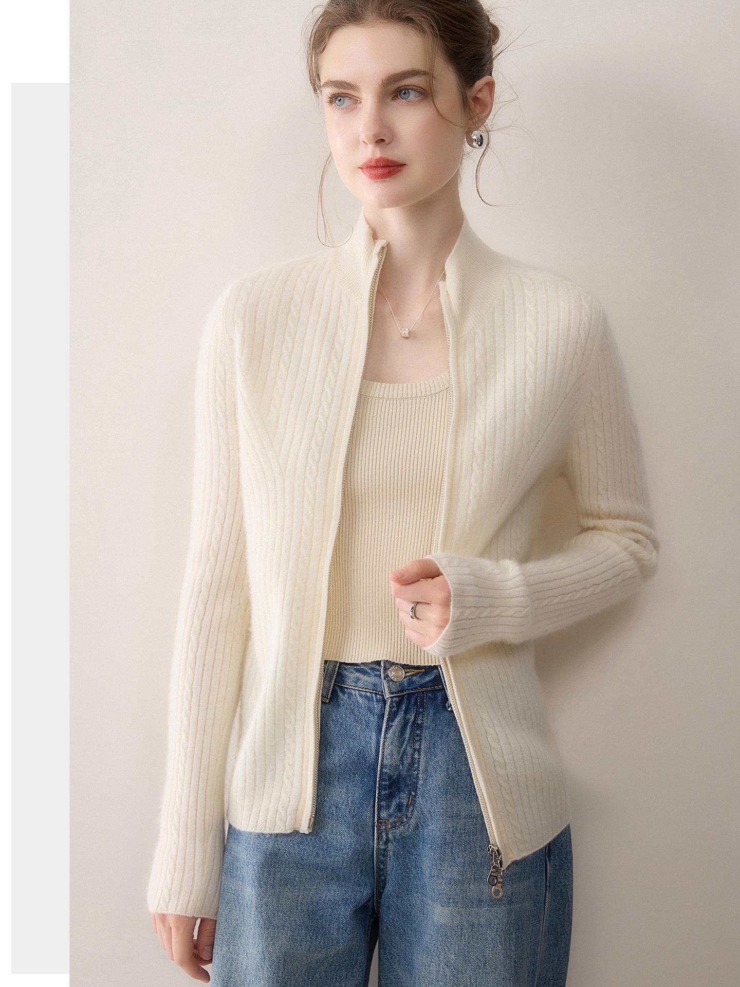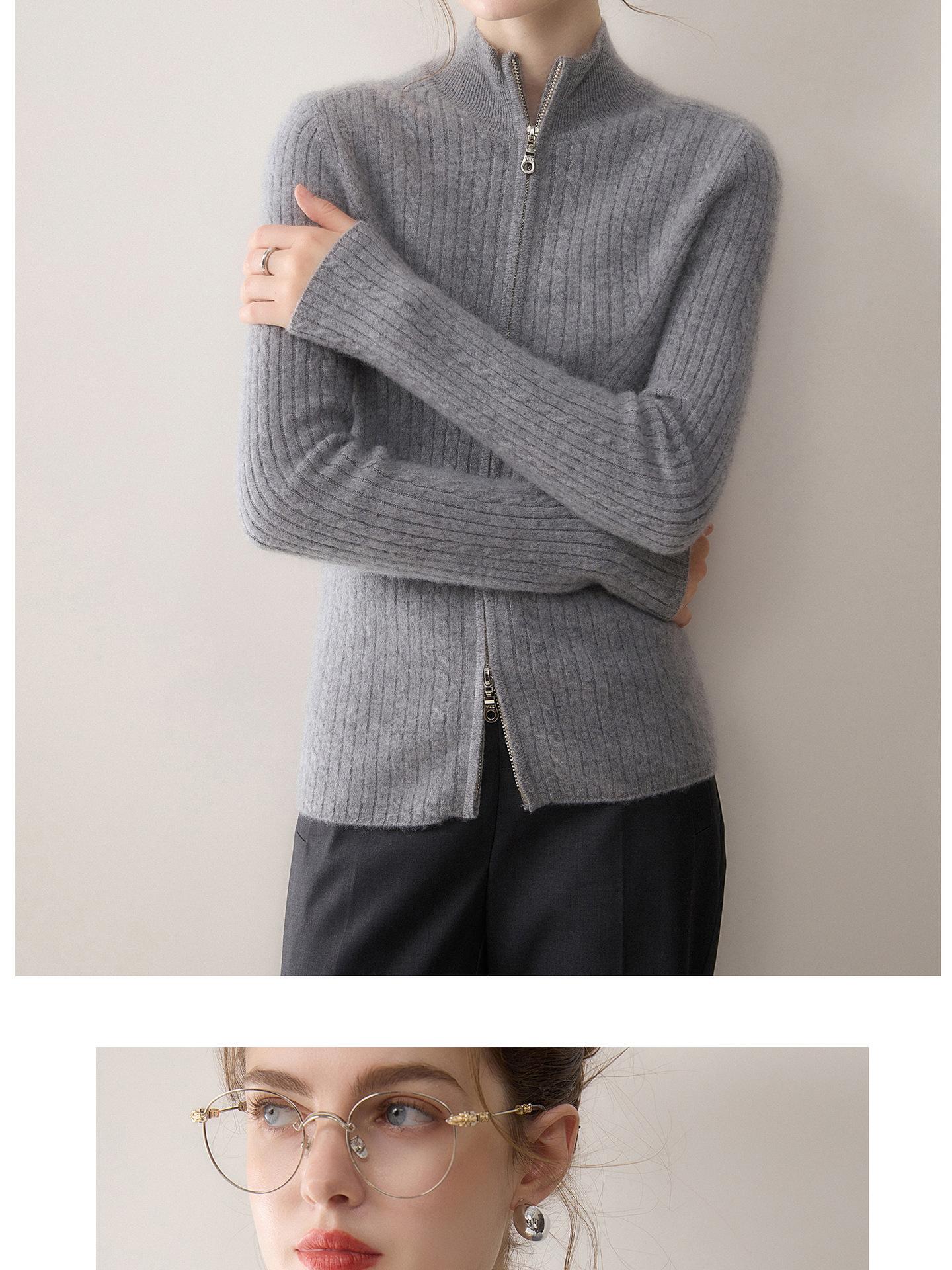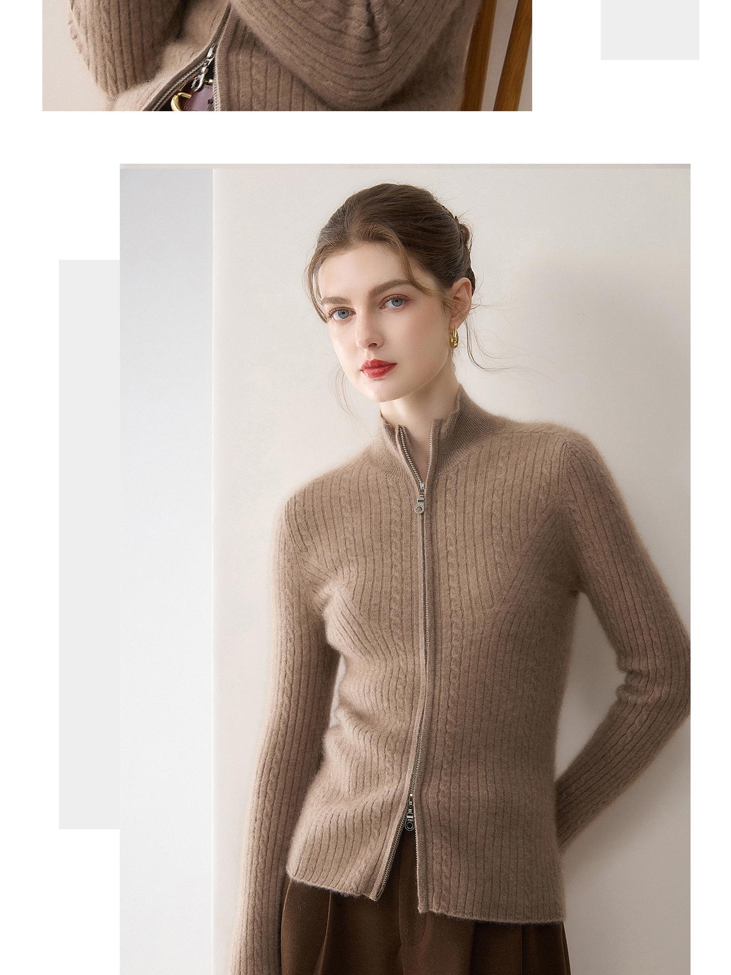 Estilo otoño e invierno 100% cachemira para mujer cárdigan de punto de corte ajustado versátil suave respetuoso con la piel cremallera cuello medio alto abrigo