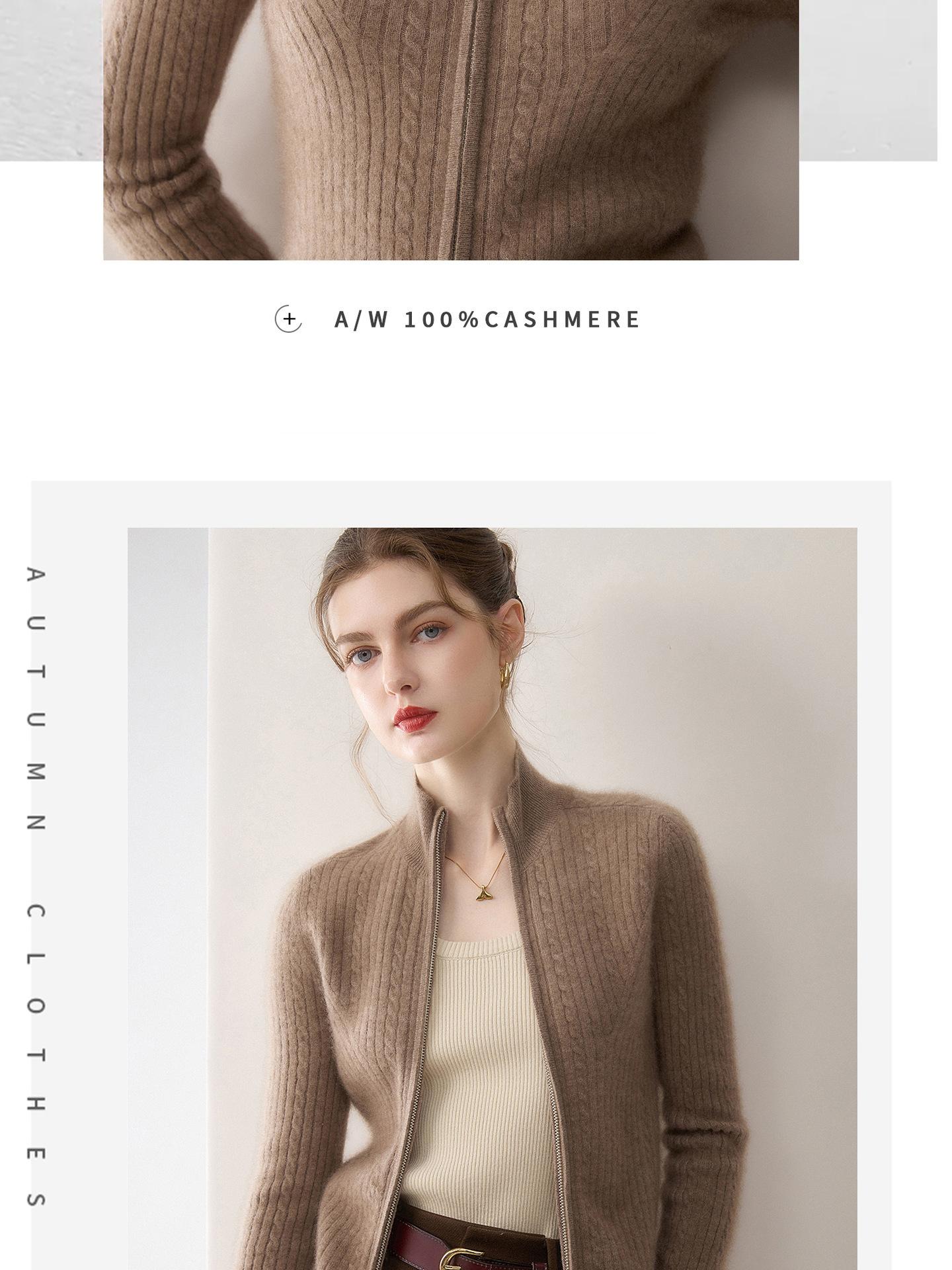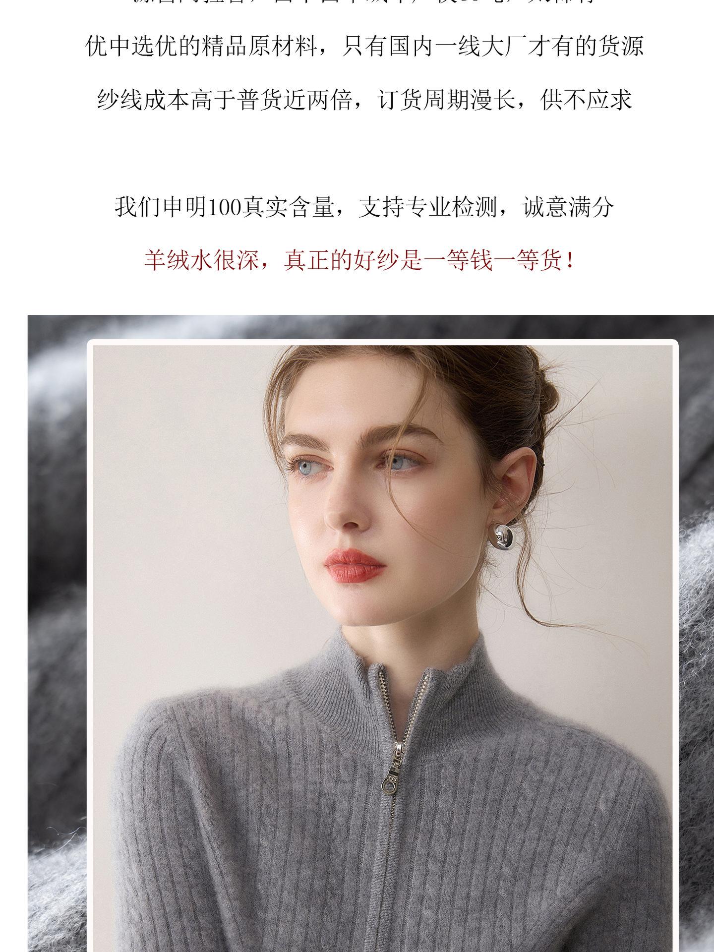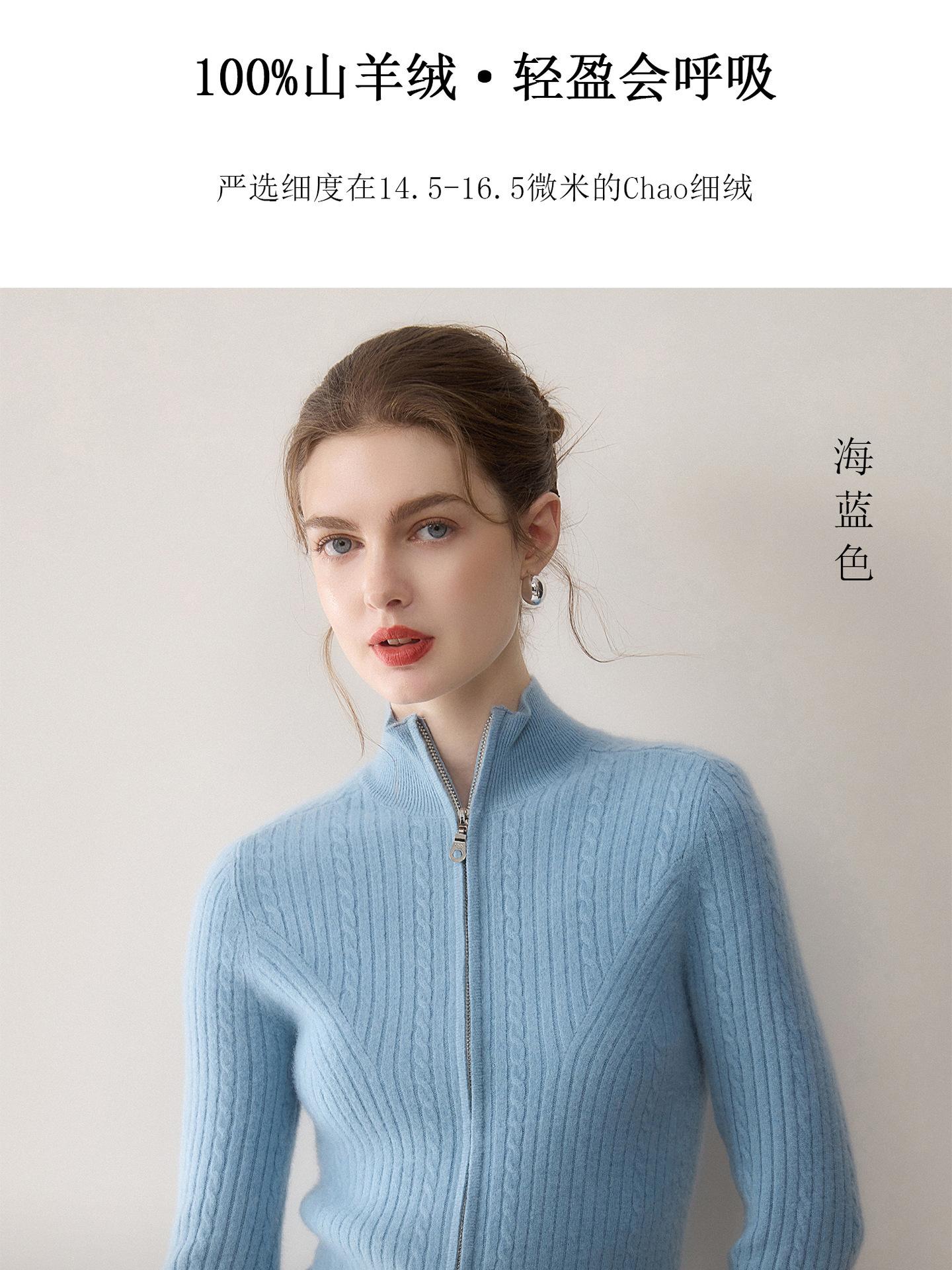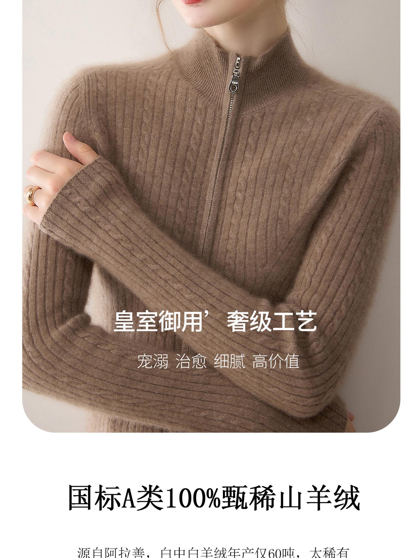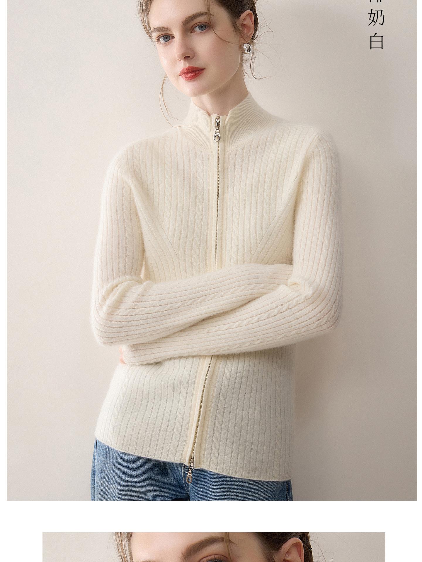 Estilo otoño e invierno 100% cachemira para mujer cárdigan de punto de corte ajustado versátil suave respetuoso con la piel cremallera cuello medio alto abrigo