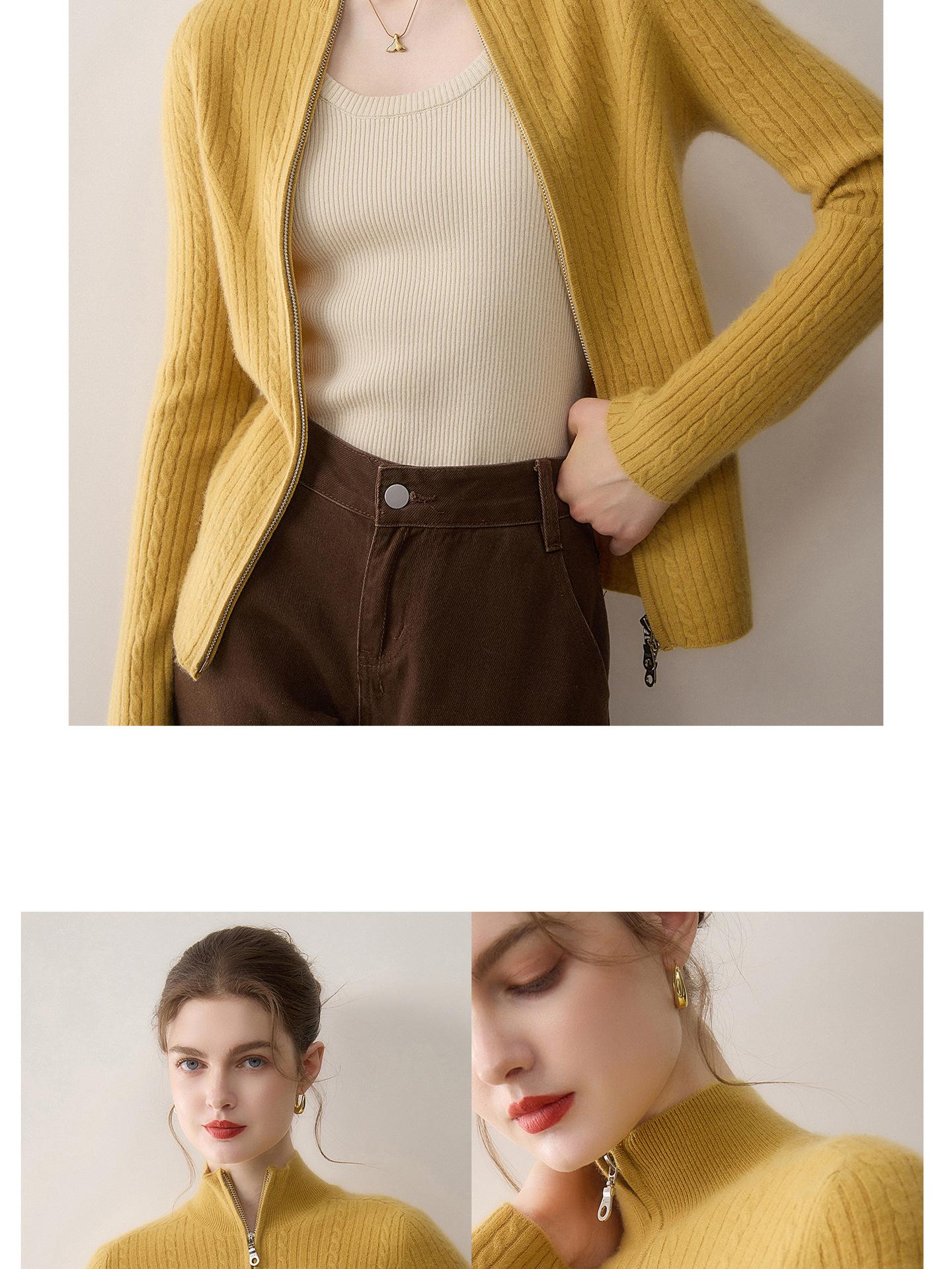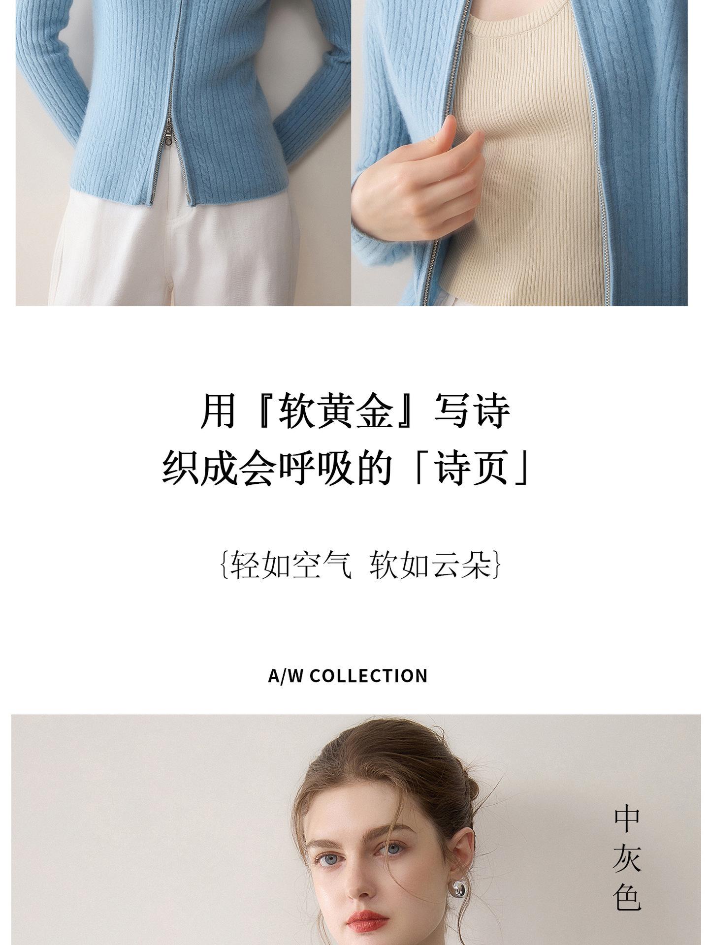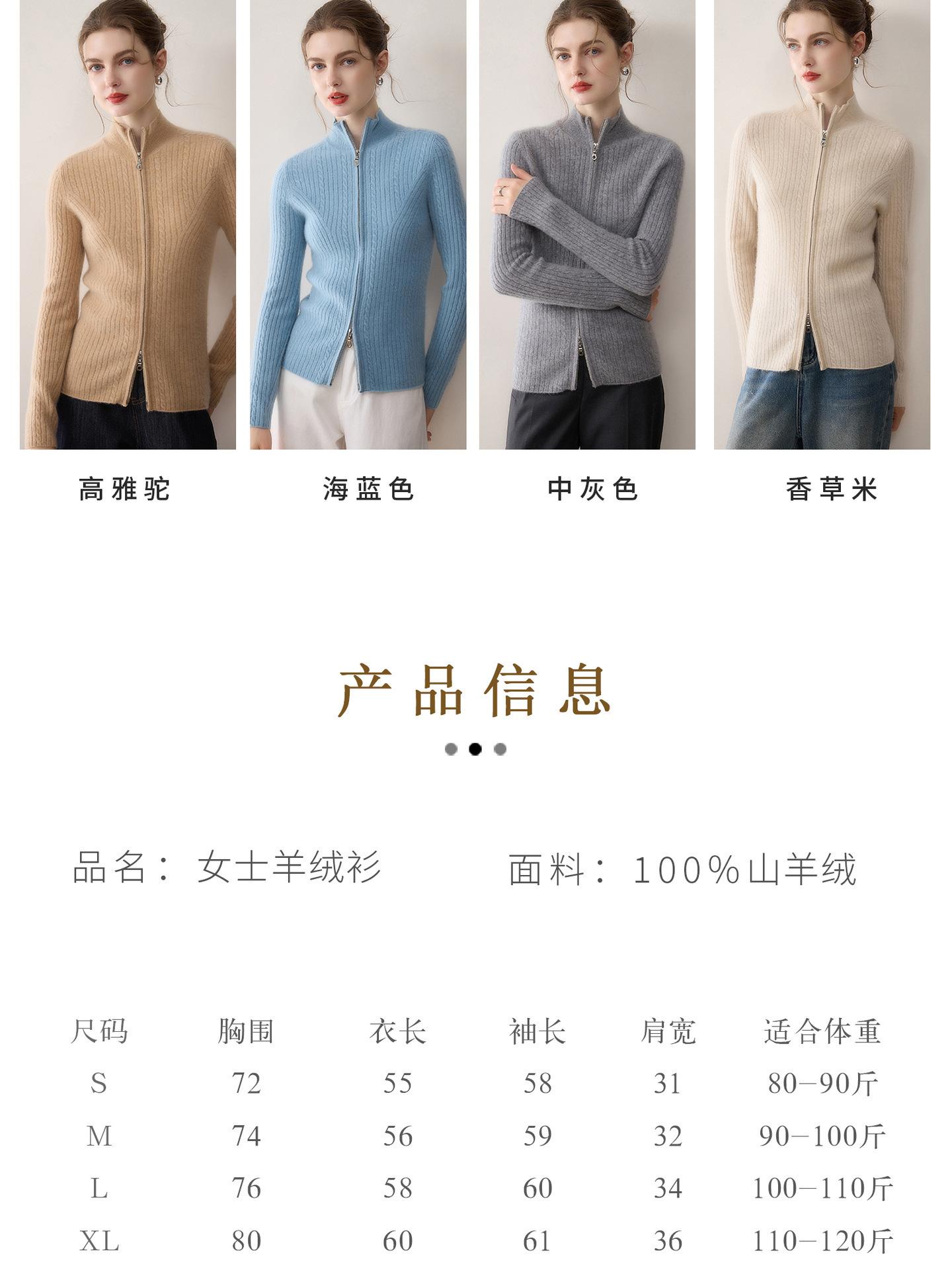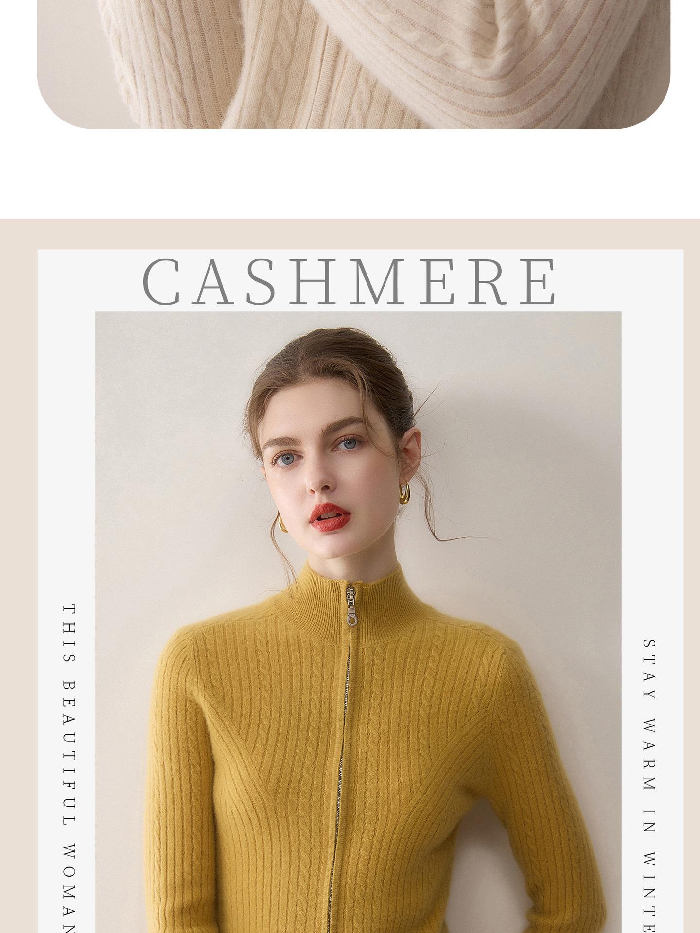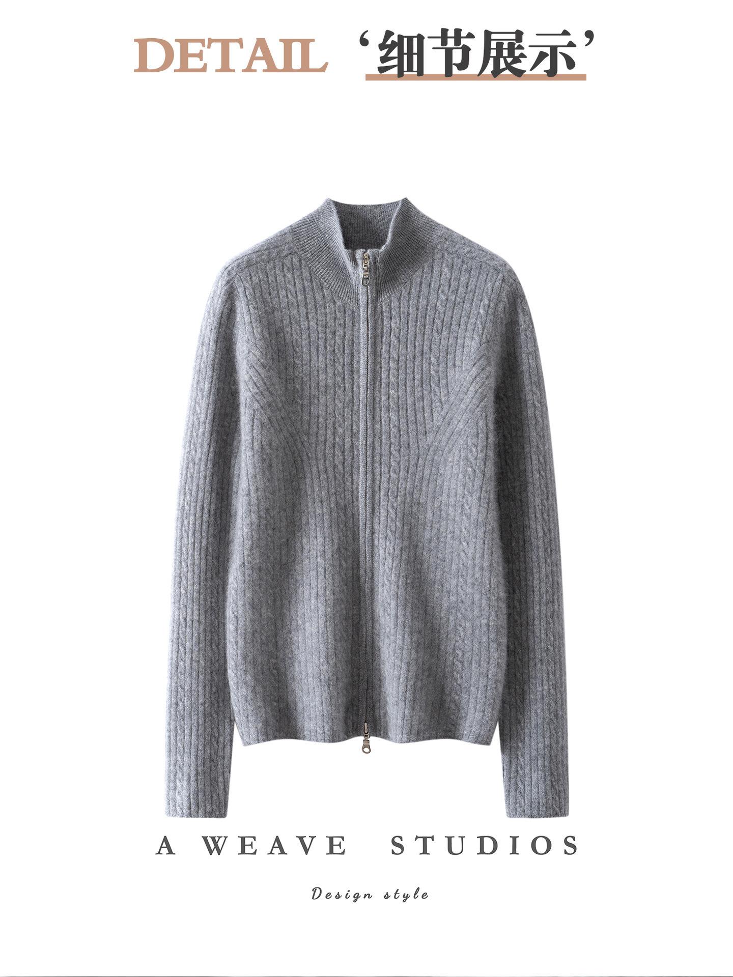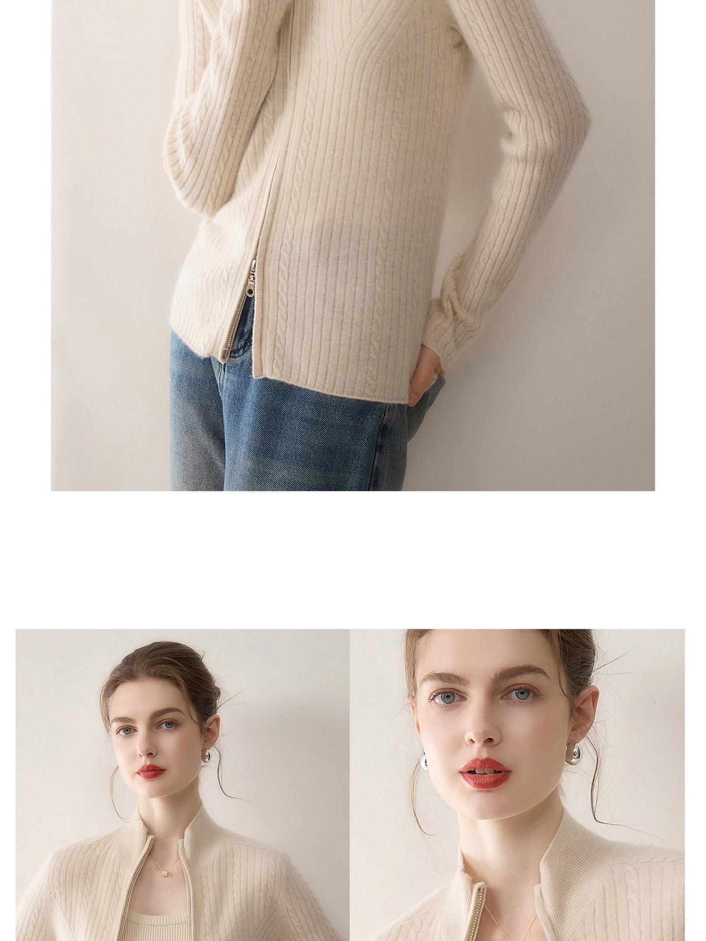 Estilo otoño e invierno 100% cachemira para mujer cárdigan de punto de corte ajustado versátil suave respetuoso con la piel cremallera cuello medio alto abrigo