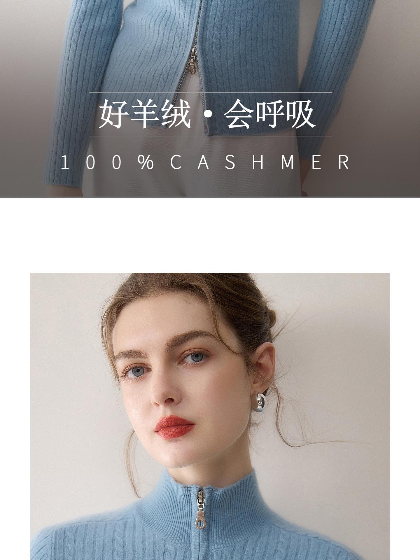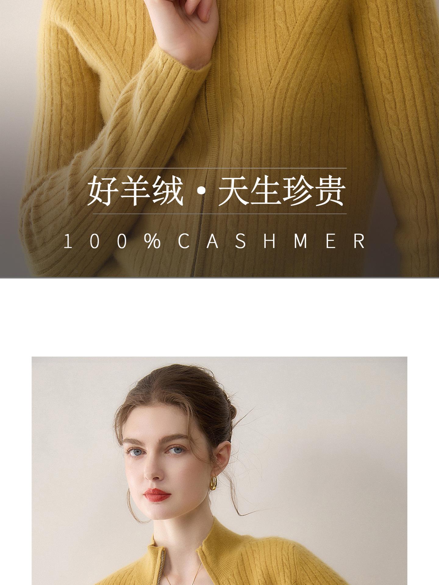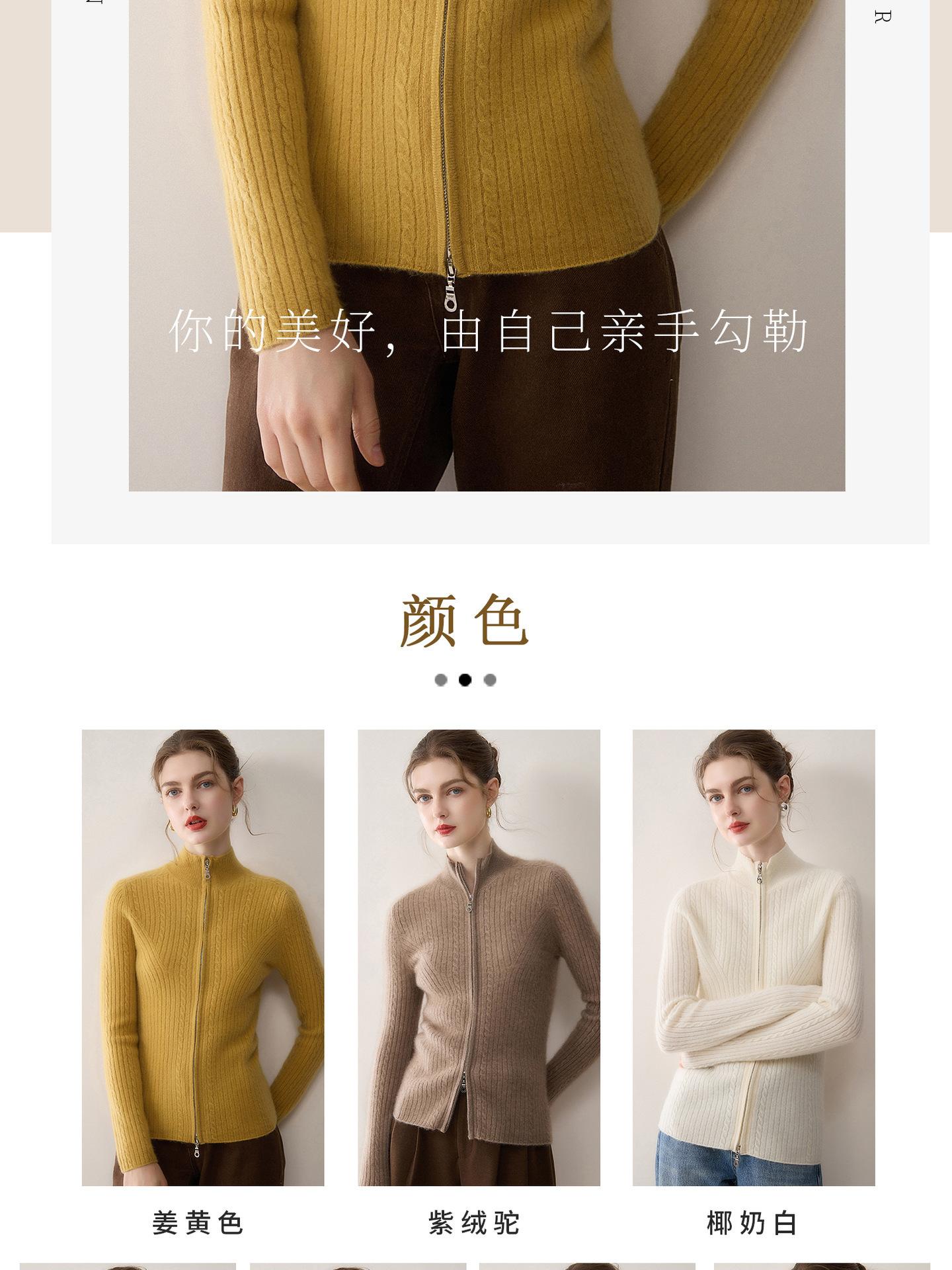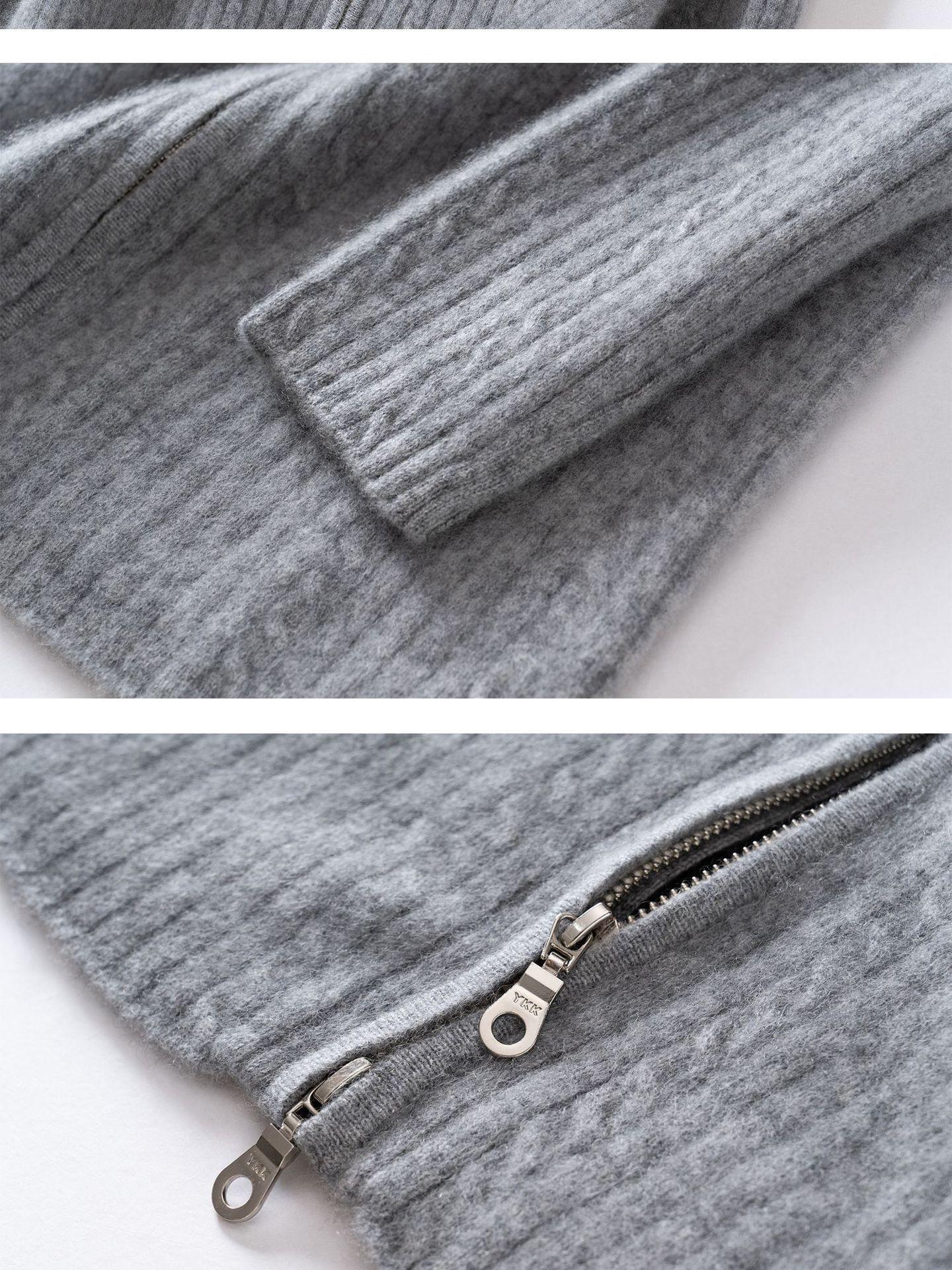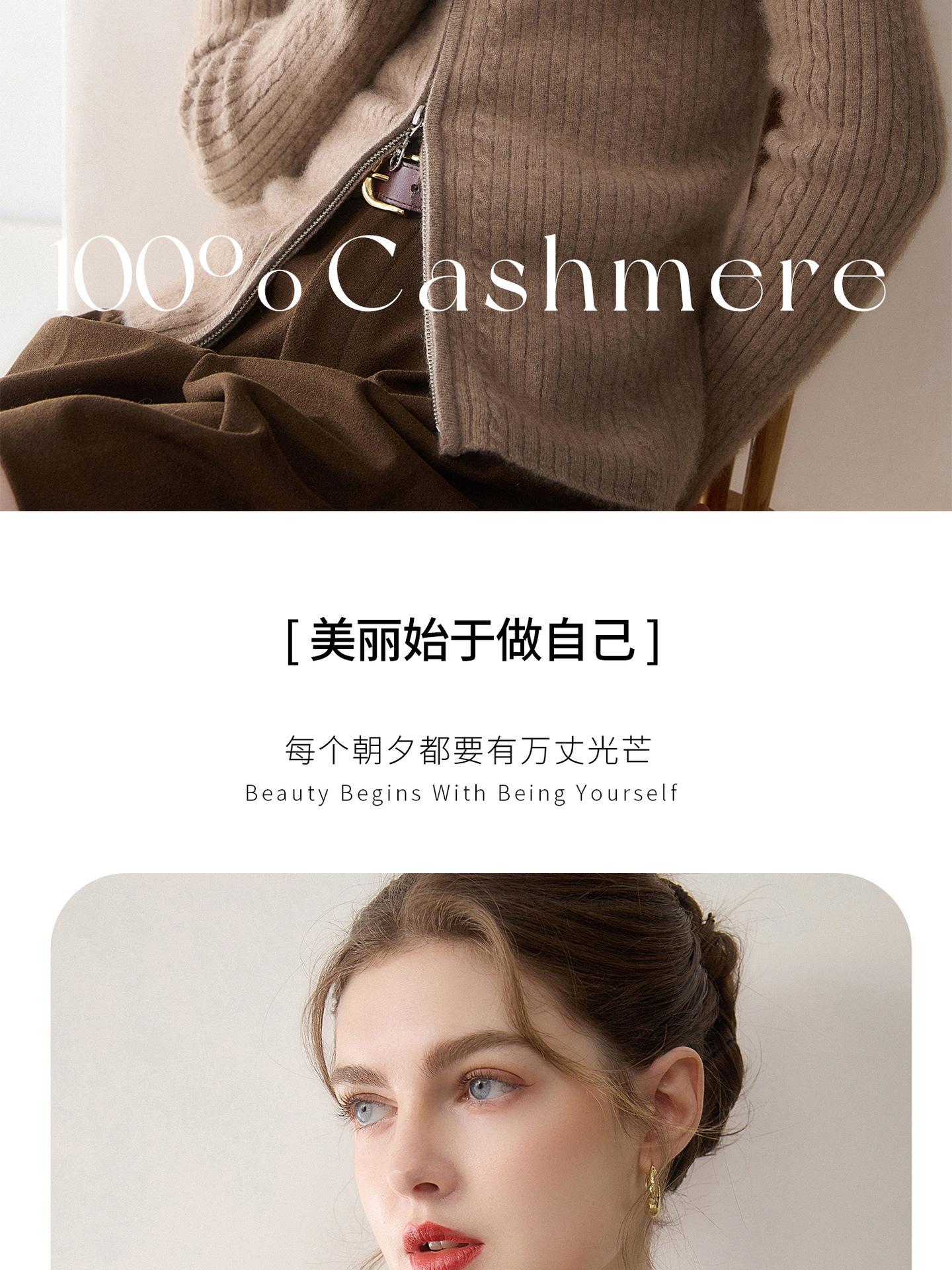 Estilo otoño e invierno 100% cachemira para mujer cárdigan de punto de corte ajustado versátil suave respetuoso con la piel cremallera cuello medio alto abrigo