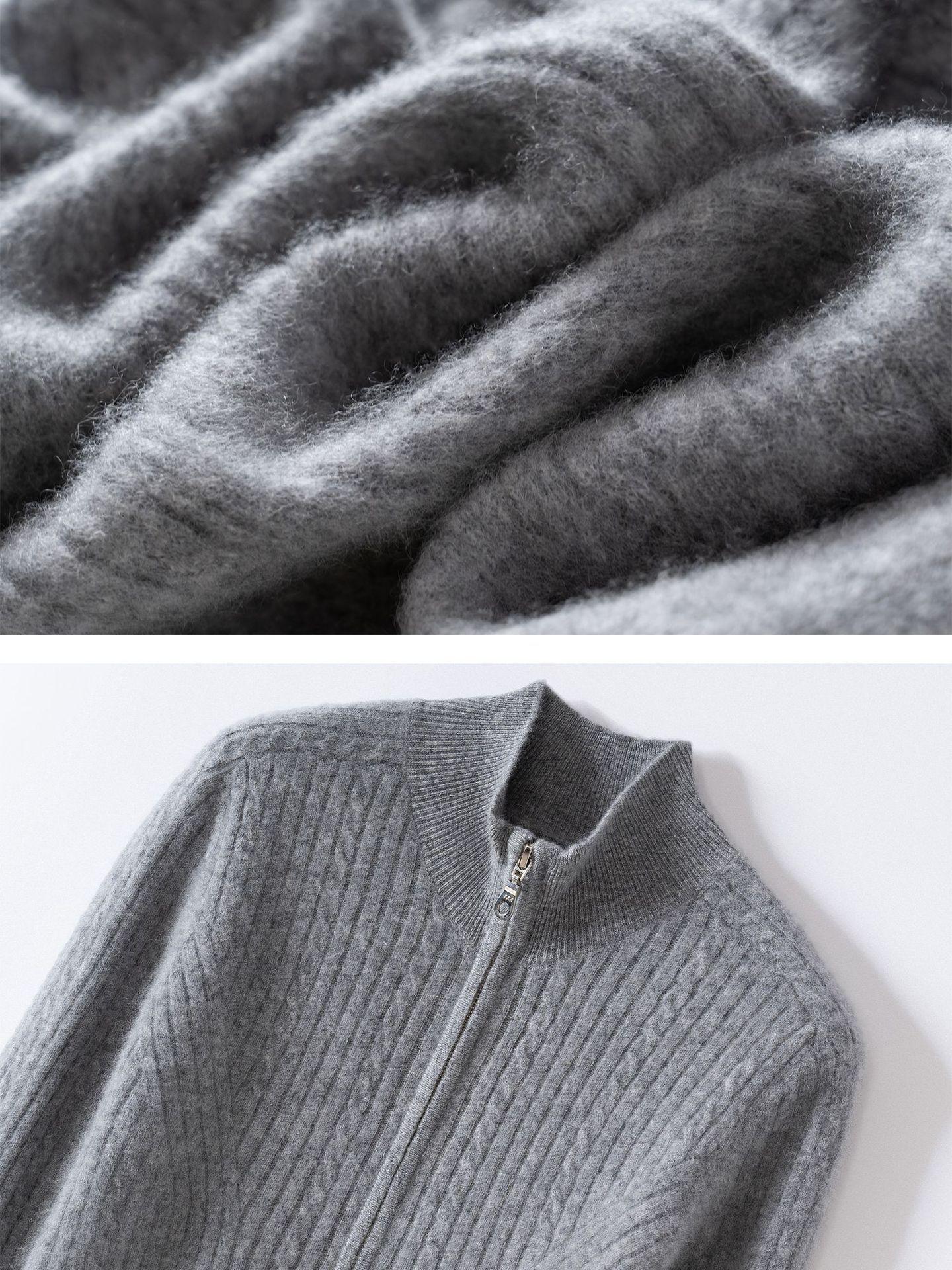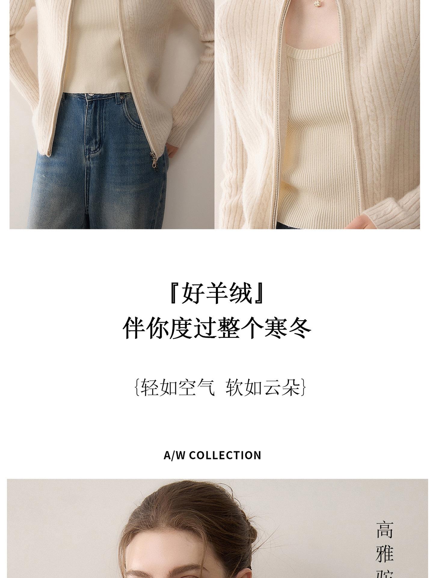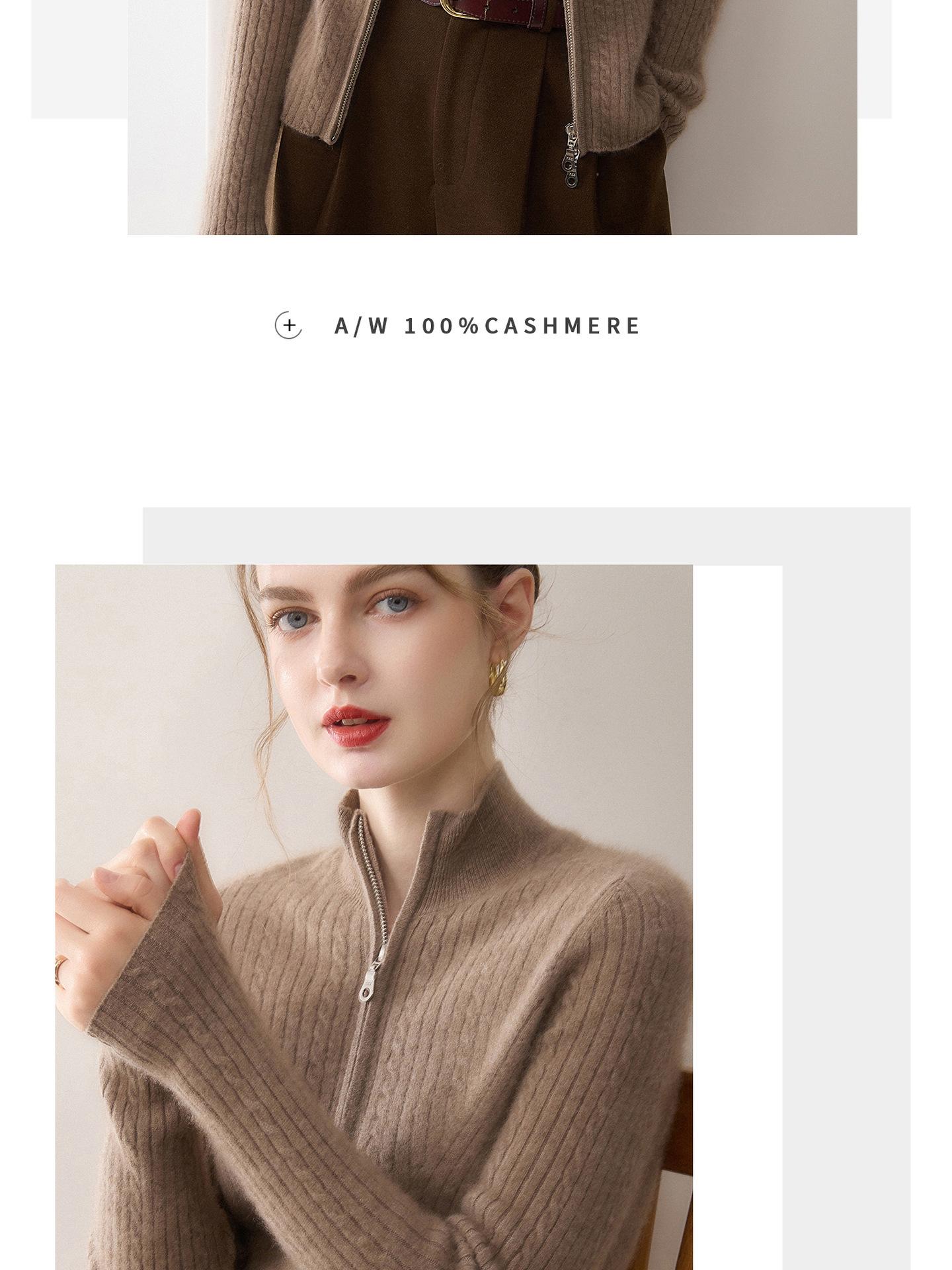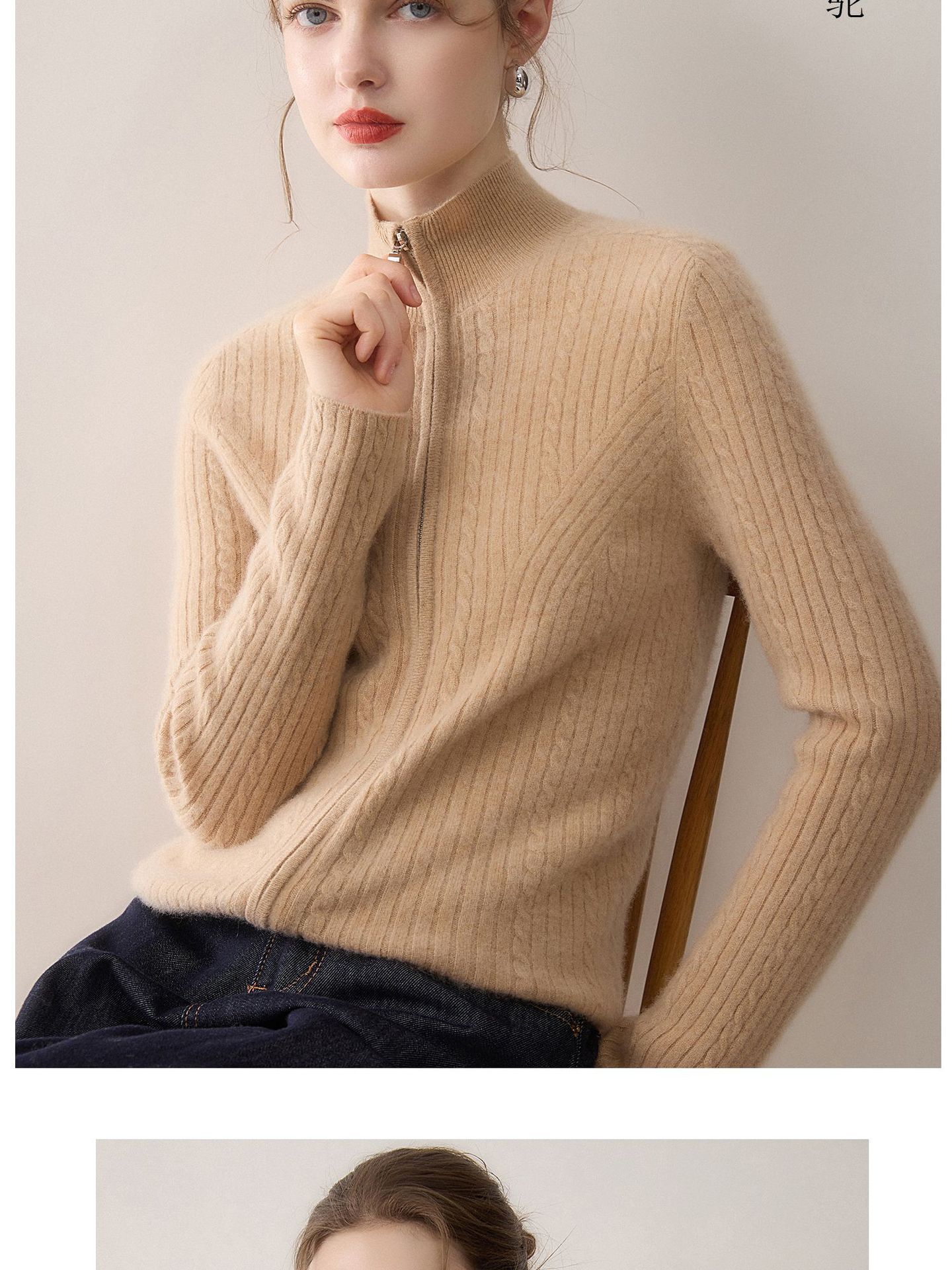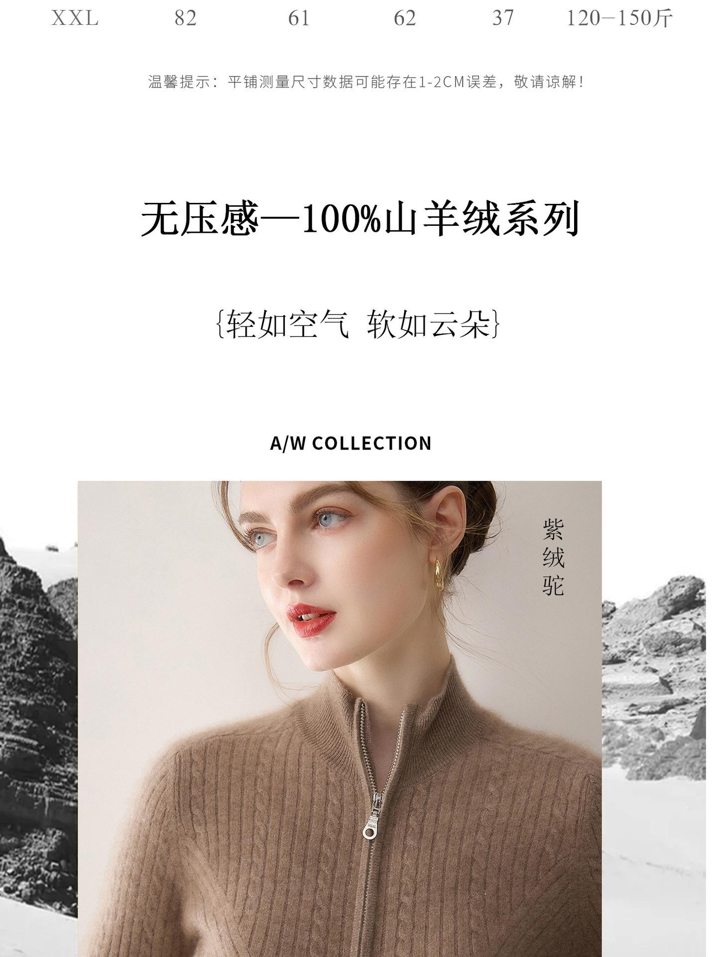 Estilo otoño e invierno 100% cachemira para mujer cárdigan de punto de corte ajustado versátil suave respetuoso con la piel cremallera cuello medio alto abrigo