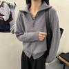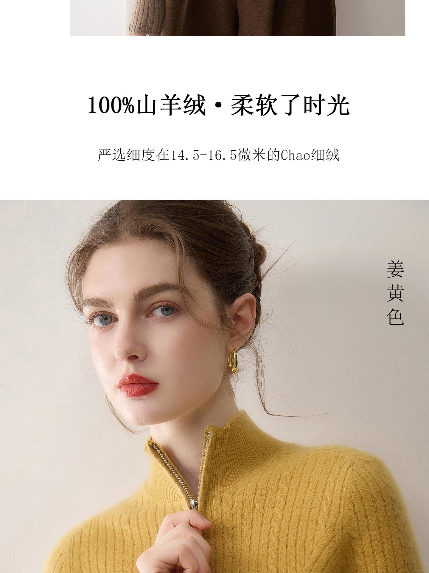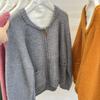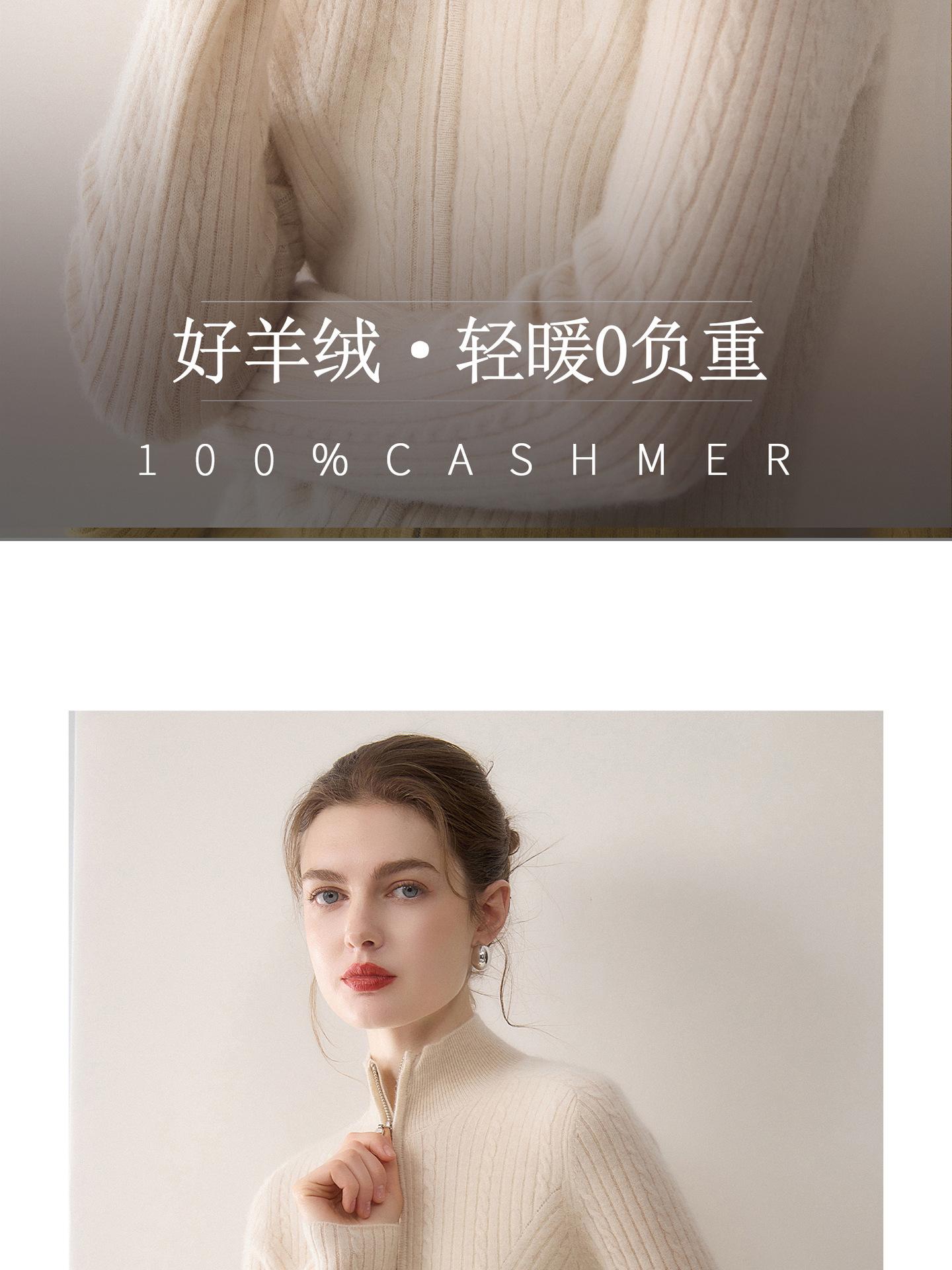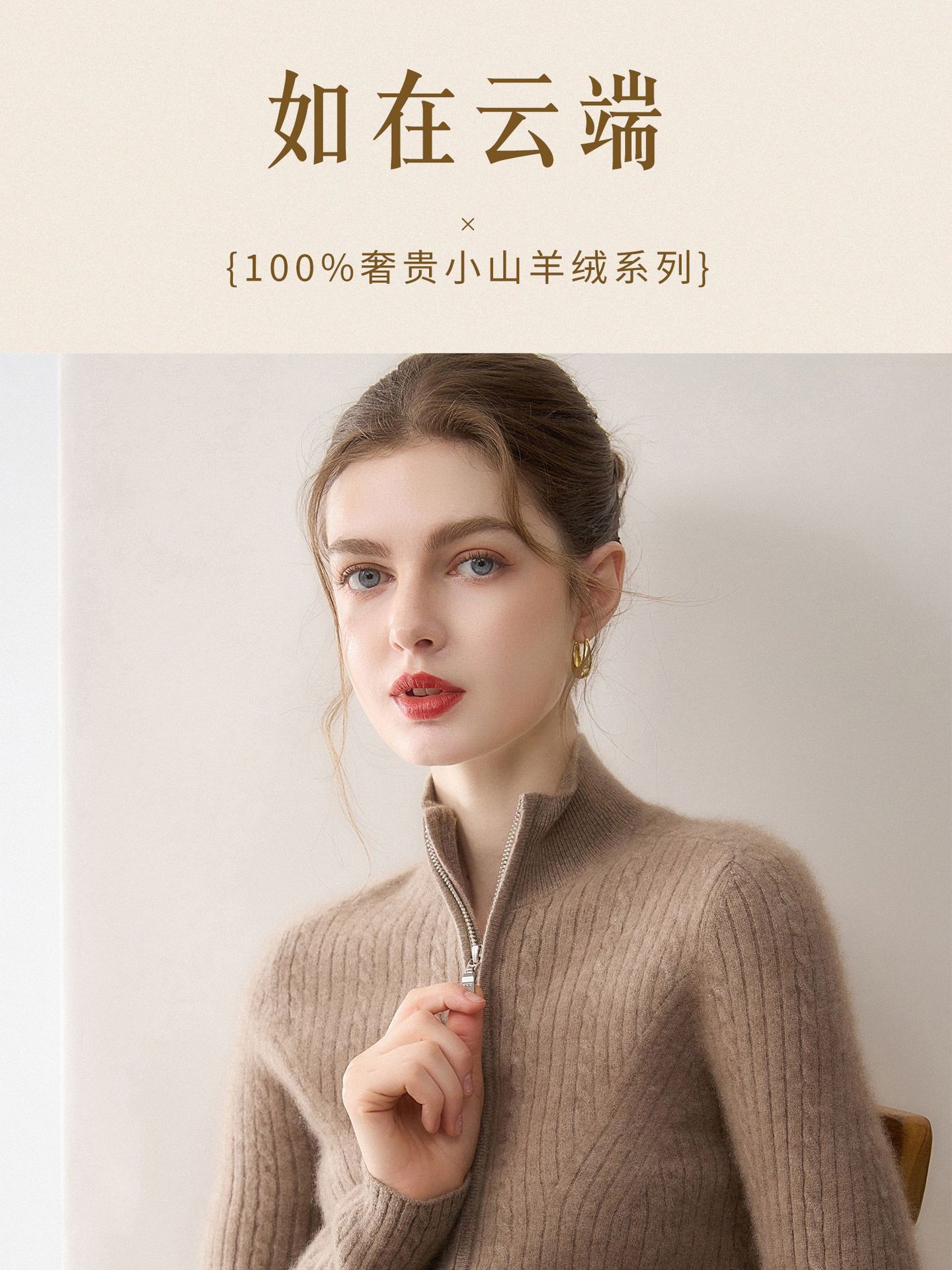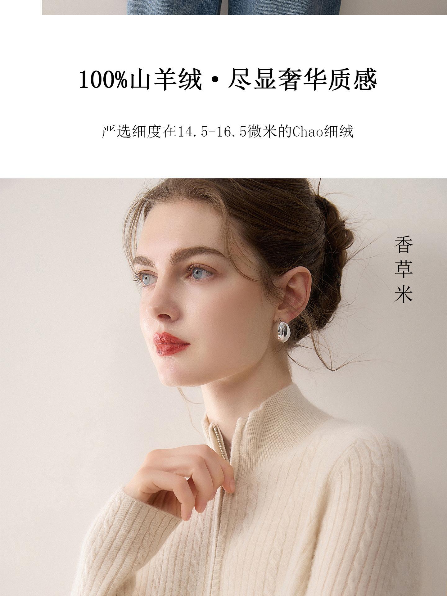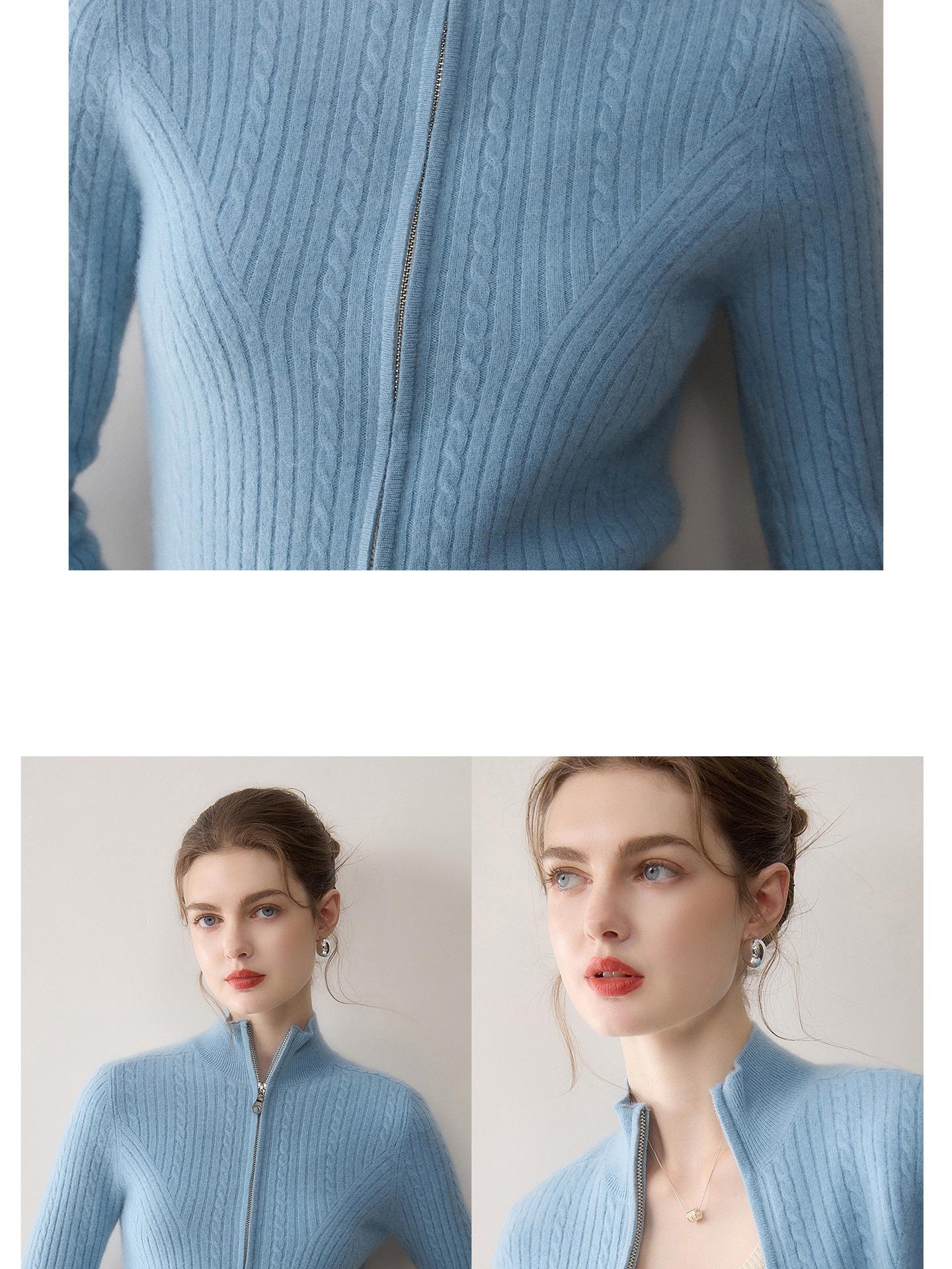 Estilo otoño e invierno 100% cachemira para mujer cárdigan de punto de corte ajustado versátil suave respetuoso con la piel cremallera cuello medio alto abrigo