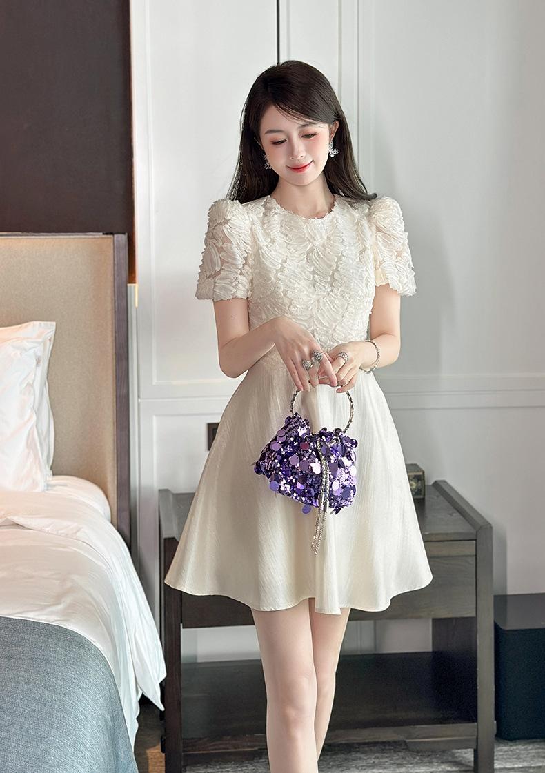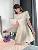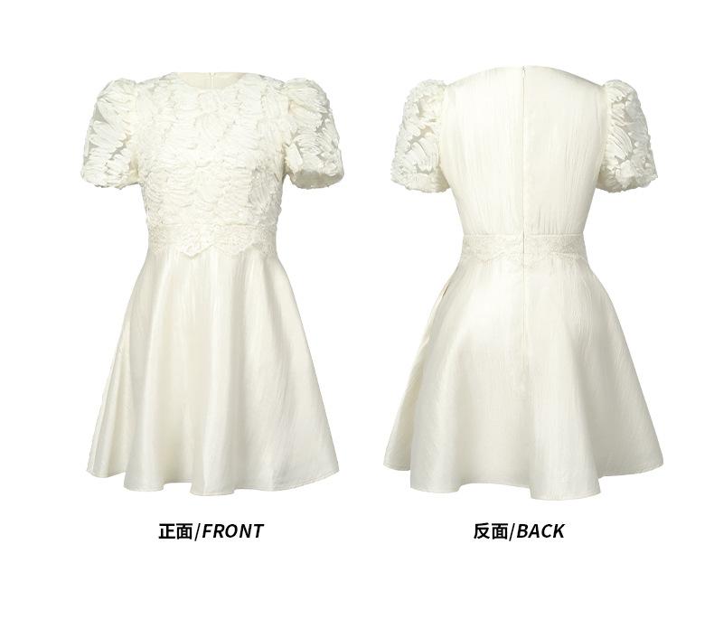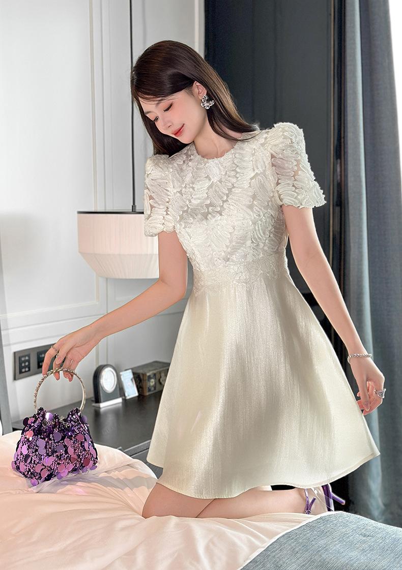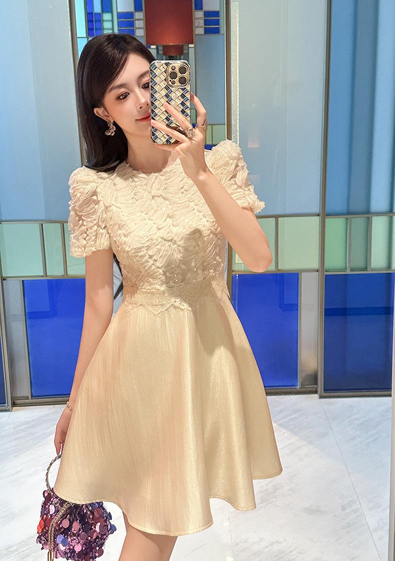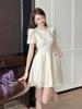 Exquisito Vestido de Cumpleaños 2025 Nuevo Verano para Mujer Francés Cuello Redondo Cintura A-Línea Manga Corta Vestido 21758