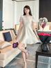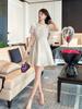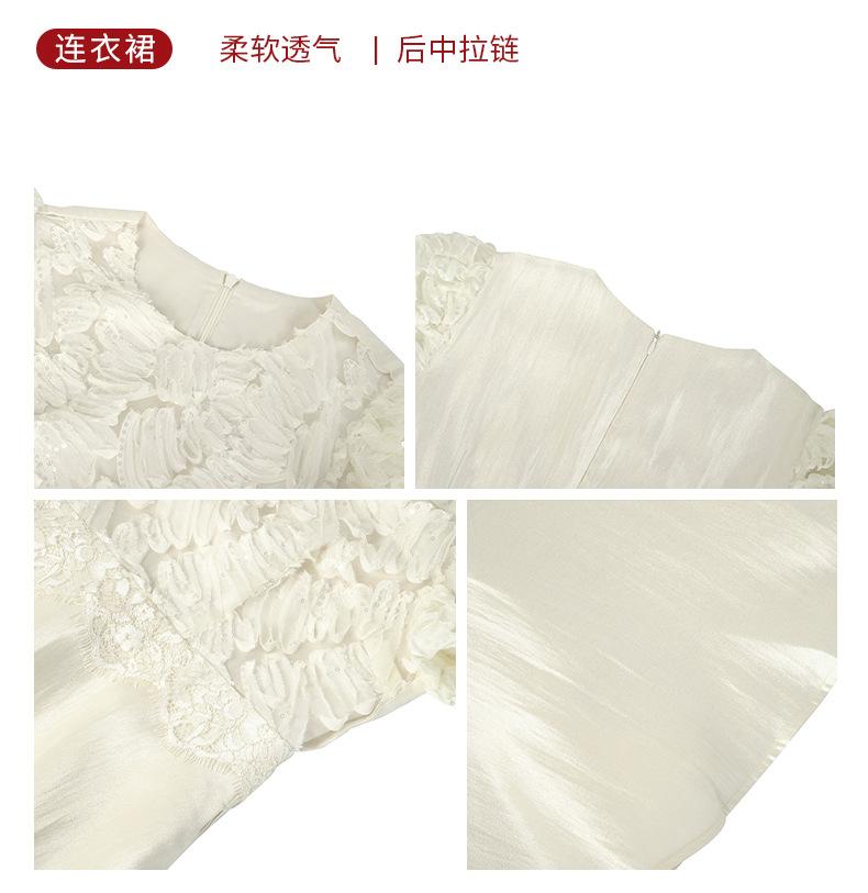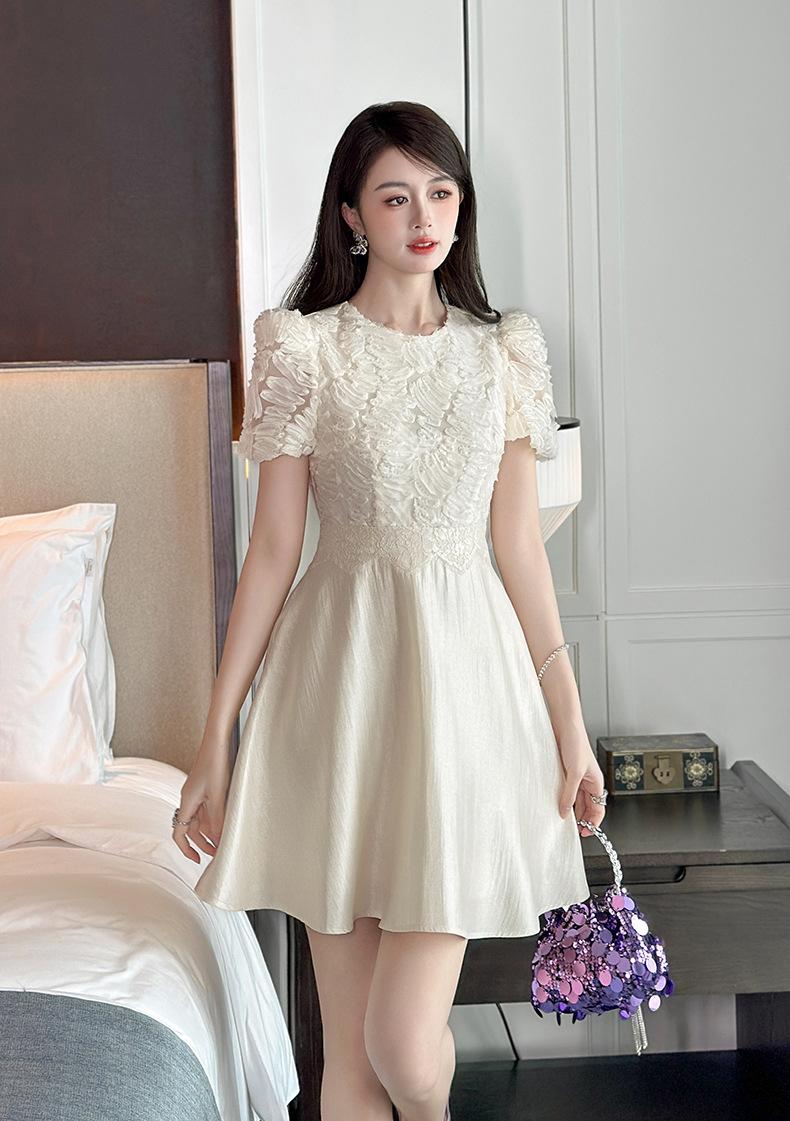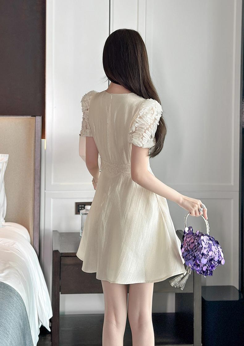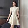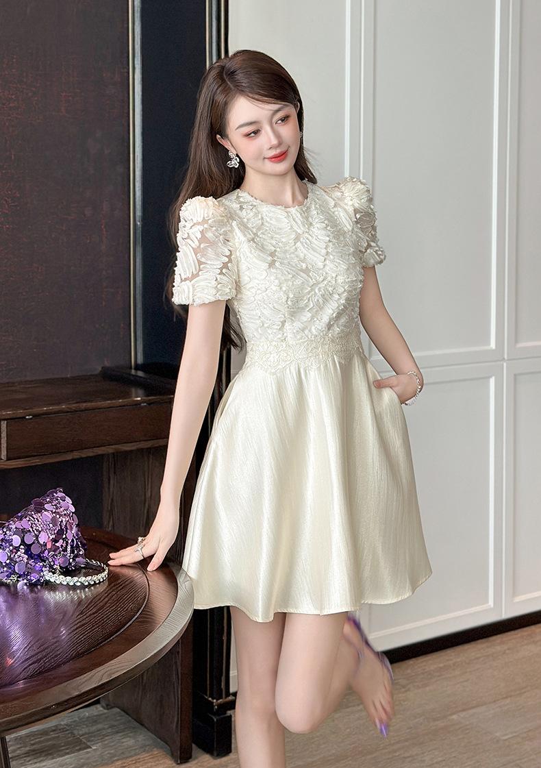 Exquisito Vestido de Cumpleaños 2025 Nuevo Verano para Mujer Francés Cuello Redondo Cintura A-Línea Manga Corta Vestido 21758