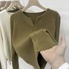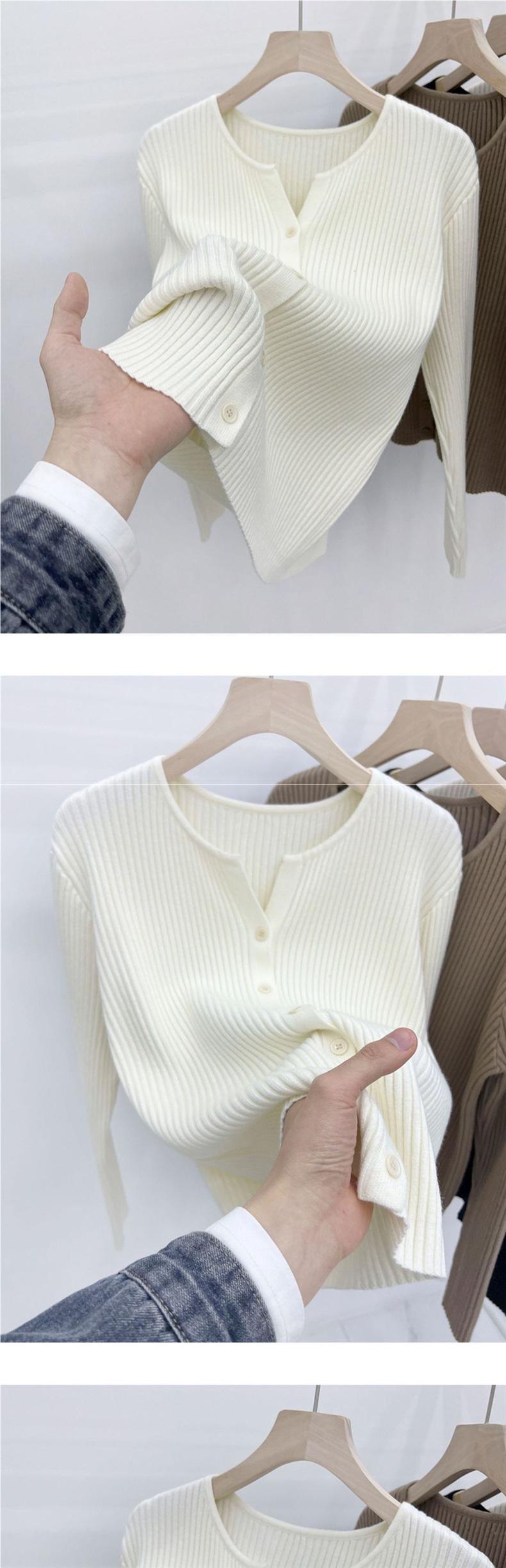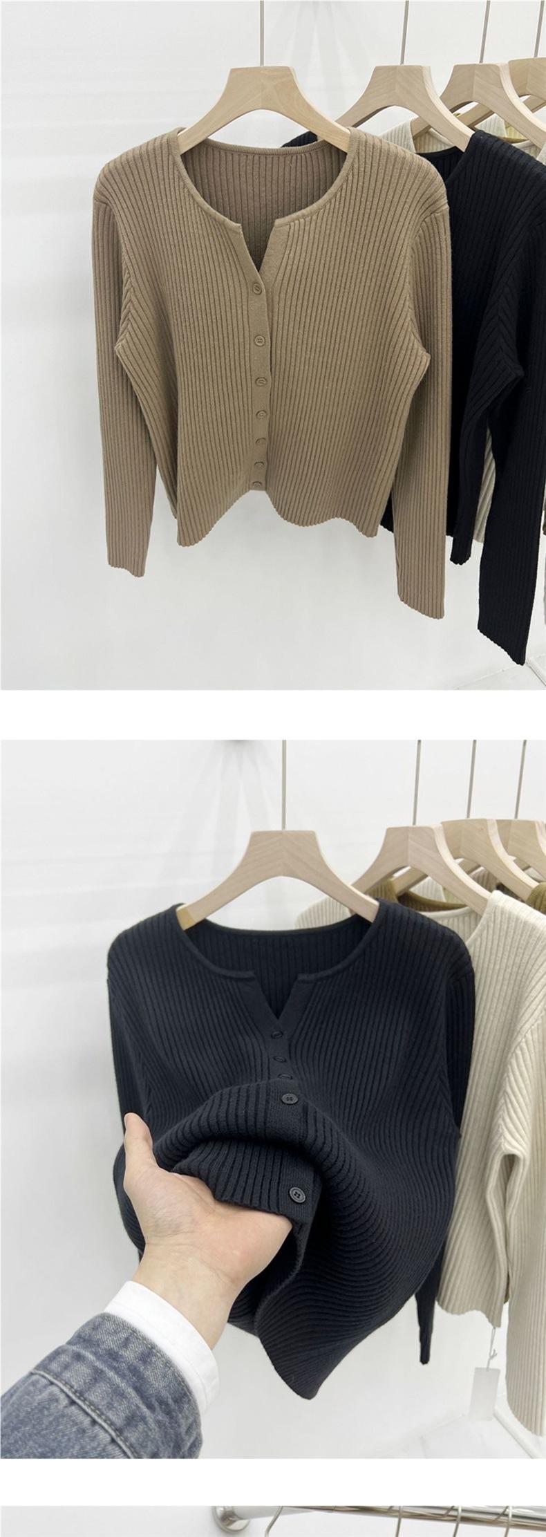 Camiseta básica de punto para mujer, cárdigan fino de primavera y otoño, abrigo suéter 2025 nuevo estilo, prenda exterior retro, top interior para mujer