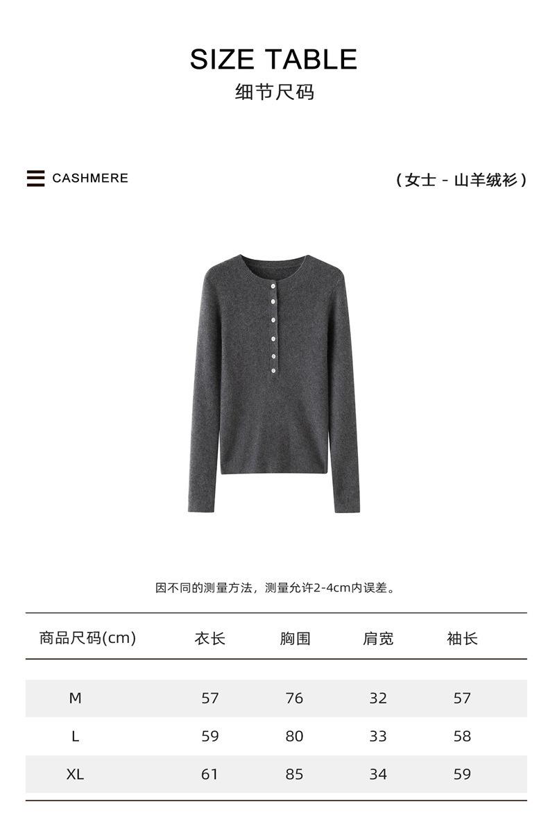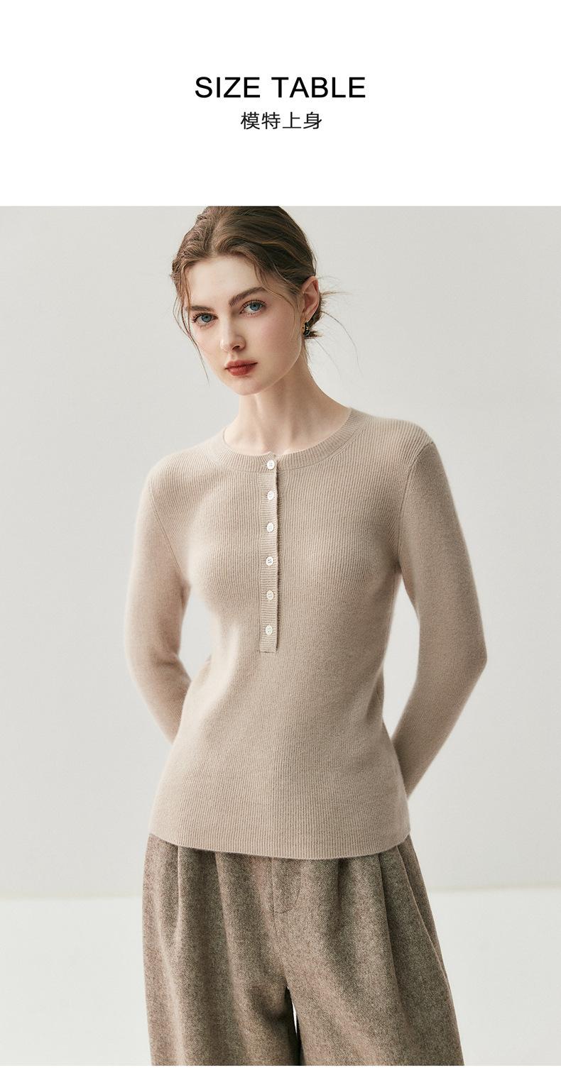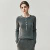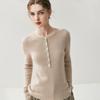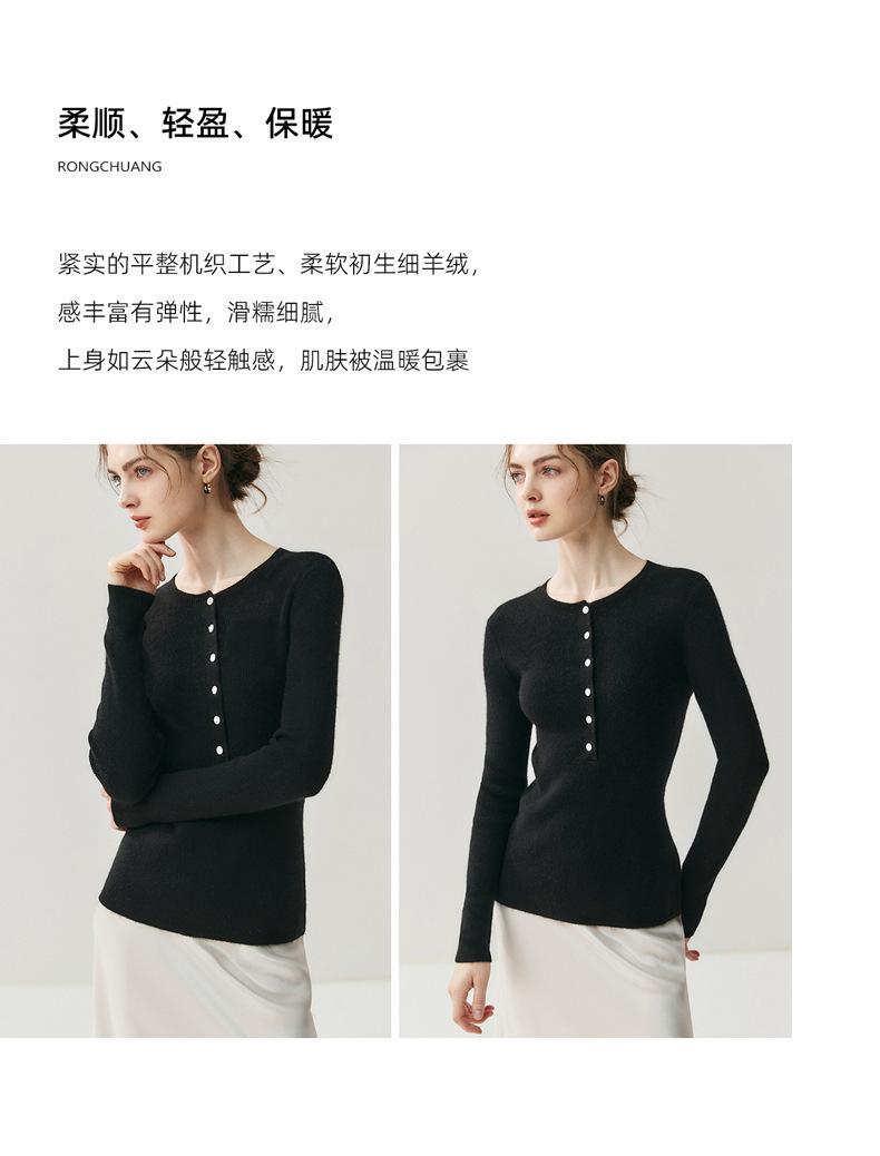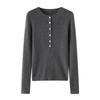 Suéter de Cachemira Nuevo Otoño e Invierno para Mujer Cuello Redondo Suéter Base Temperamento Estilo Elegante Medio Botón Pulóver Delgado Ropa Interior