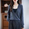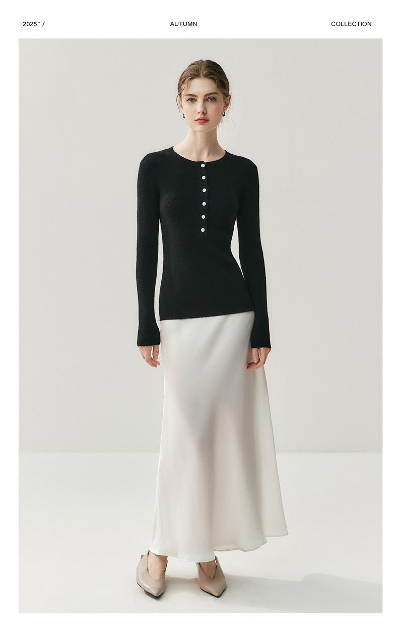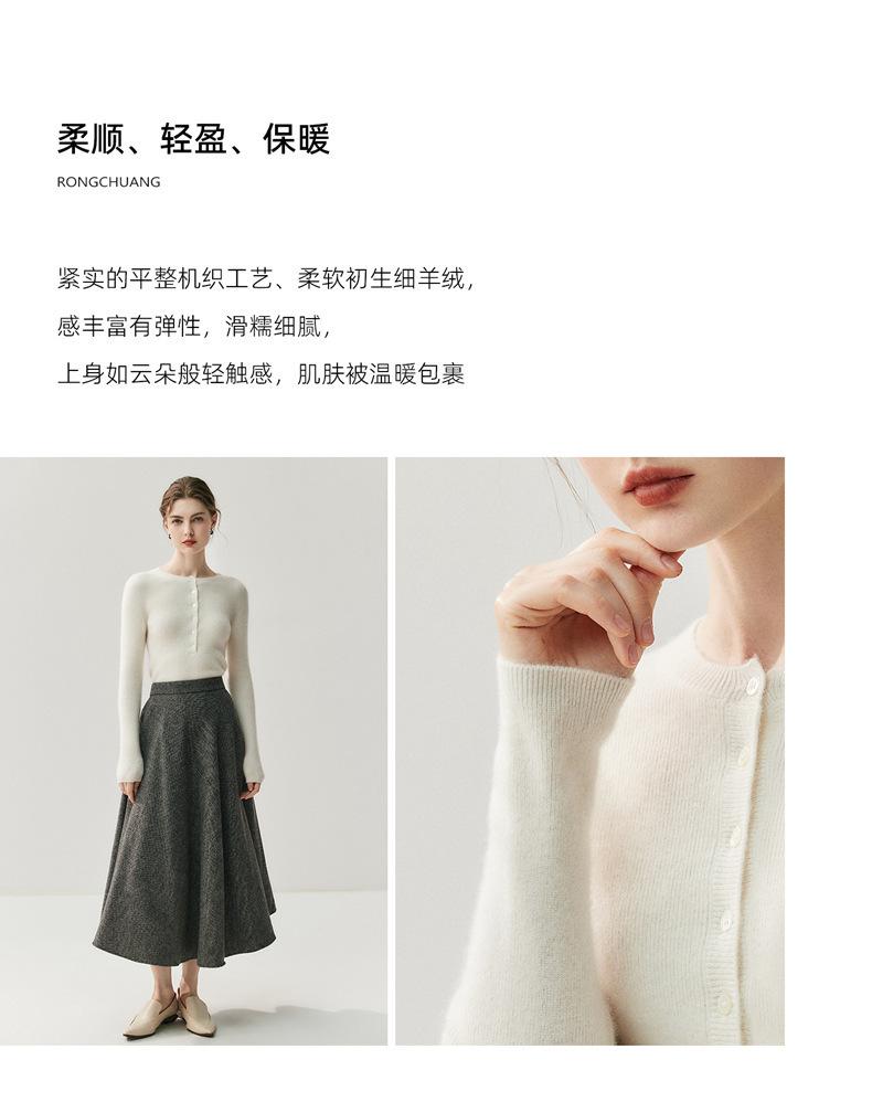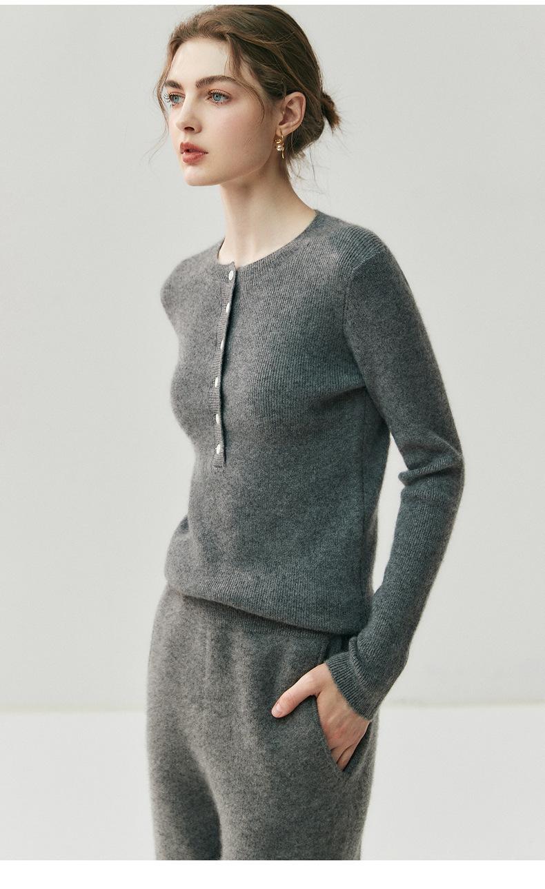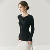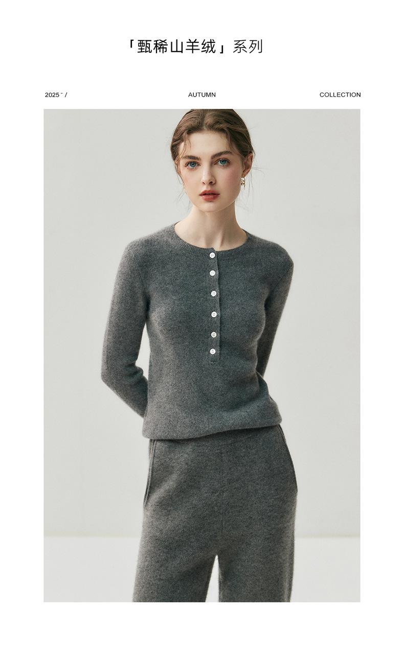 Suéter de Cachemira Nuevo Otoño e Invierno para Mujer Cuello Redondo Suéter Base Temperamento Estilo Elegante Medio Botón Pulóver Delgado Ropa Interior