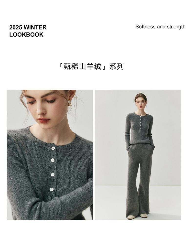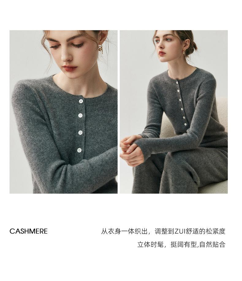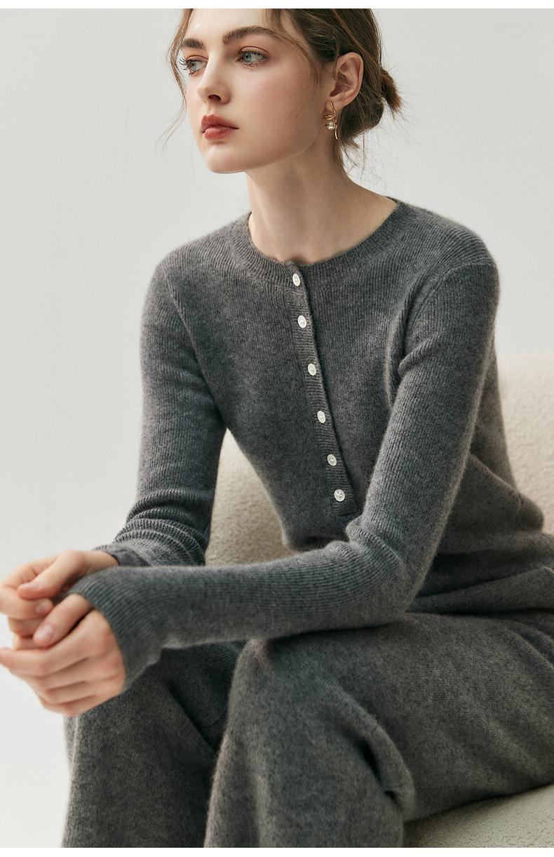 Nuevo Suéter de Cachemira para Mujer Otoño/Invierno Cuello Redondo Medio Botón Manga Larga Tejido de Punto Suéter Adelgazante para Mujer Top de Temperamento Elegante