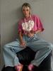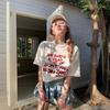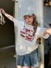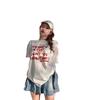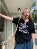 Camiseta Blanca de Manga Corta para Mujer Verano Sentido del Diseño Americano Estampado de Letras Holgada Casual Cuello Redondo Top Chic Combinable