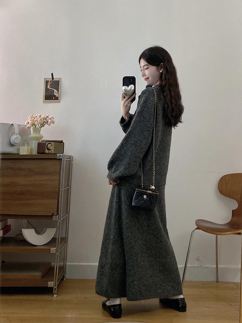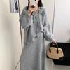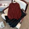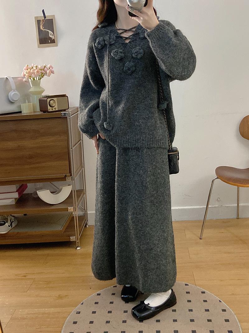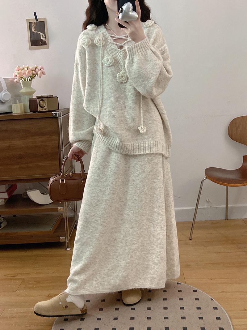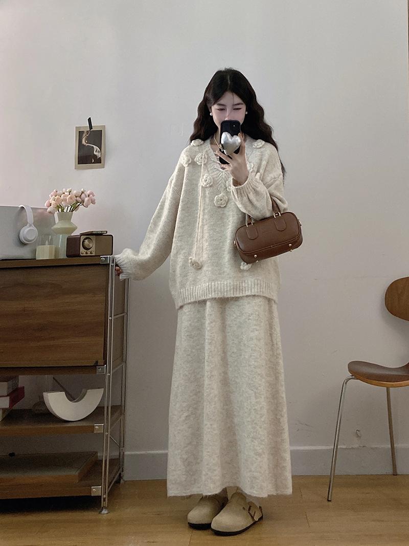 Conjunto Talla Grande 2025 Otoño/Invierno Nuevo Dulce Francés Diseño Floral Sentido Suéter Tejido Falda Conjunto de Dos Piezas