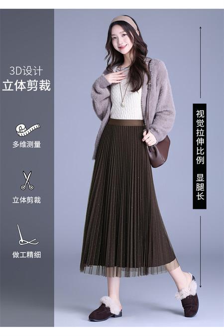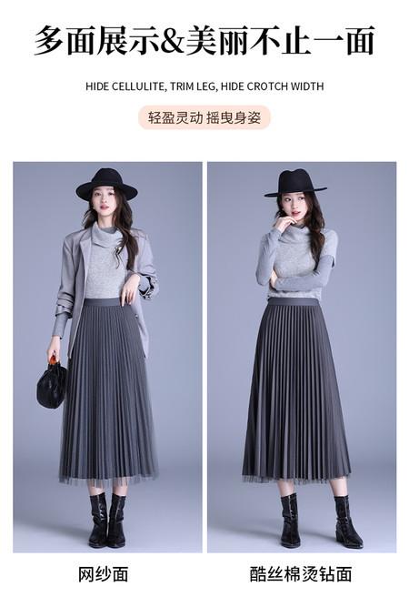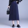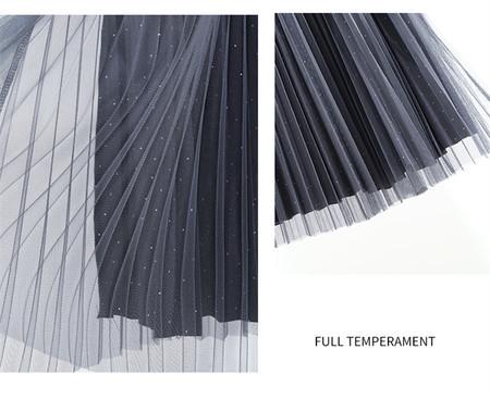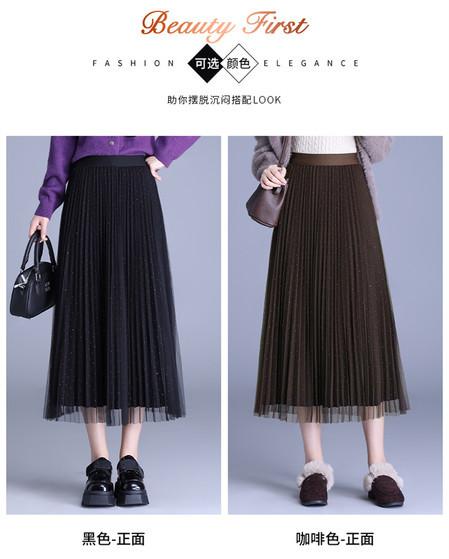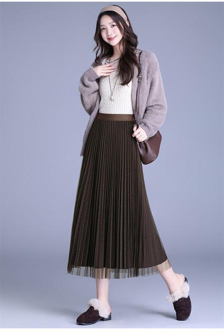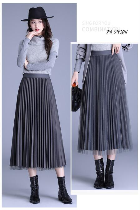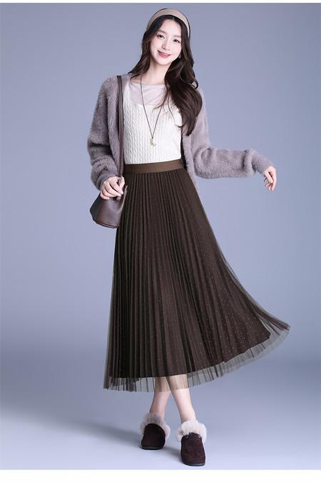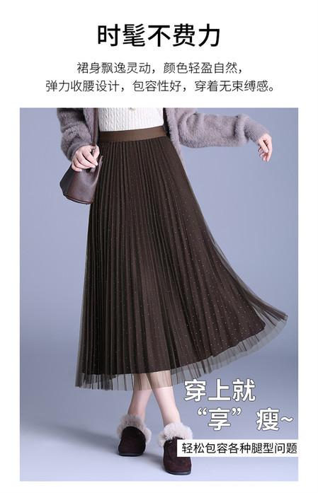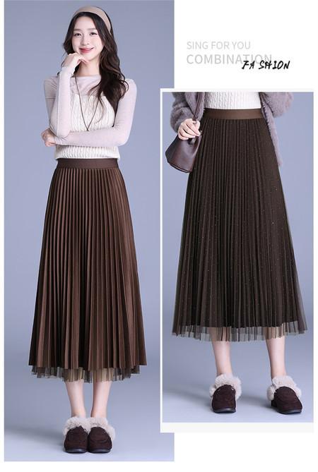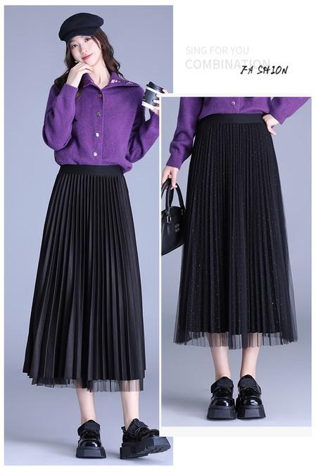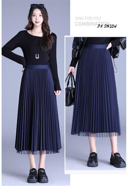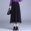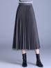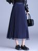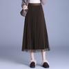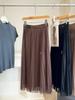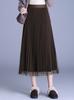 2025 Nueva Falda Midi Adelgazante de Malla Casual con Pliegues Falda de Gran Vuelo para Mujer Otoño e Invierno Falda Drapeada Falda Midi para Mujer