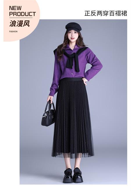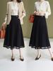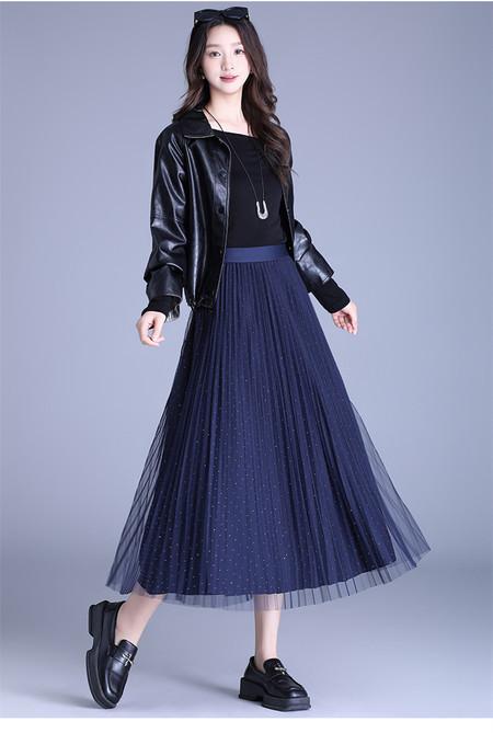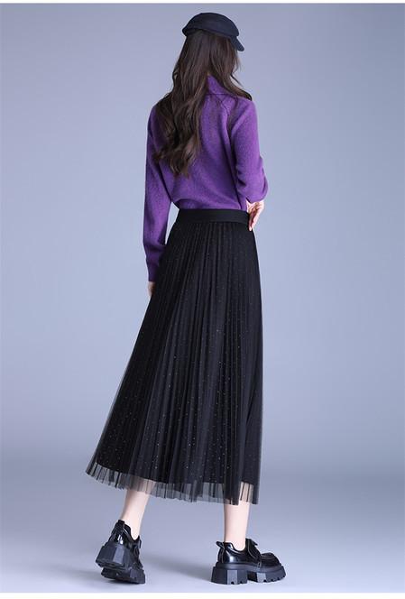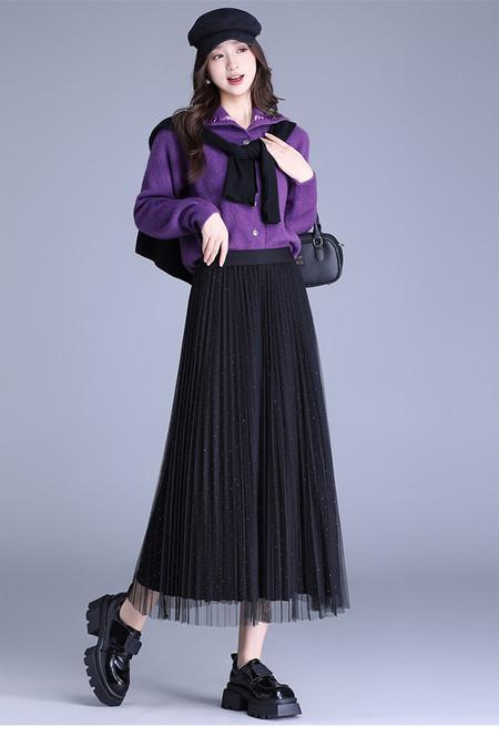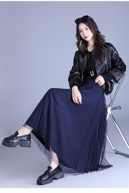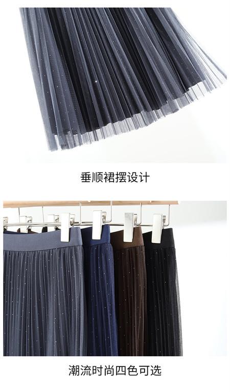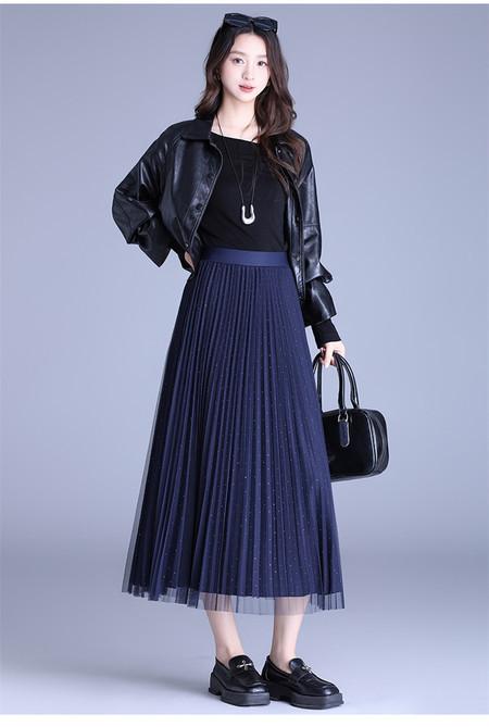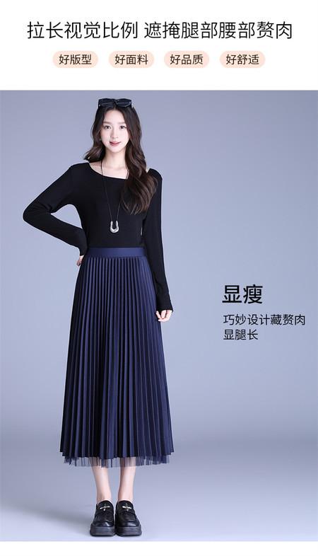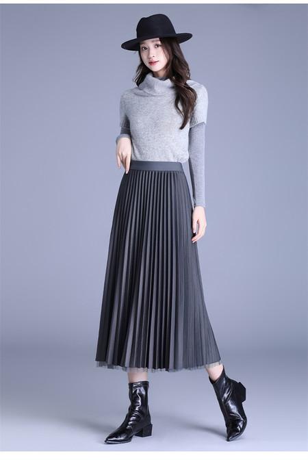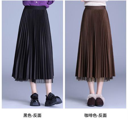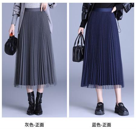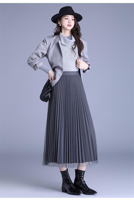 2025 Nueva Falda Midi Adelgazante de Malla Casual con Pliegues Falda de Gran Vuelo para Mujer Otoño e Invierno Falda Drapeada Falda Midi para Mujer