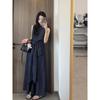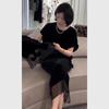 Conjunto de verano súper hermoso estilo Hepburn francés temperamento único absolutamente hermoso conjunto de top y falda de terciopelo negro