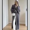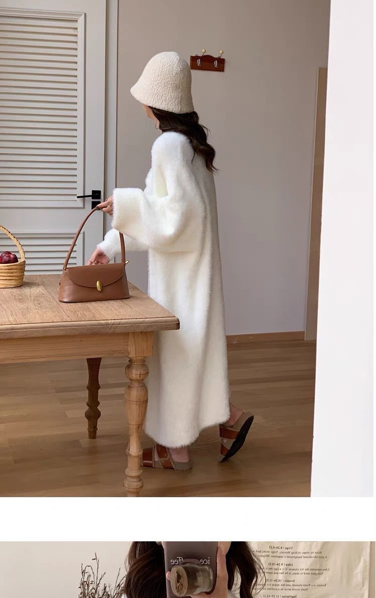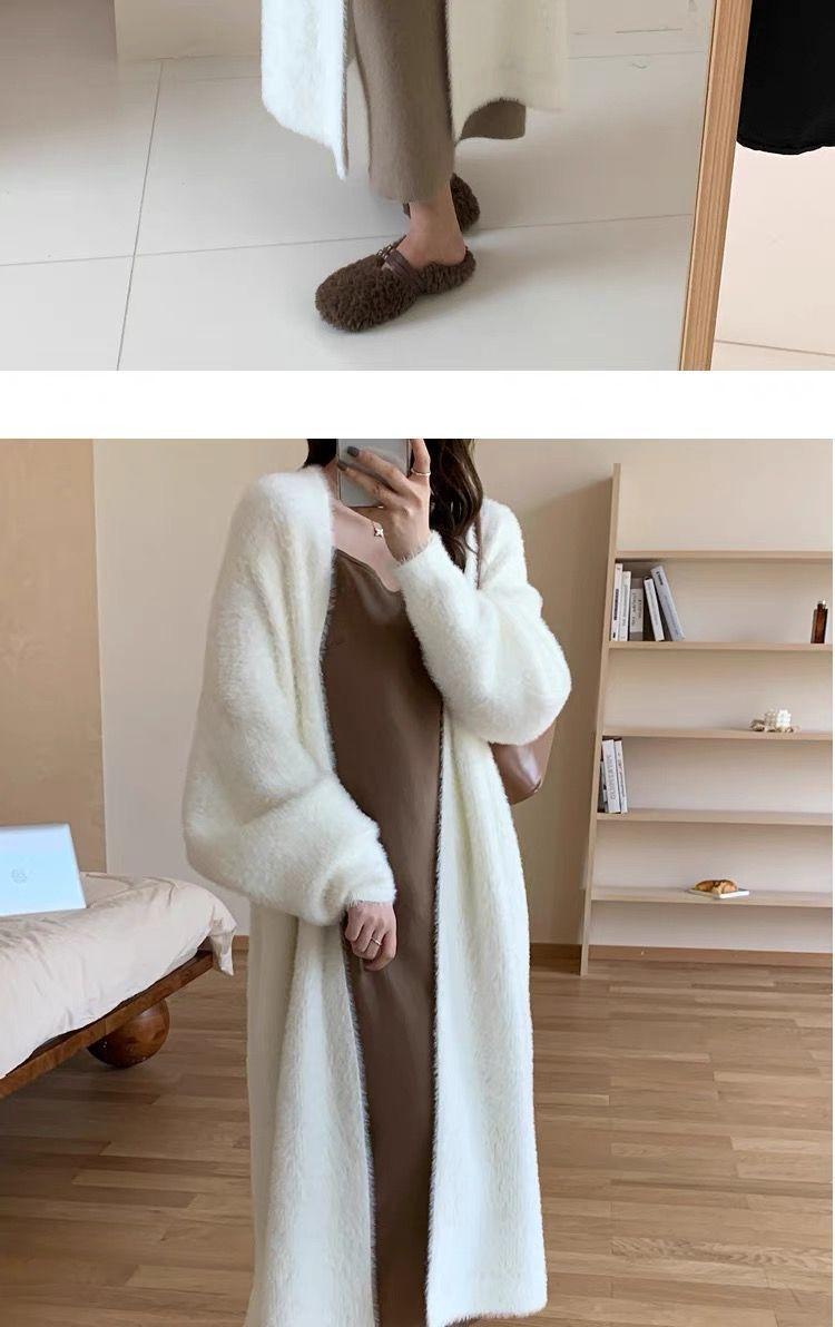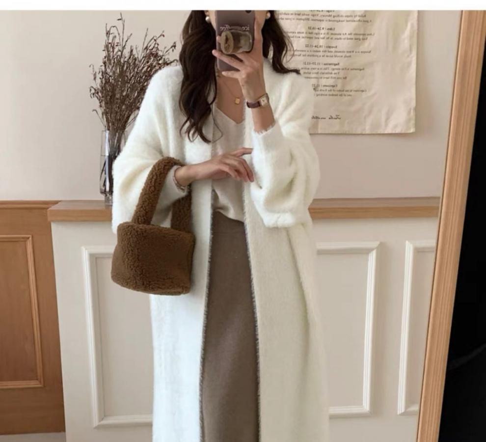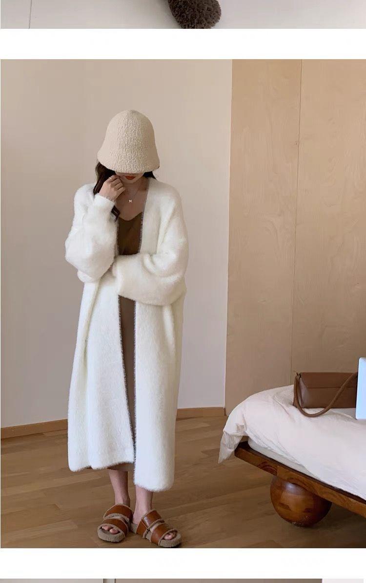 Abrigo cárdigan de longitud media tejido para mujer otoño e invierno estilo suave holgado estilo perezoso sobre la rodilla cachemira de visón esponjoso
