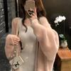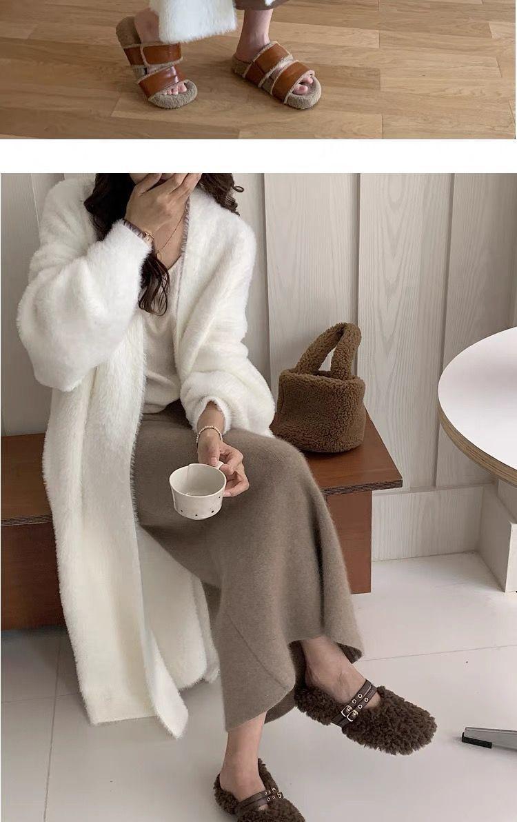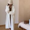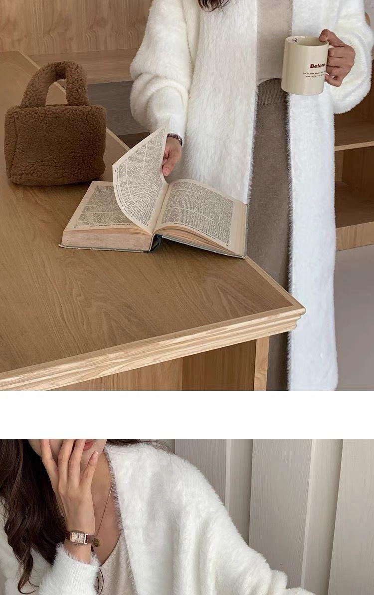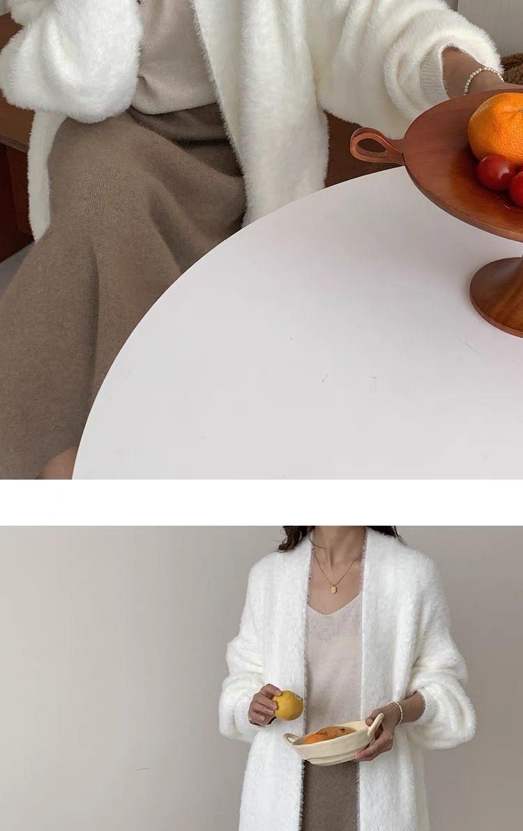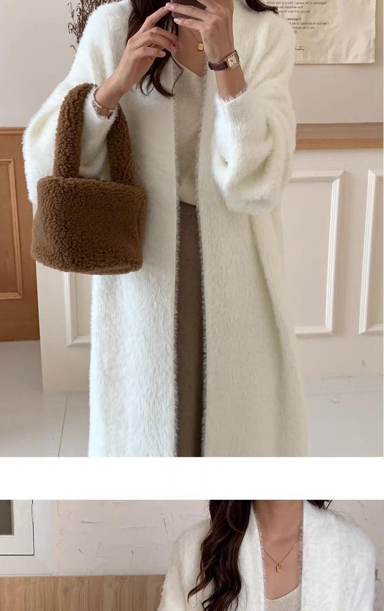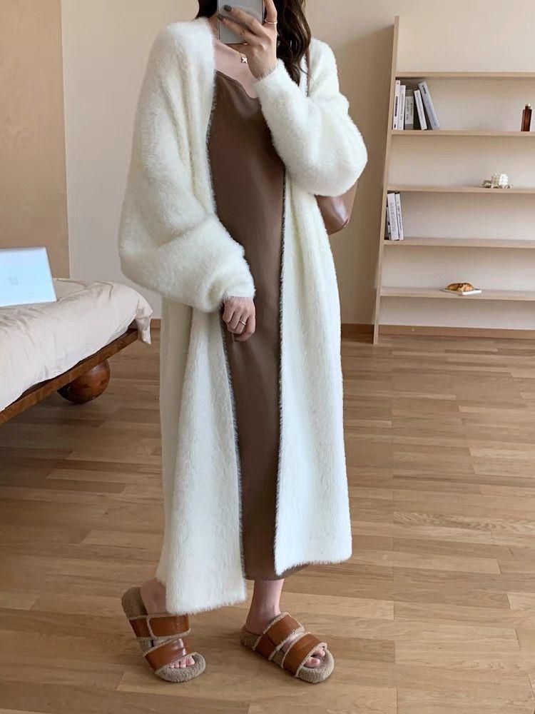 Abrigo cárdigan de longitud media tejido para mujer otoño e invierno estilo suave holgado estilo perezoso sobre la rodilla cachemira de visón esponjoso