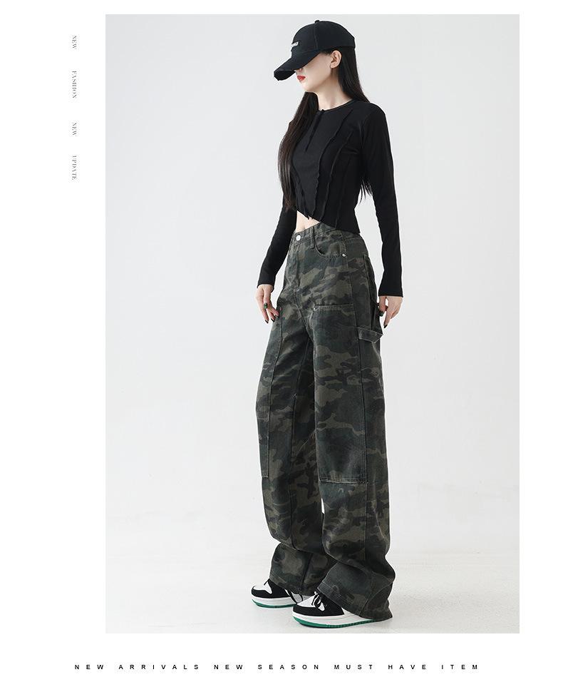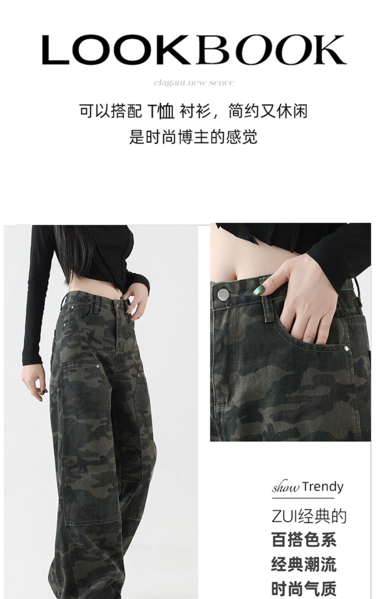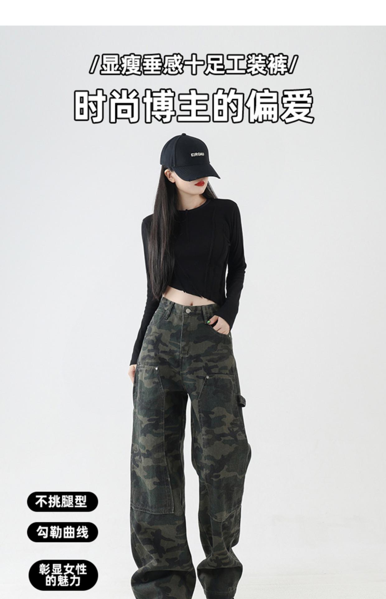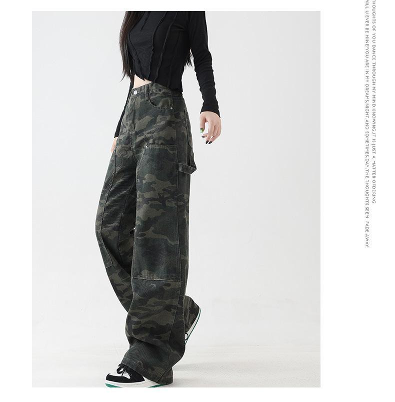 Pantalones de Camuflaje Versátiles Adelgazantes para Mujer Nuevo Hot Girl 2025 Pantalones Vaqueros de Gama Alta Estilo Urbano Skinny Pierna Ancha