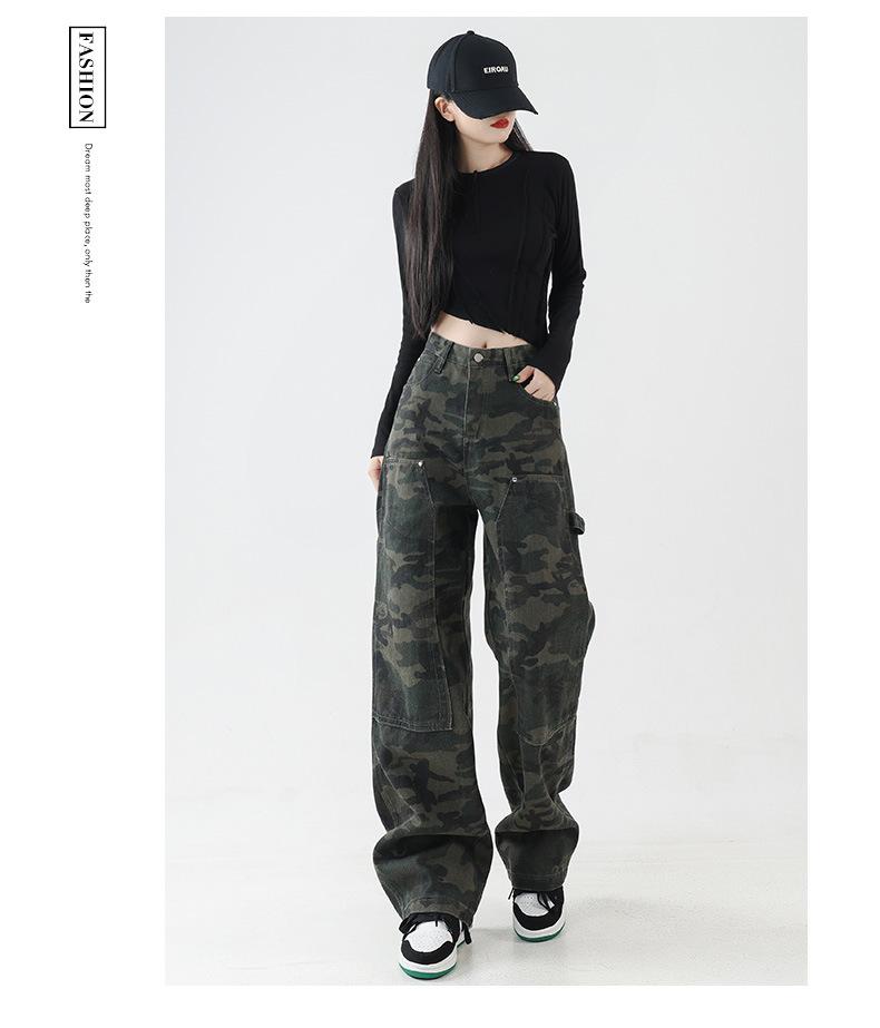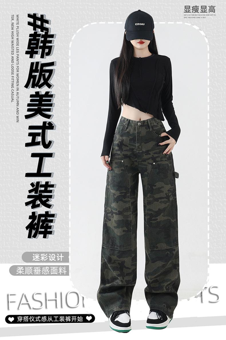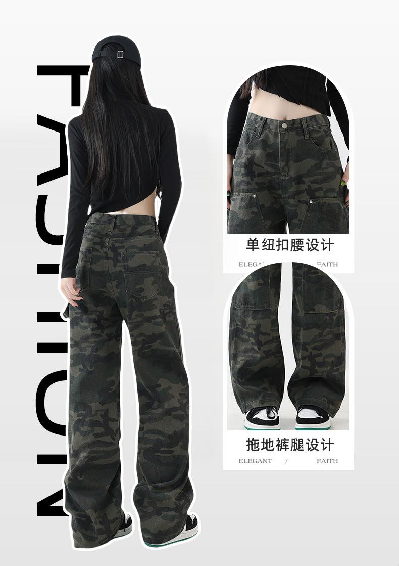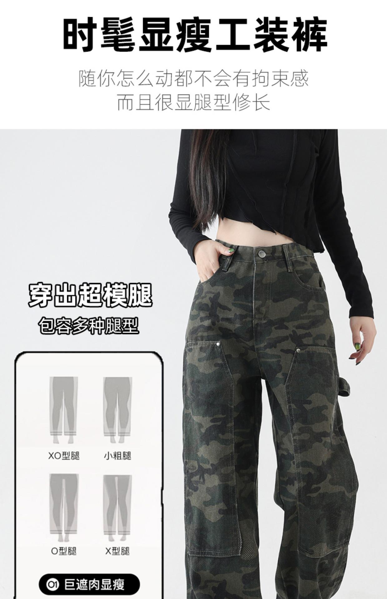 Pantalones de Camuflaje Versátiles Adelgazantes para Mujer Nuevo Hot Girl 2025 Pantalones Vaqueros de Gama Alta Estilo Urbano Skinny Pierna Ancha