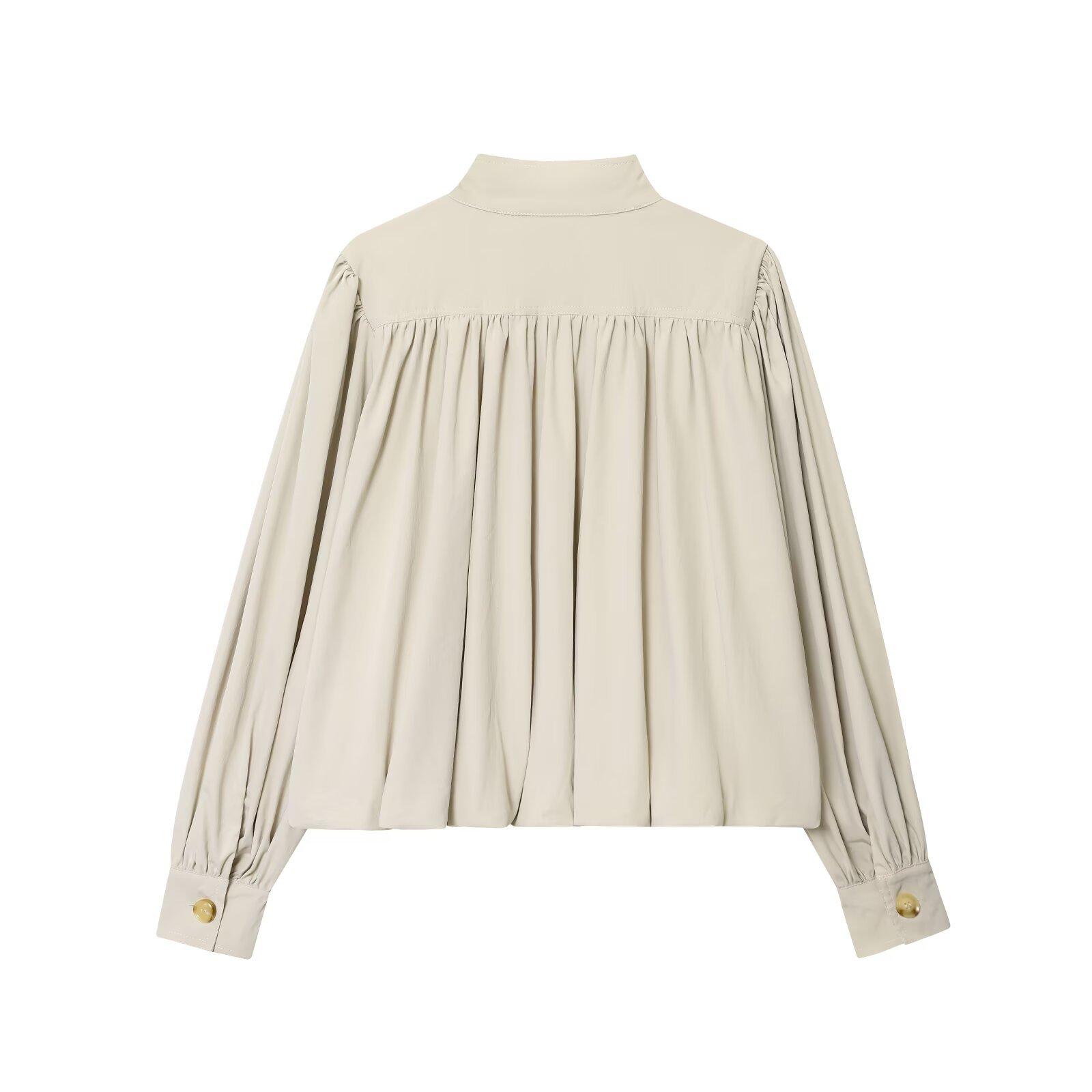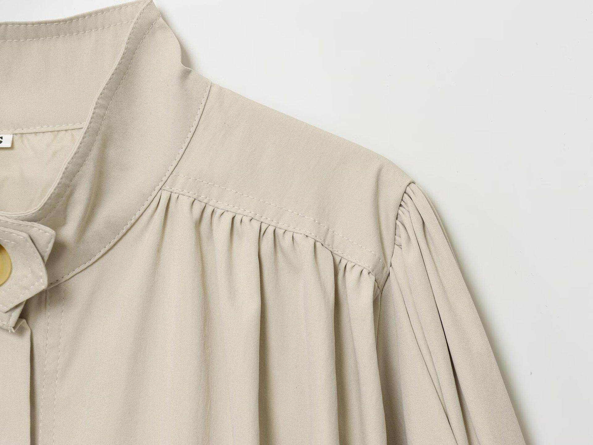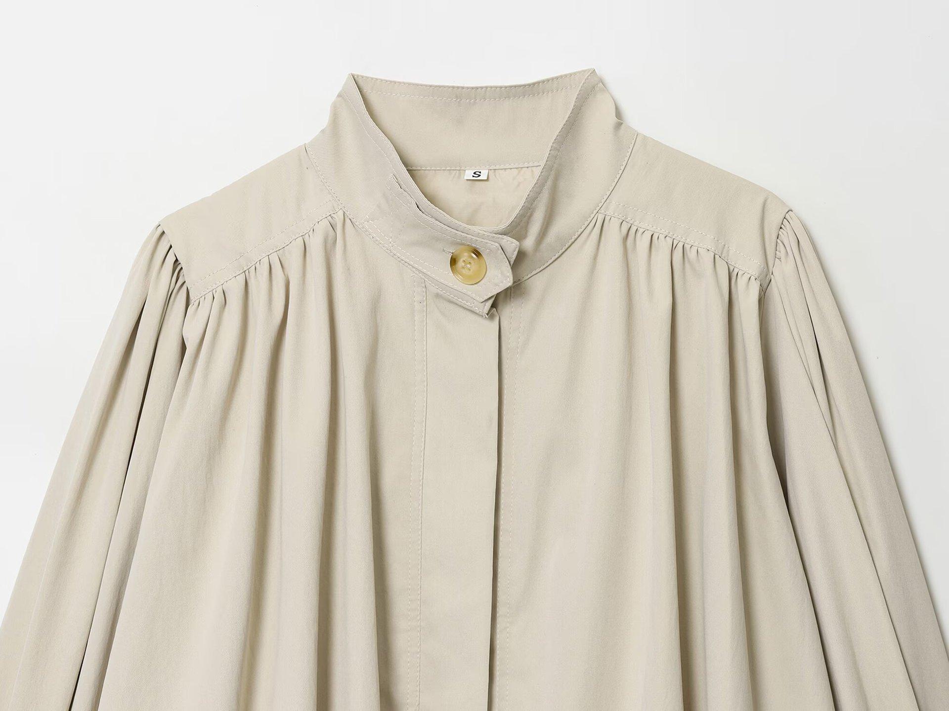 Ropa de mujer de comercio exterior transfronterizo 2025 otoño estilo europeo y americano textura plisada cuello alto manga farol chaqueta abrigo mujer B63170