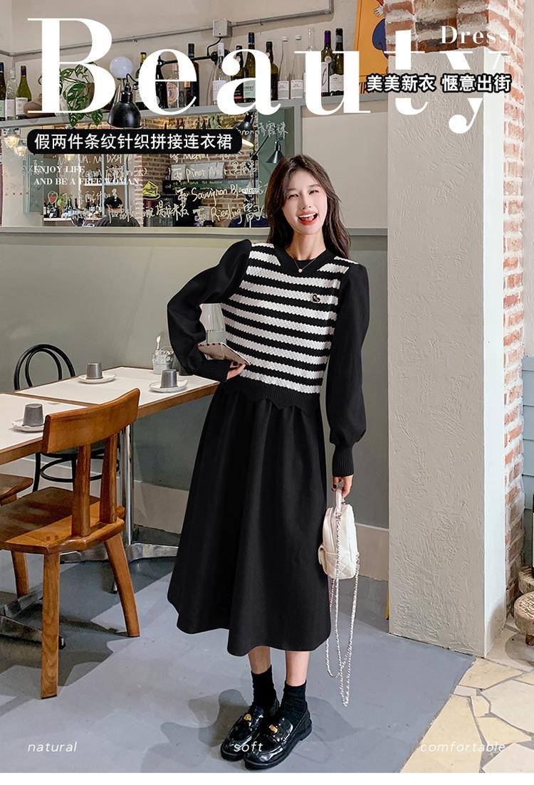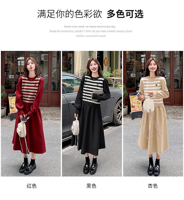 Vestido de mujer temperamento sentido de alta gama 2025 primavera y otoño nuevo estilo reductor de edad versátil cómodo patchwork vestido de dos piezas