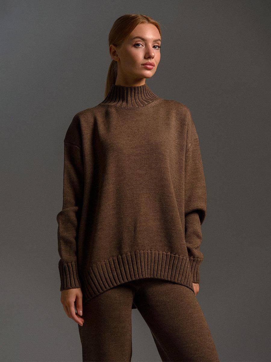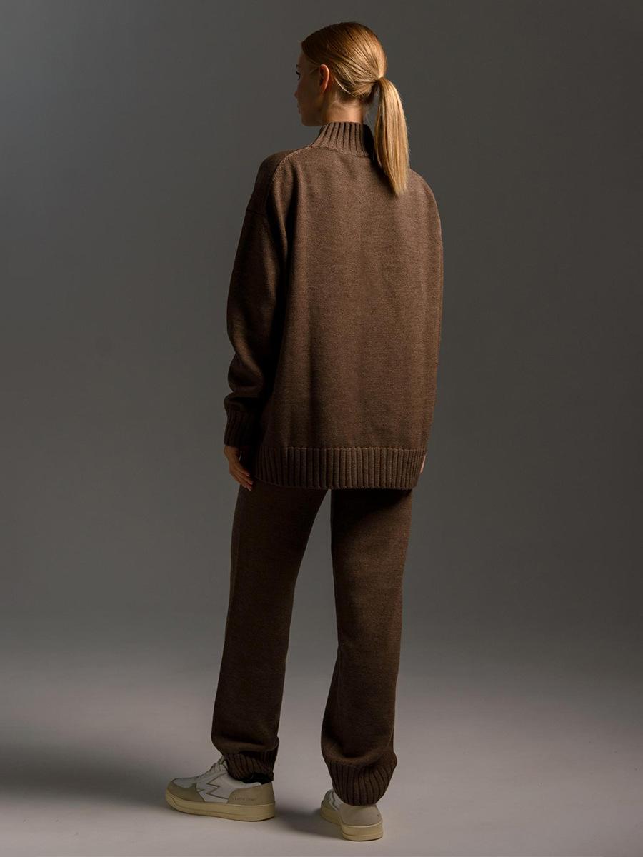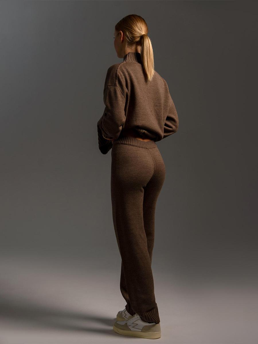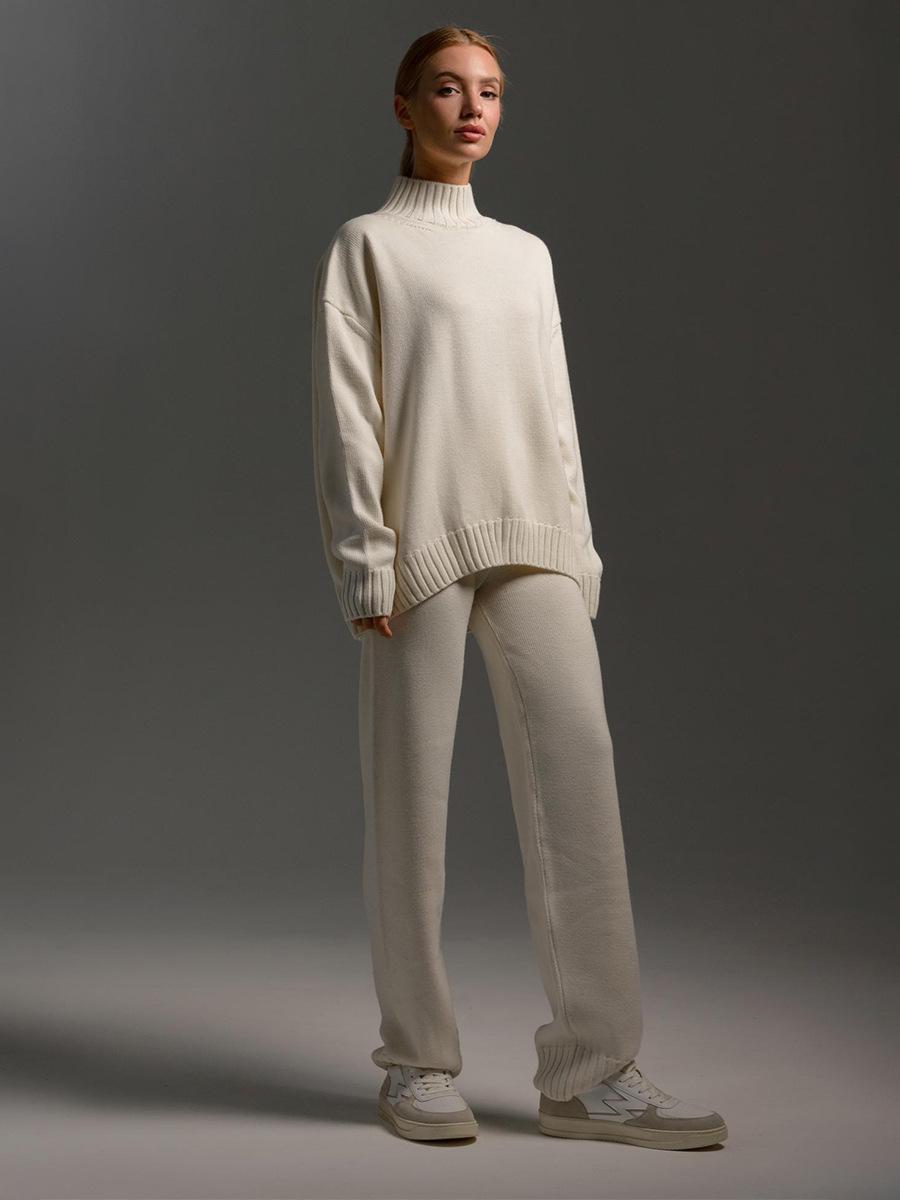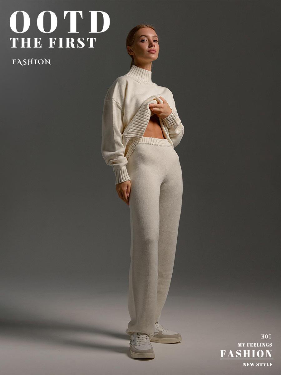 Conjunto de suéter de cuello alto transfronterizo europeo y americano 2025 otoño e invierno nuevo jersey de punto + conjunto de suéter de pantalón largo para mujer