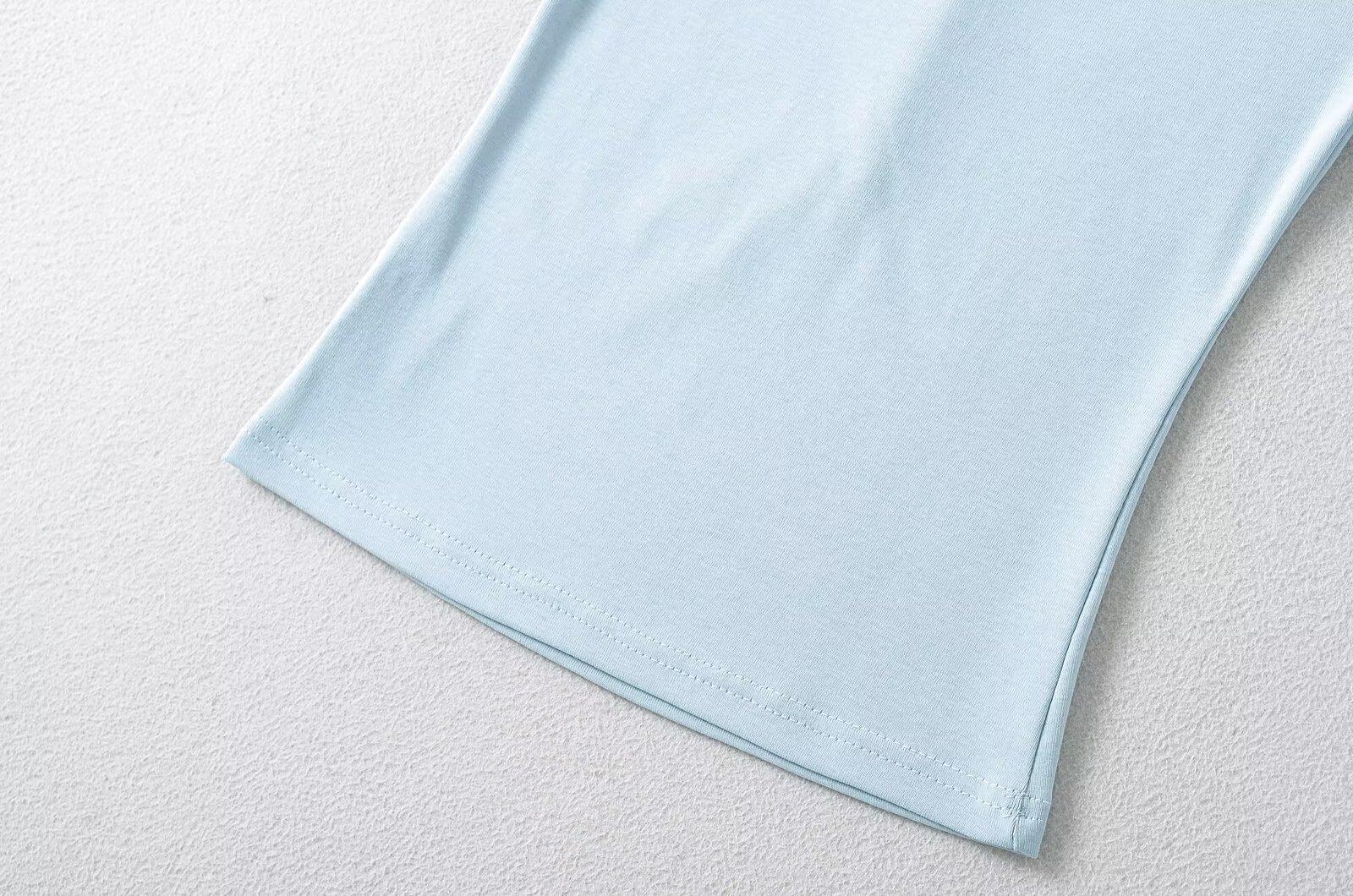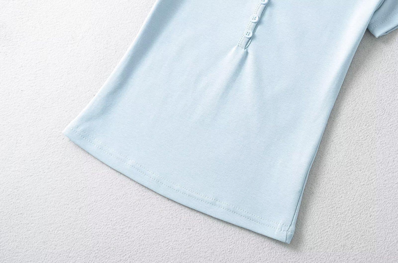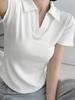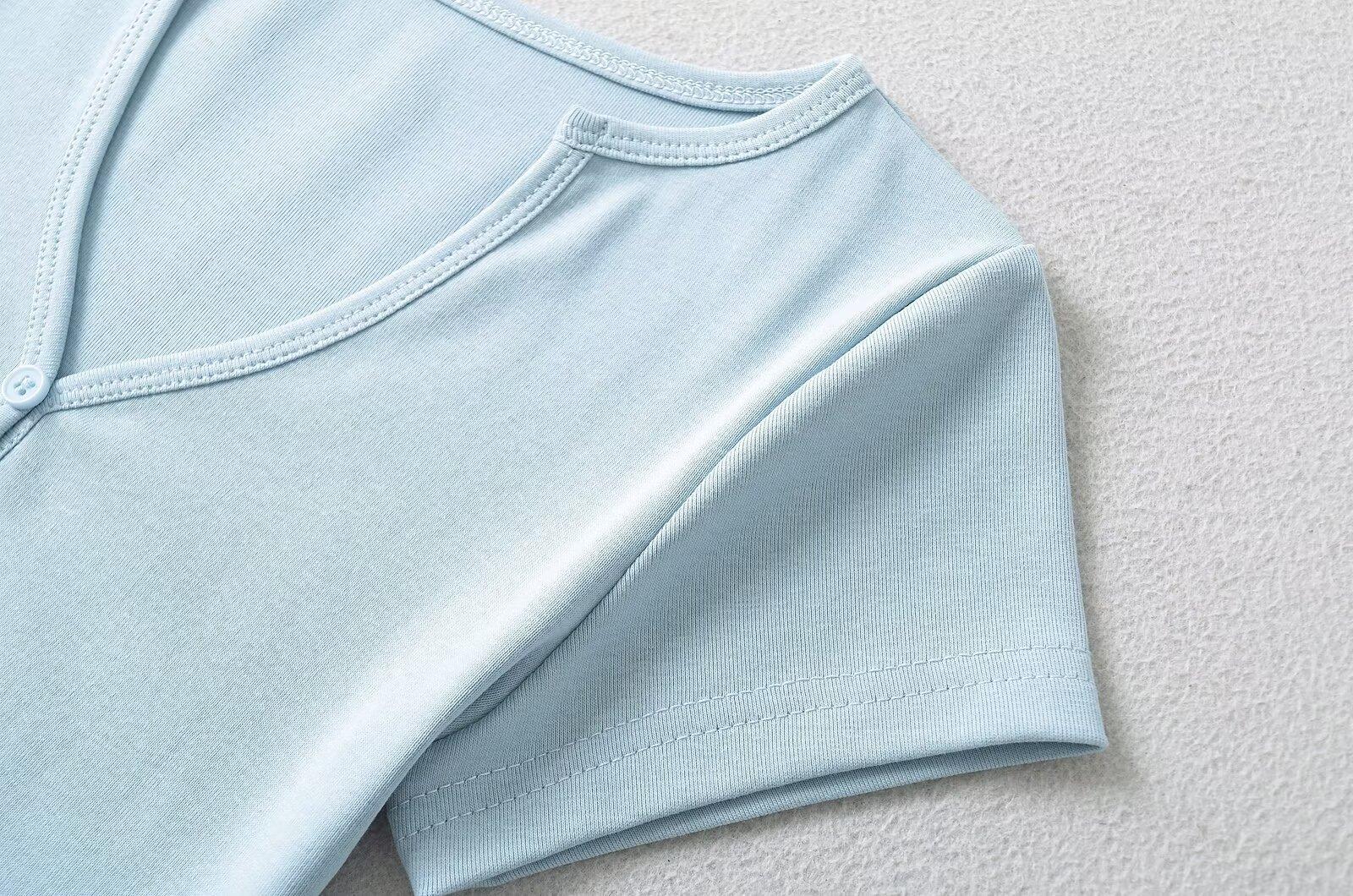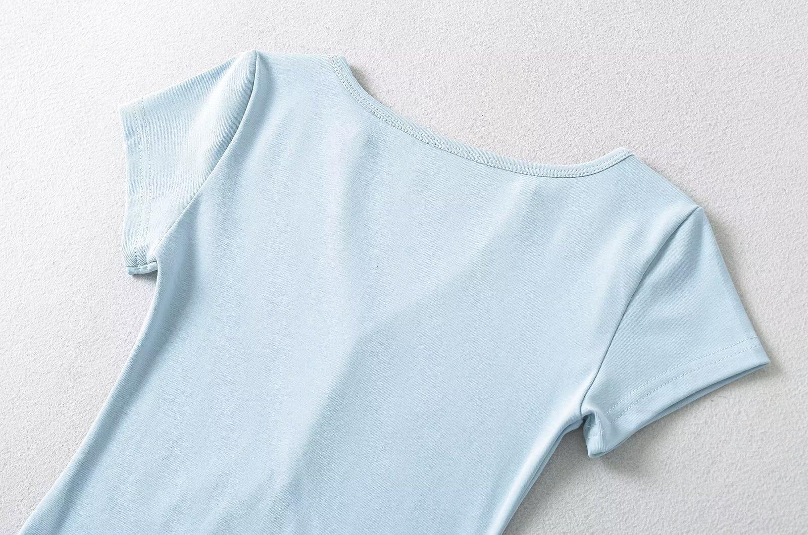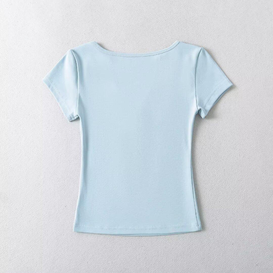 Camiseta de Manga Corta con Cuello en V para Chica Caliente Estilo Americano para Mujer Verano Sentido del Diseño Ajustada Adelgazante Color Sólido Top de Hombro