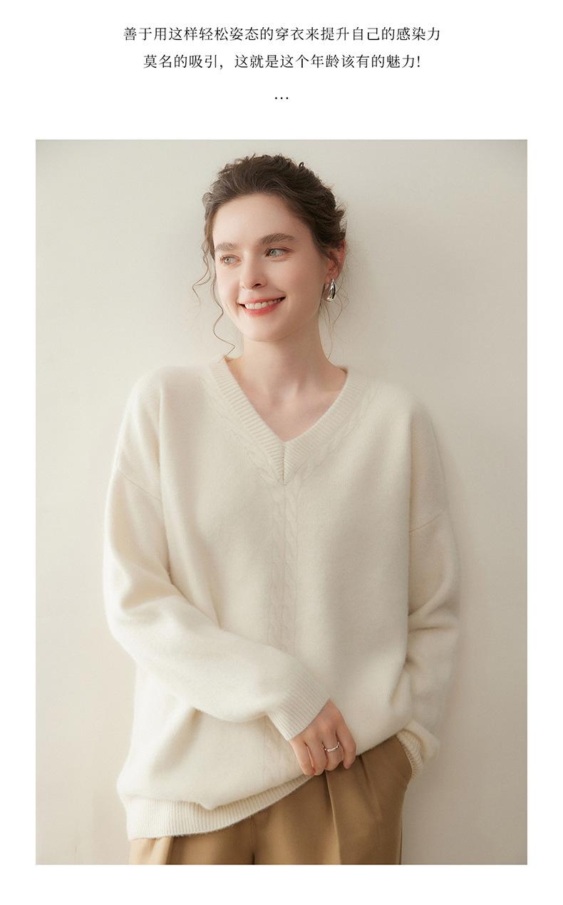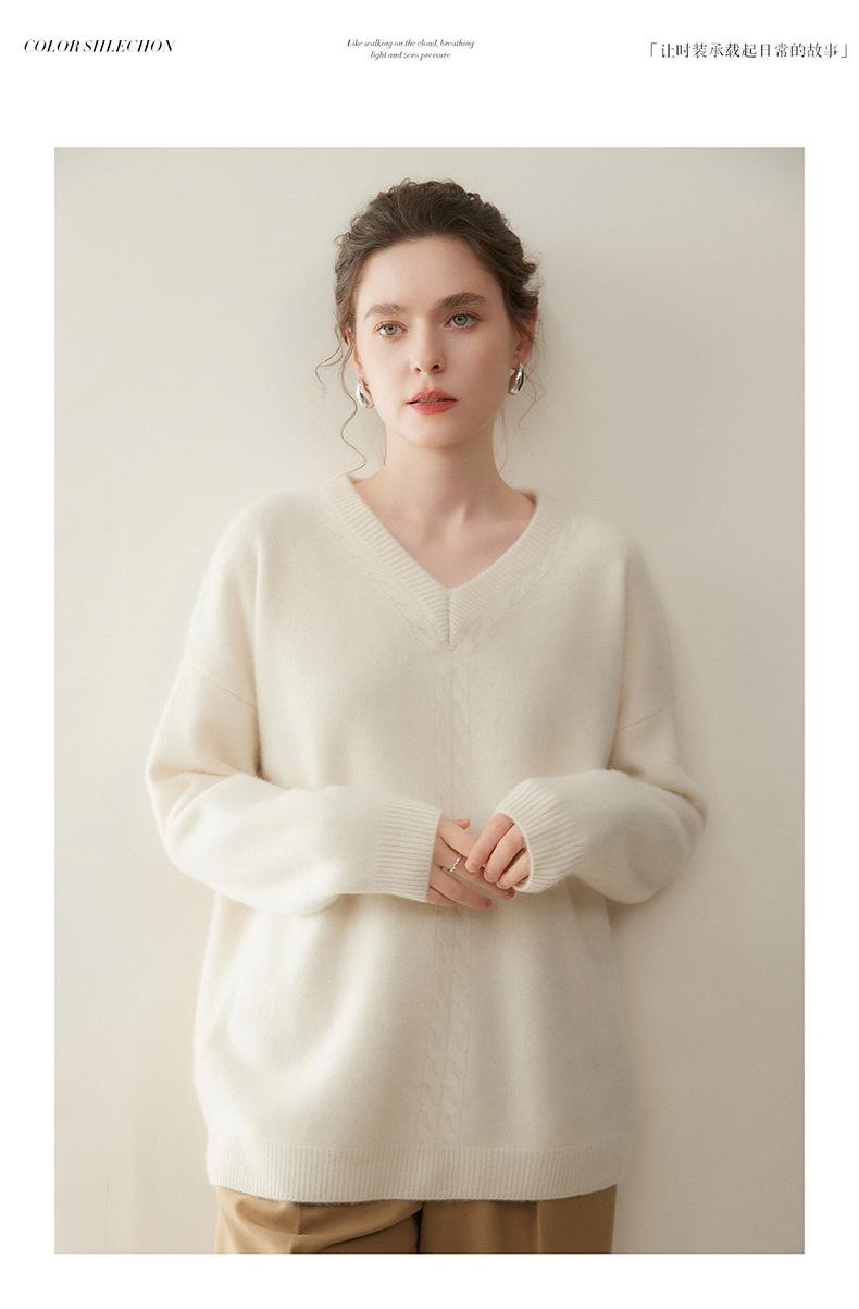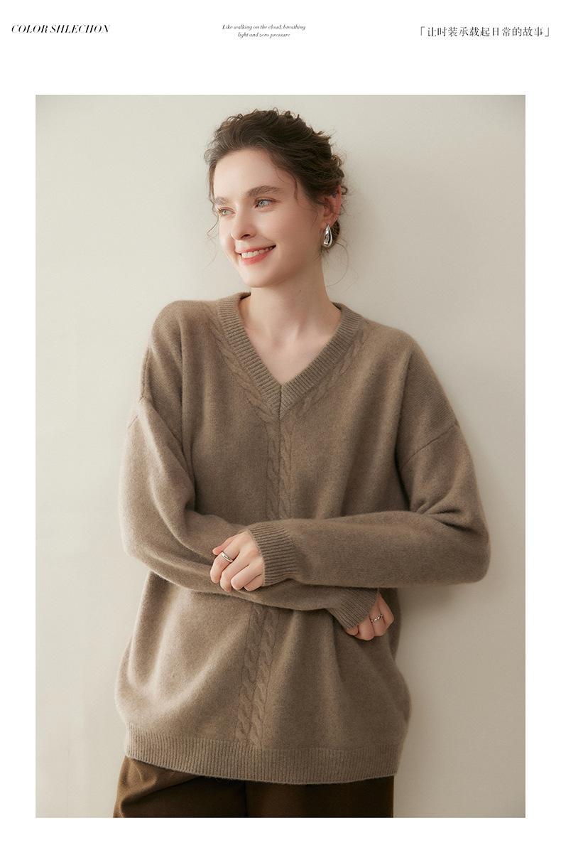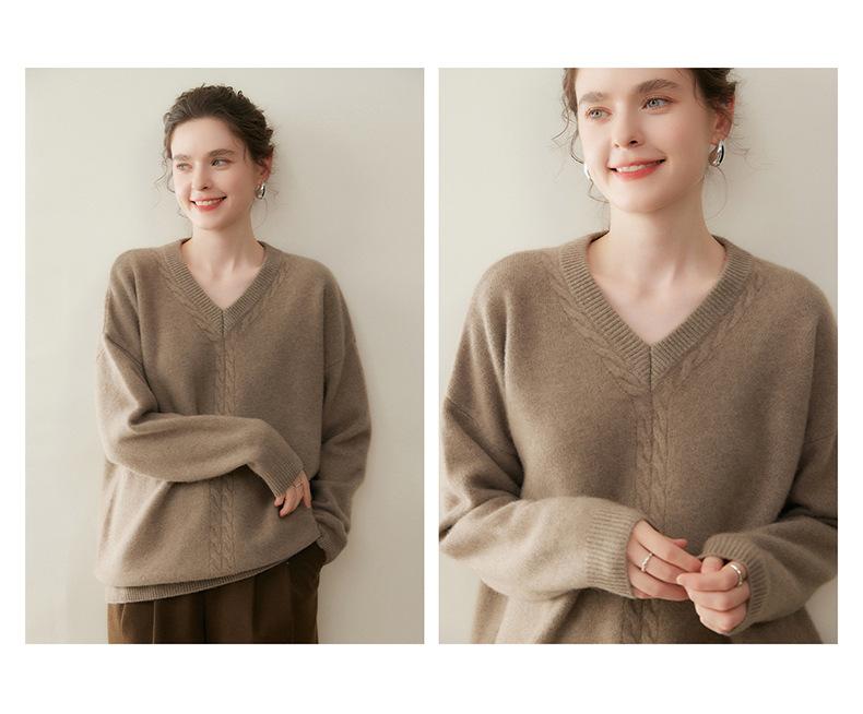 Estilo Coreano Otoño/Invierno Nuevo Color Sólido Cachemira Mujer Camiseta Tejida Base Hombro Caído Estilo Holgazán Suéter Jersey Capa Interior