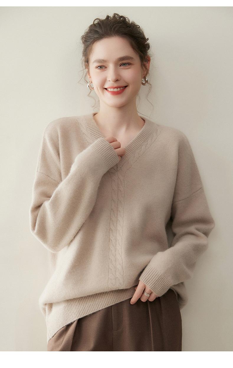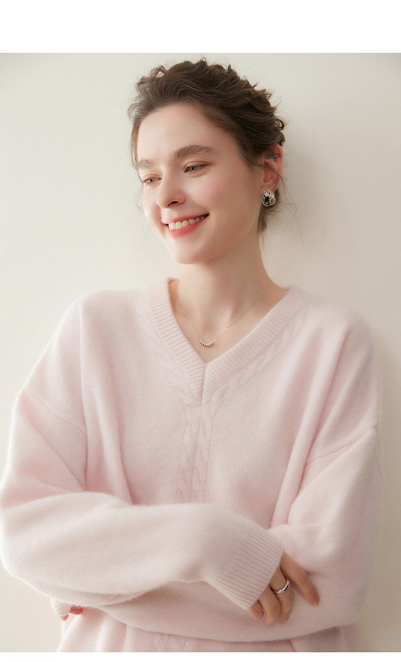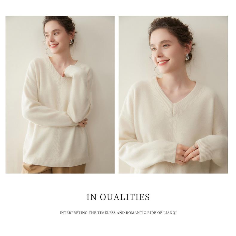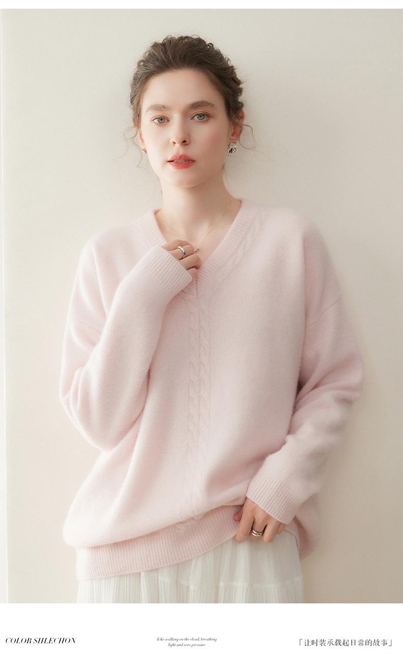Estilo Coreano Otoño/Invierno Nuevo Color Sólido Cachemira Mujer Camiseta Tejida Base Hombro Caído Estilo Holgazán Suéter Jersey Capa Interior