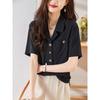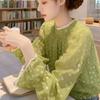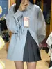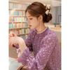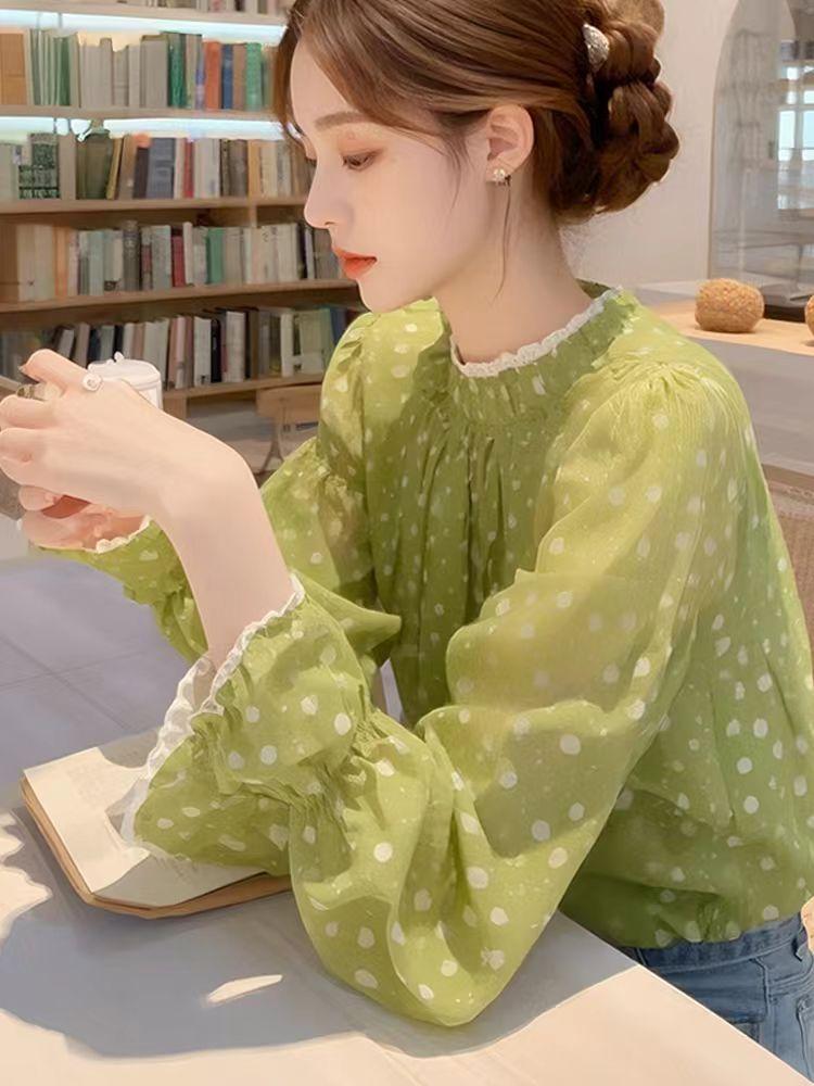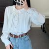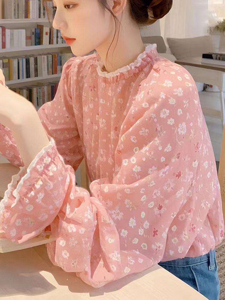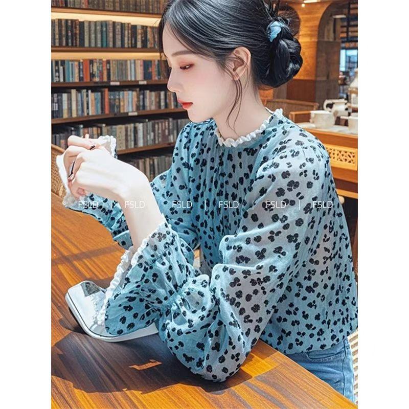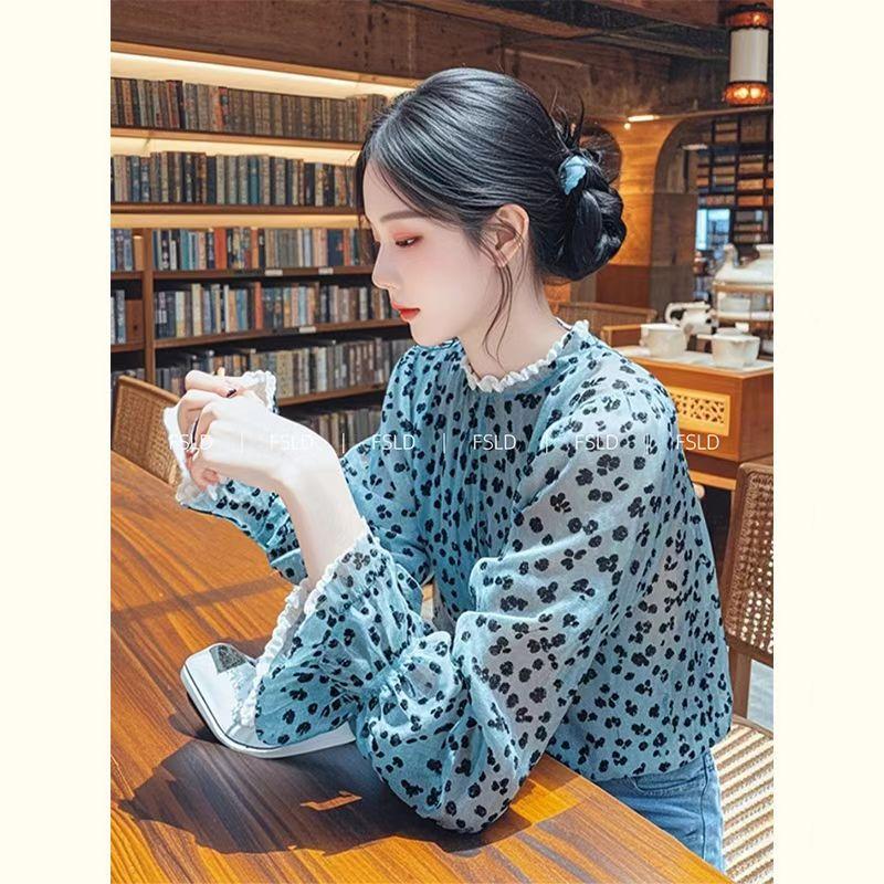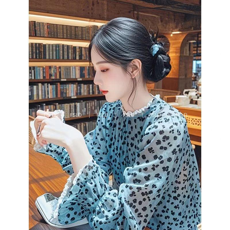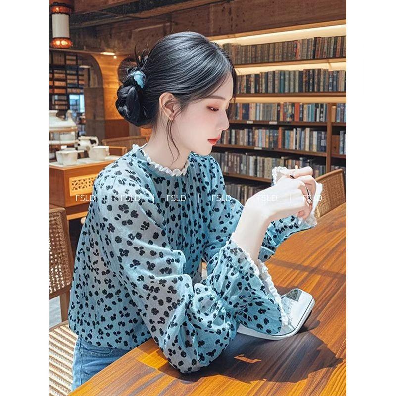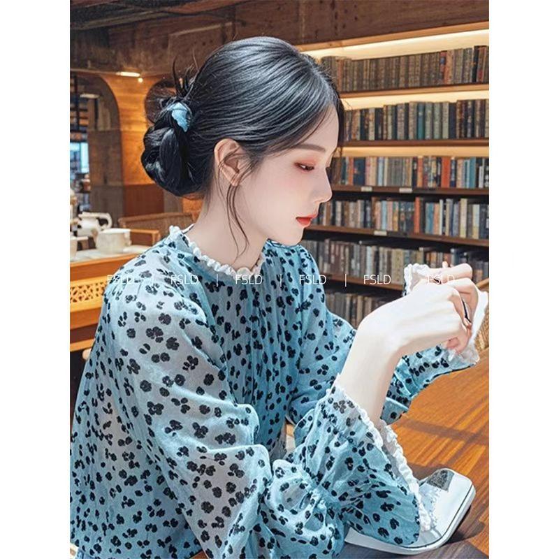 Blusa Estilo Francés Diseño Pequeño Top Floral Azul Manga Acampanada Camisa Mujer 2025 Nueva Primavera