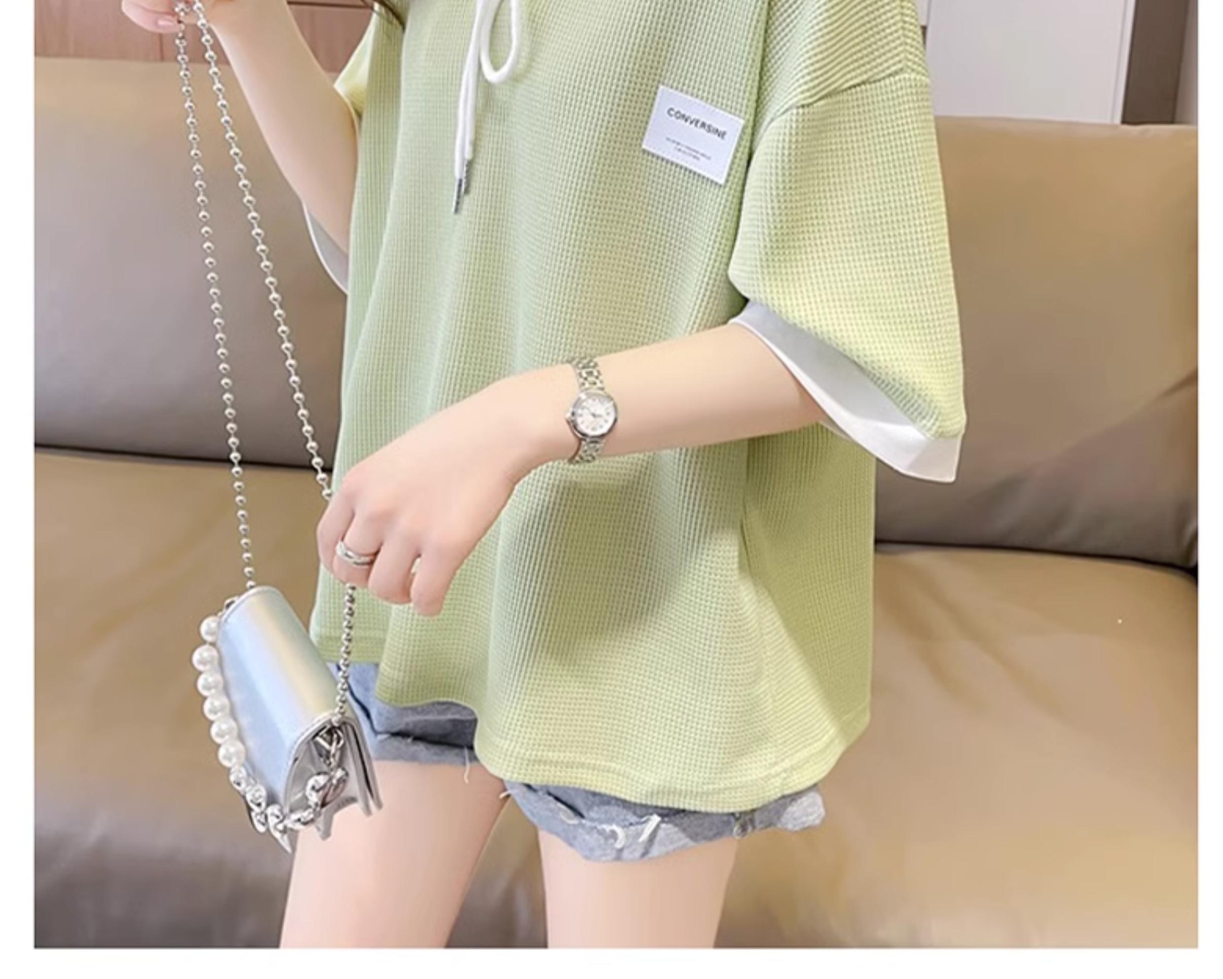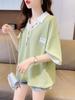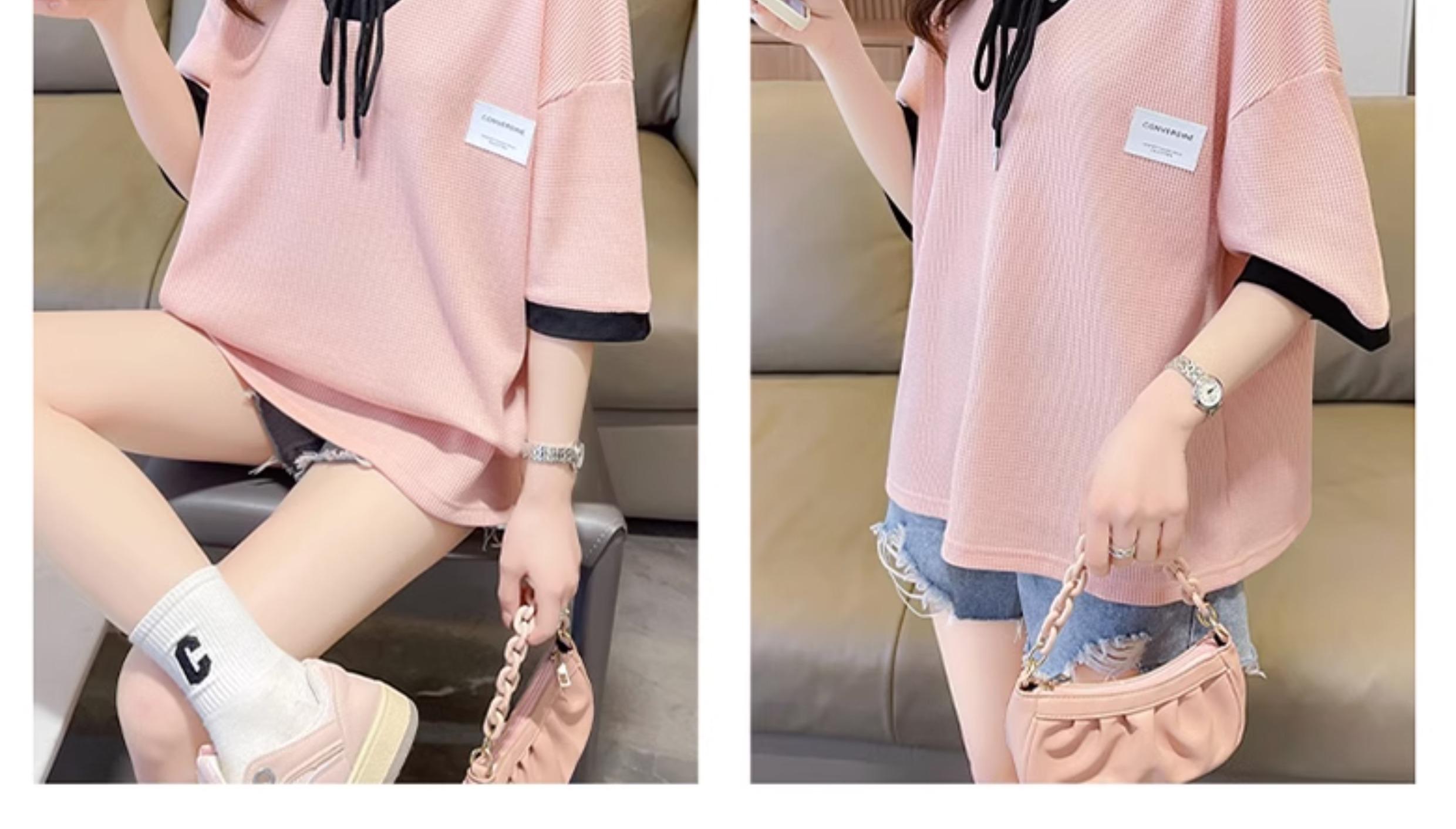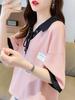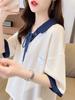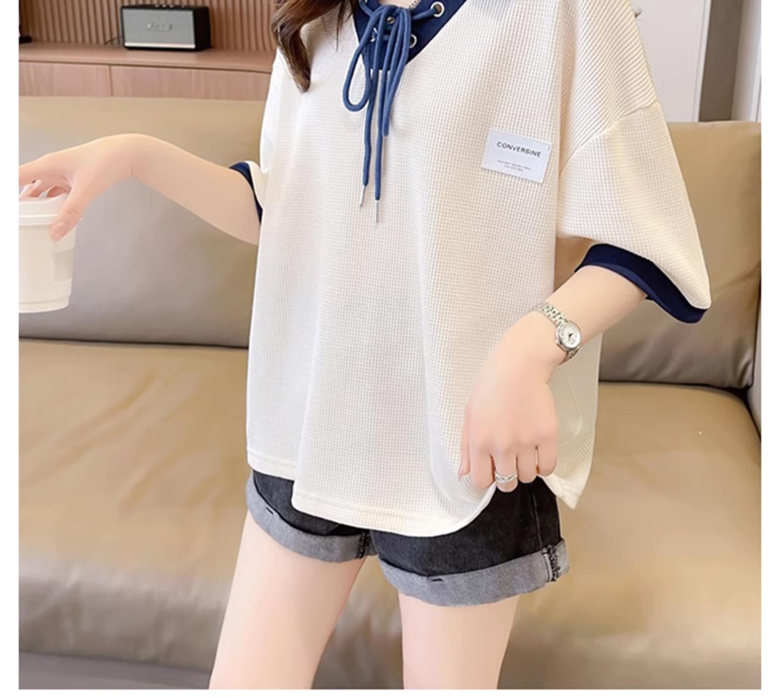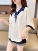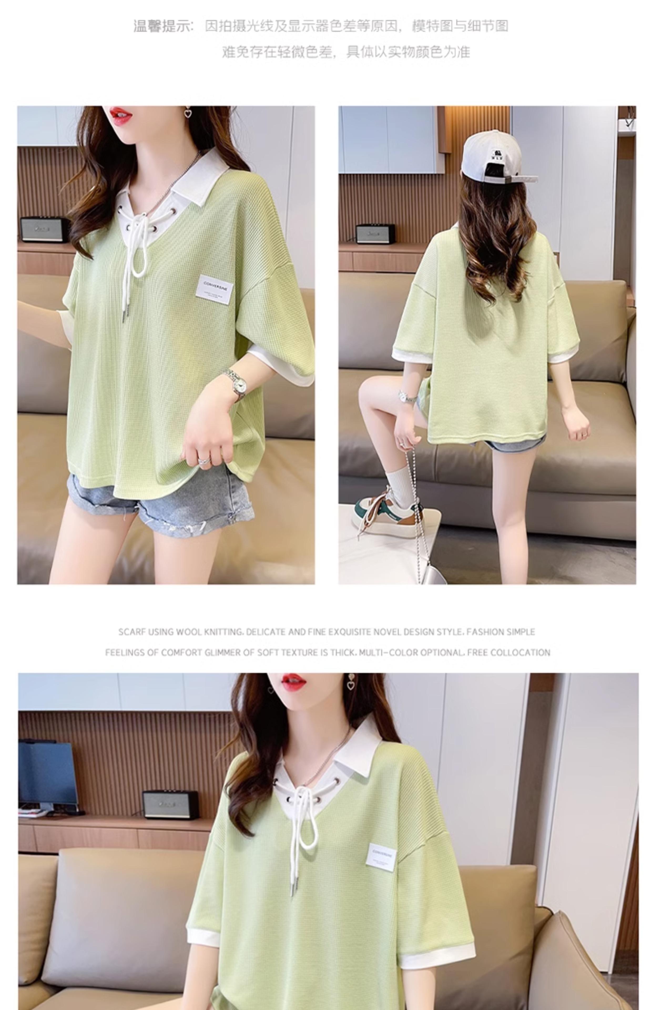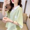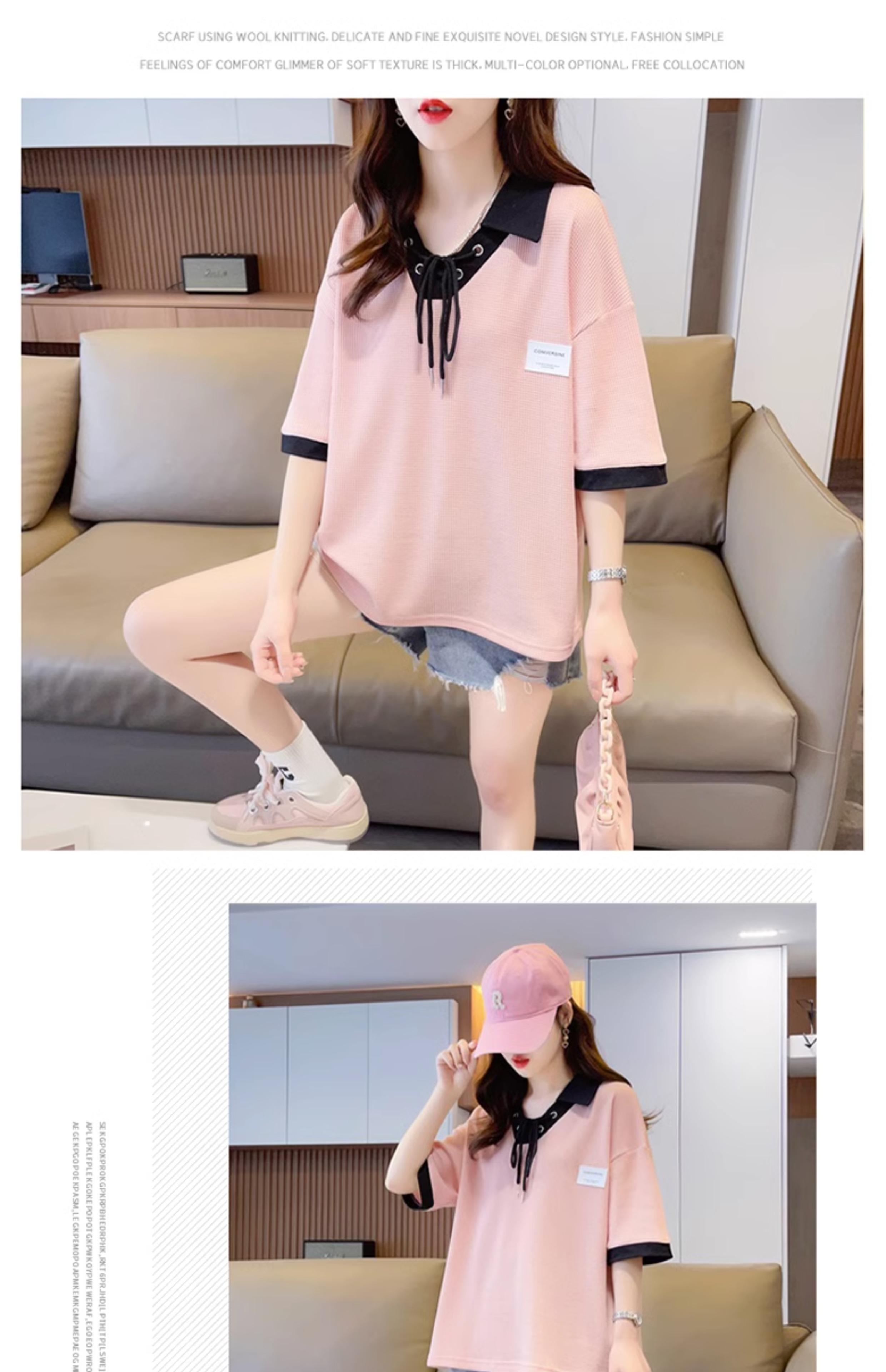 Playera de Manga Corta con Cuello Polo y Empalme para Mujer Verano 2025 Nuevo Top de Diseño Pequeño y Elegante de Estilo Coreano Holgado