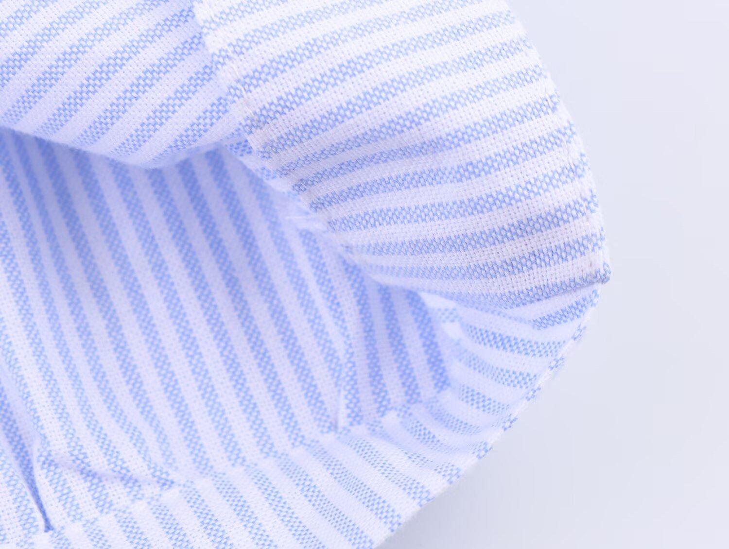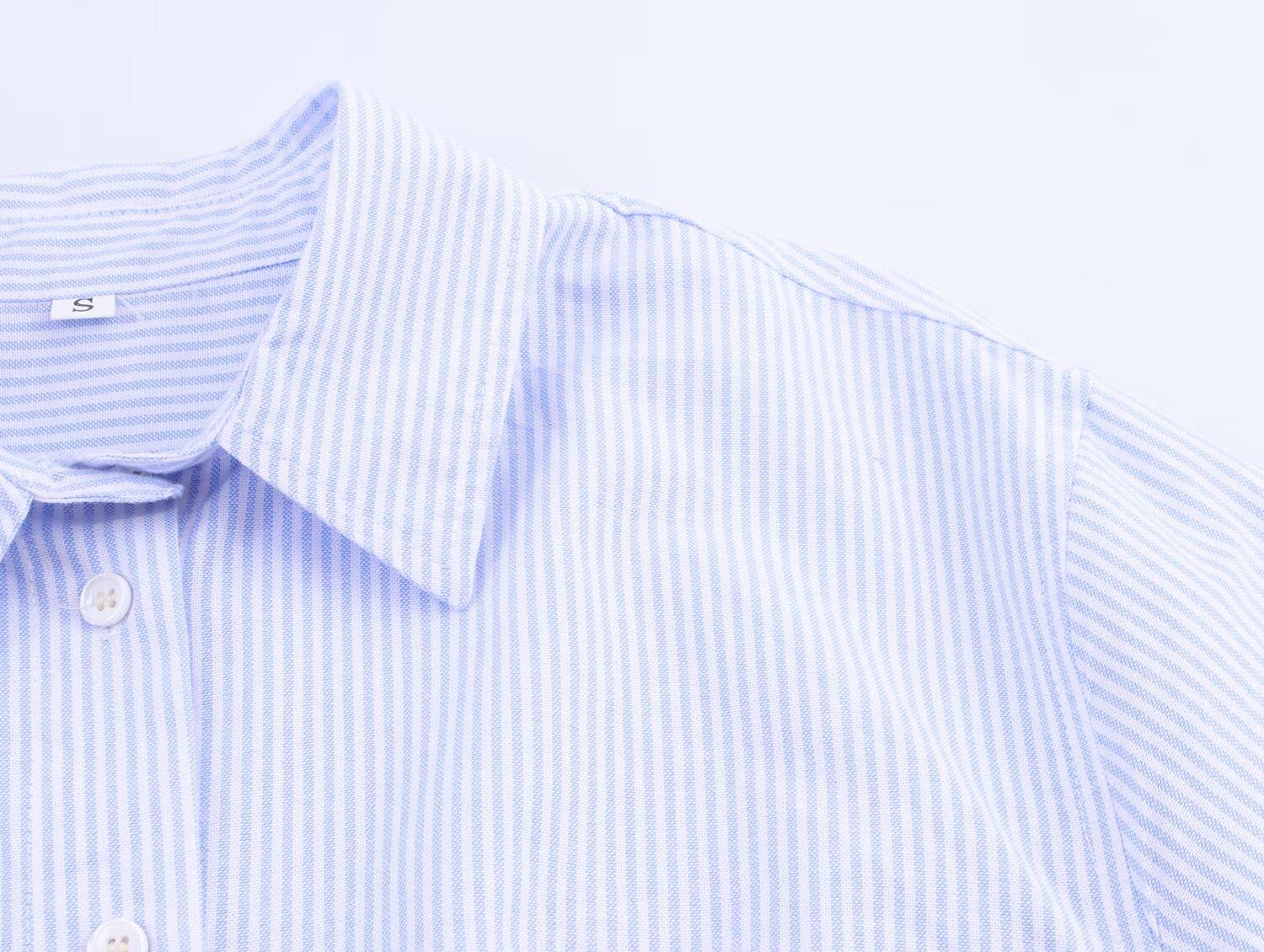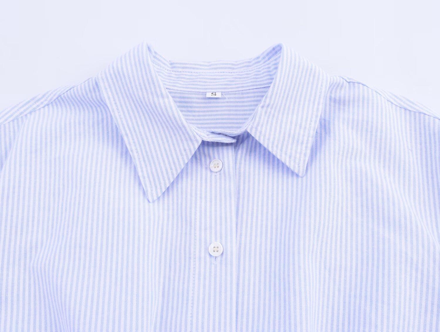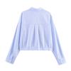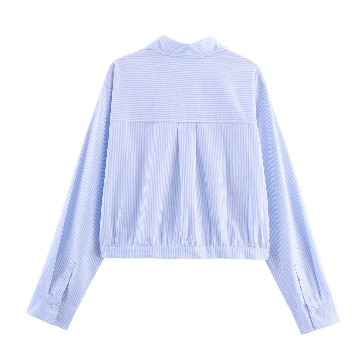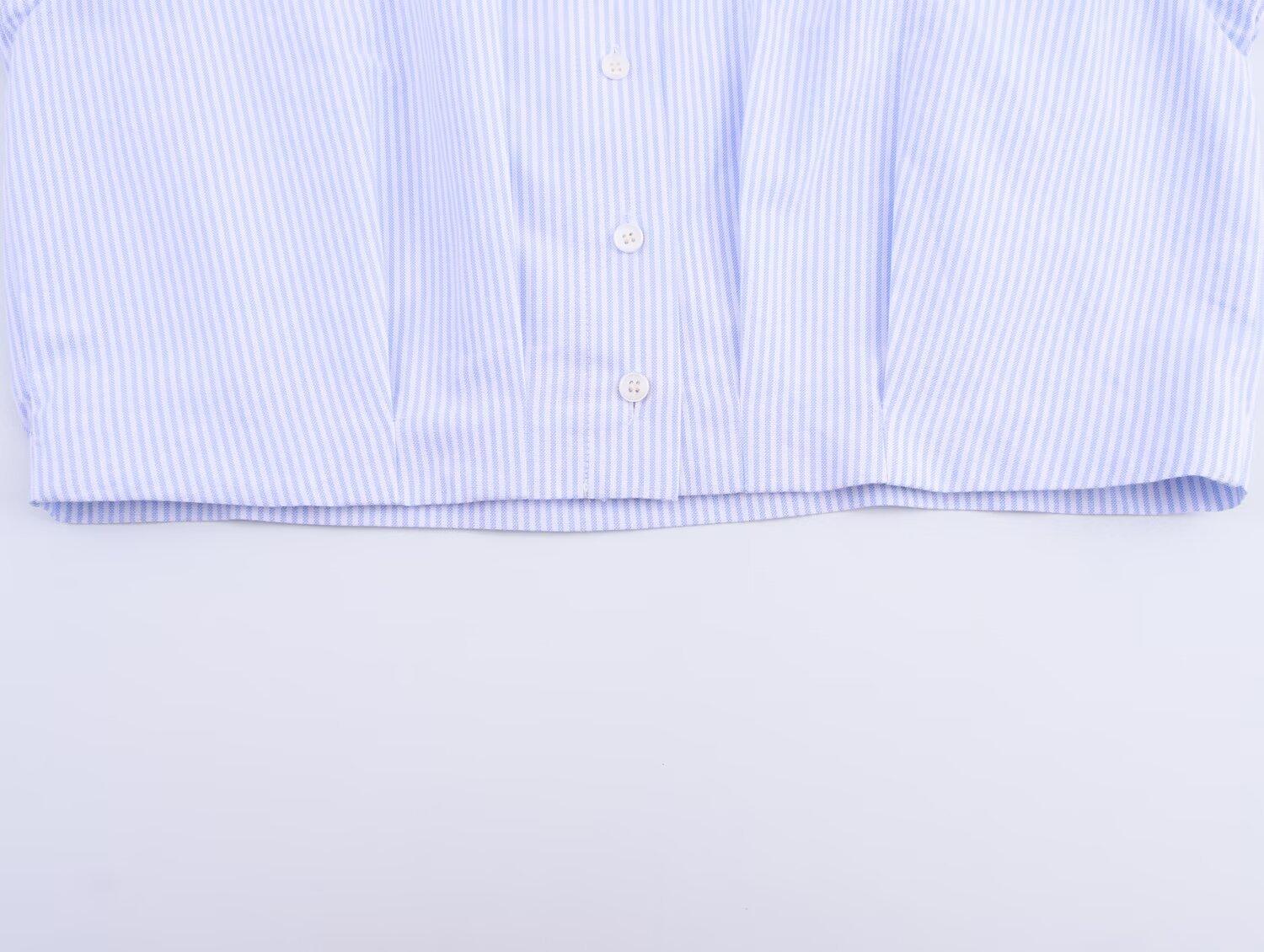 Ropa de mujer de comercio exterior transfronterizo 2025 otoño estilo europeo y americano plisado en la cintura camisa corta a rayas top para mujer B482675F