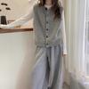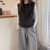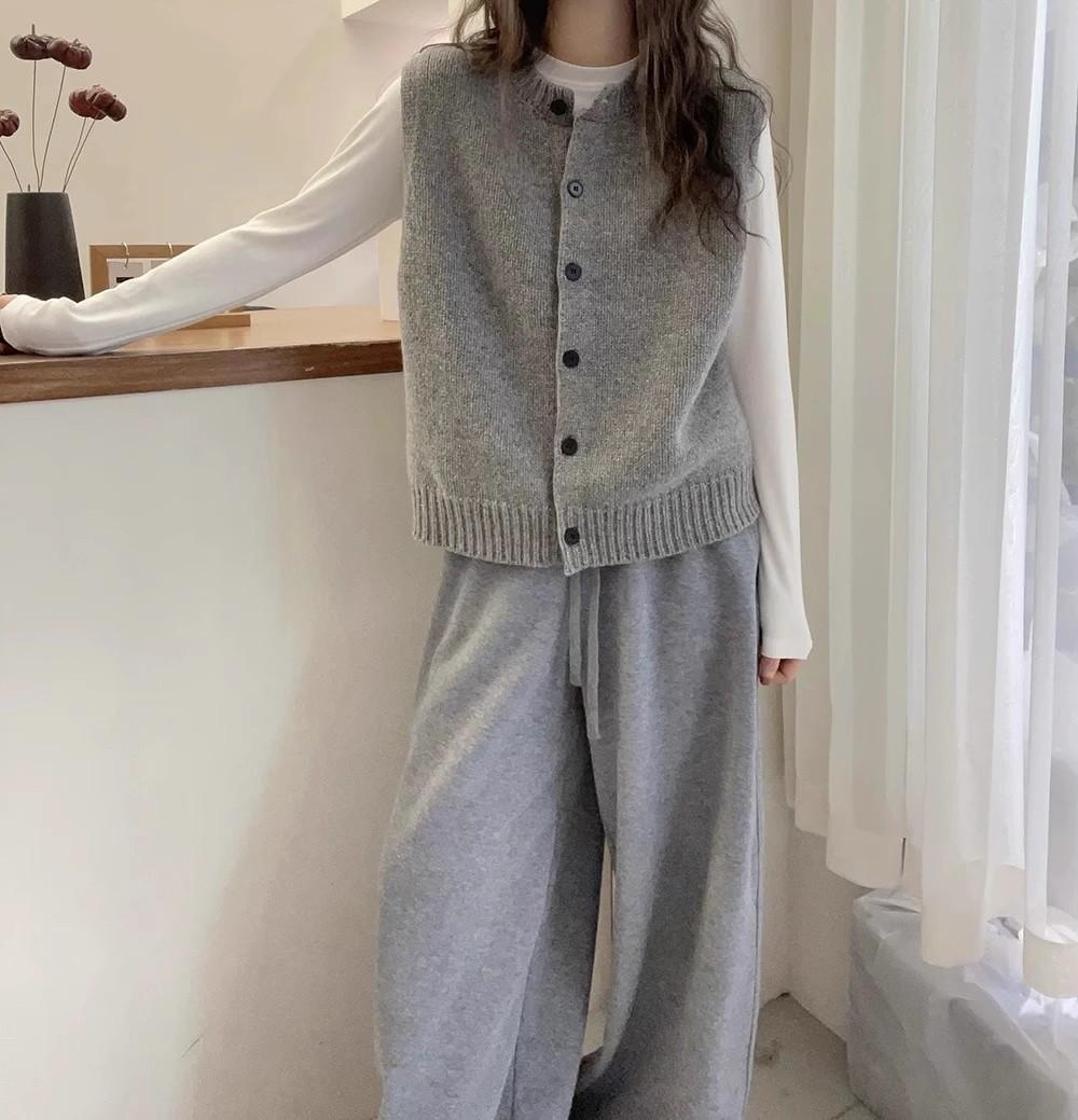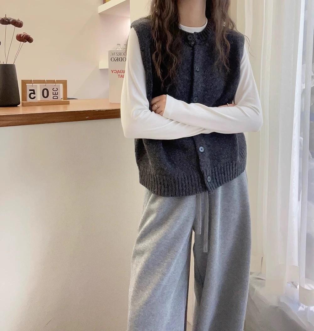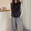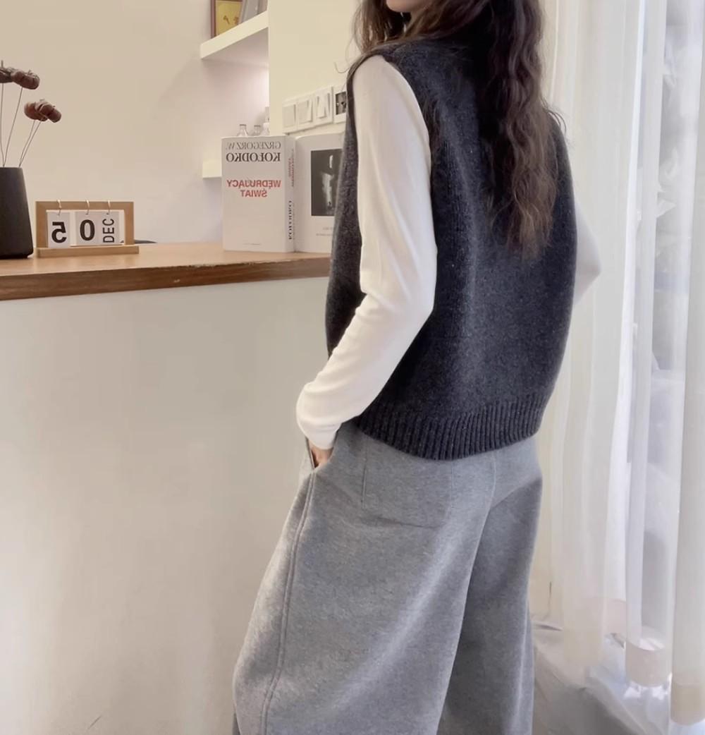 Chaleco tejido de lana 100% pura Cárdigan sin mangas Suéter de cuello redondo para mujer Chaleco de hombro Clásico Color sólido Sencillo Tank top corto