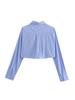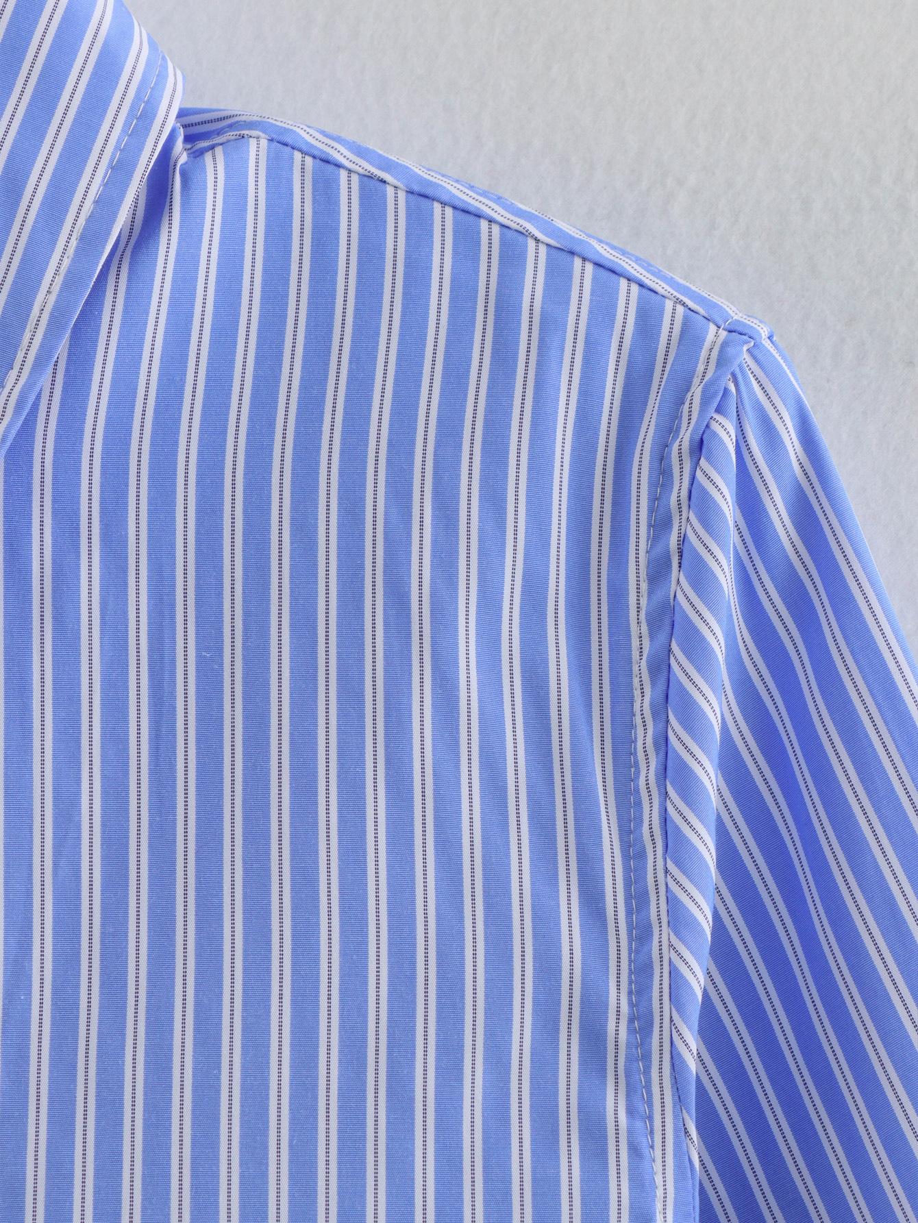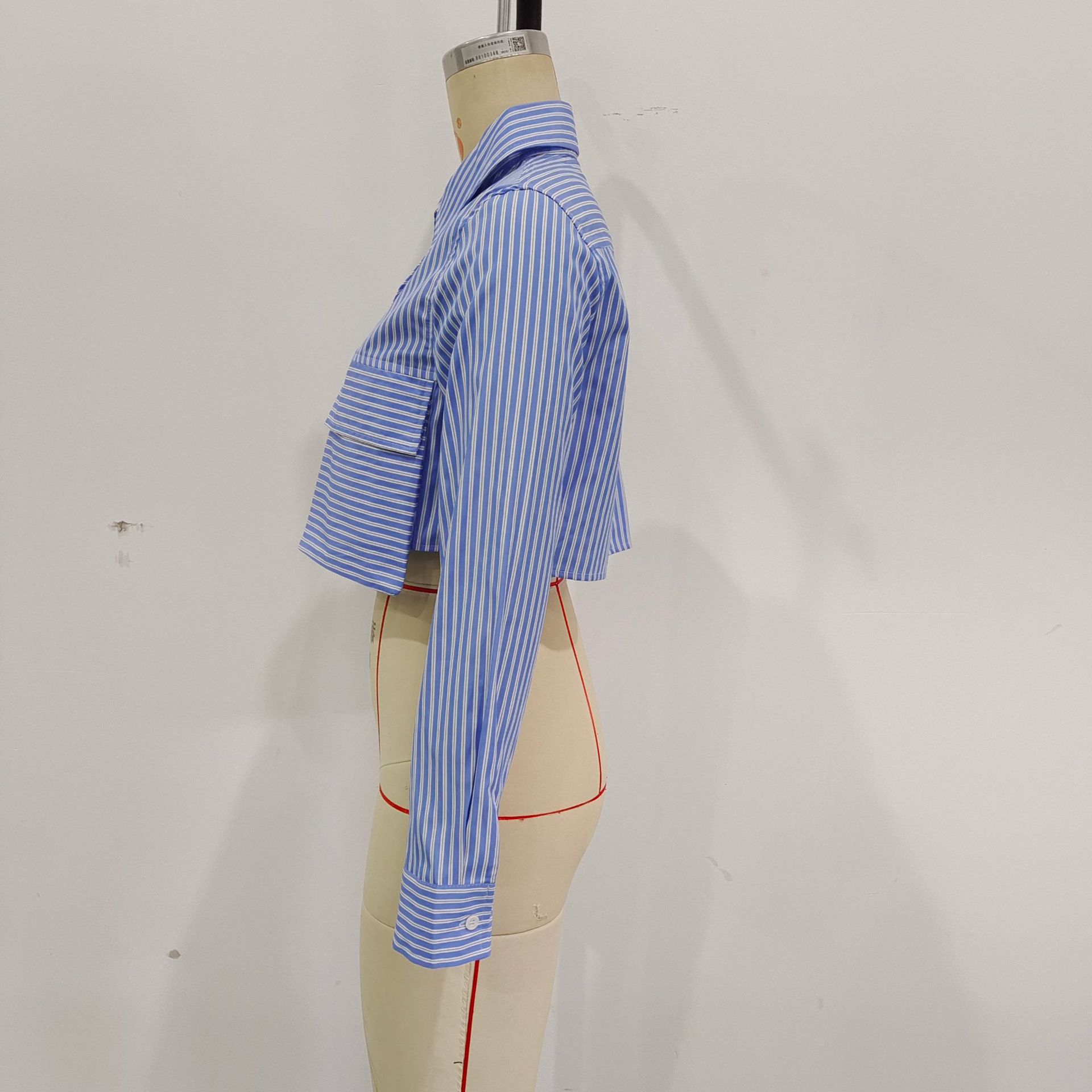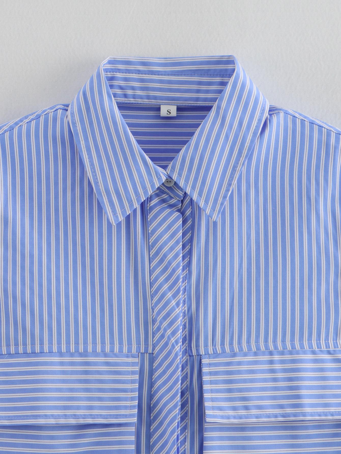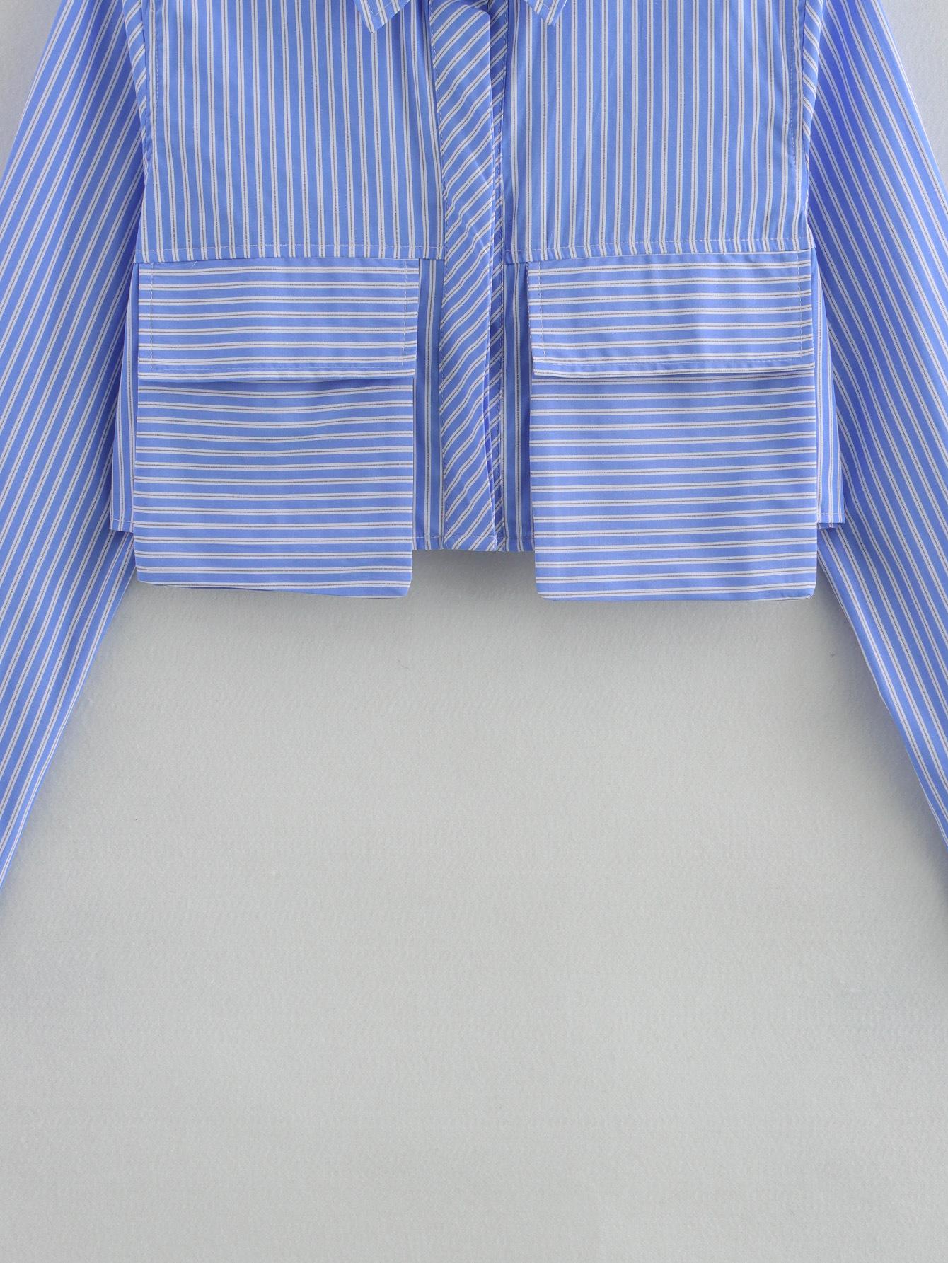 Nuevos productos transfronterizos 2025 Estilo europeo y americano para mujer comercio exterior al por mayor ZRA en stock decoración de bolsillo camisa azul a rayas