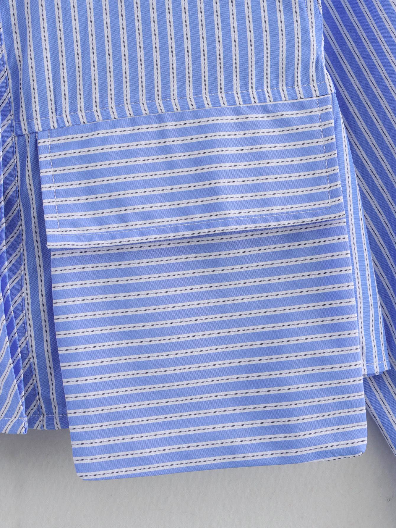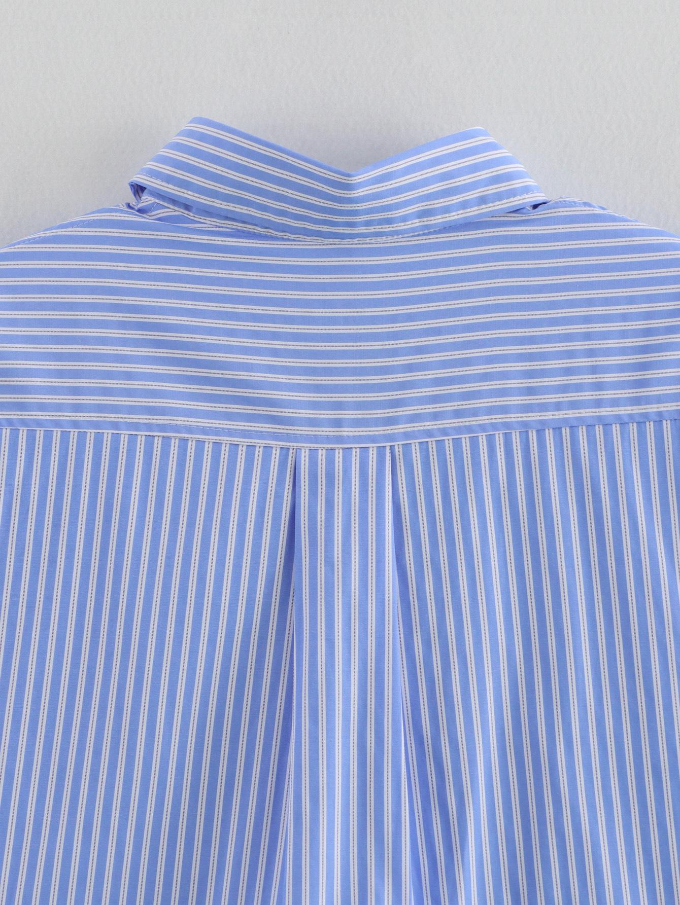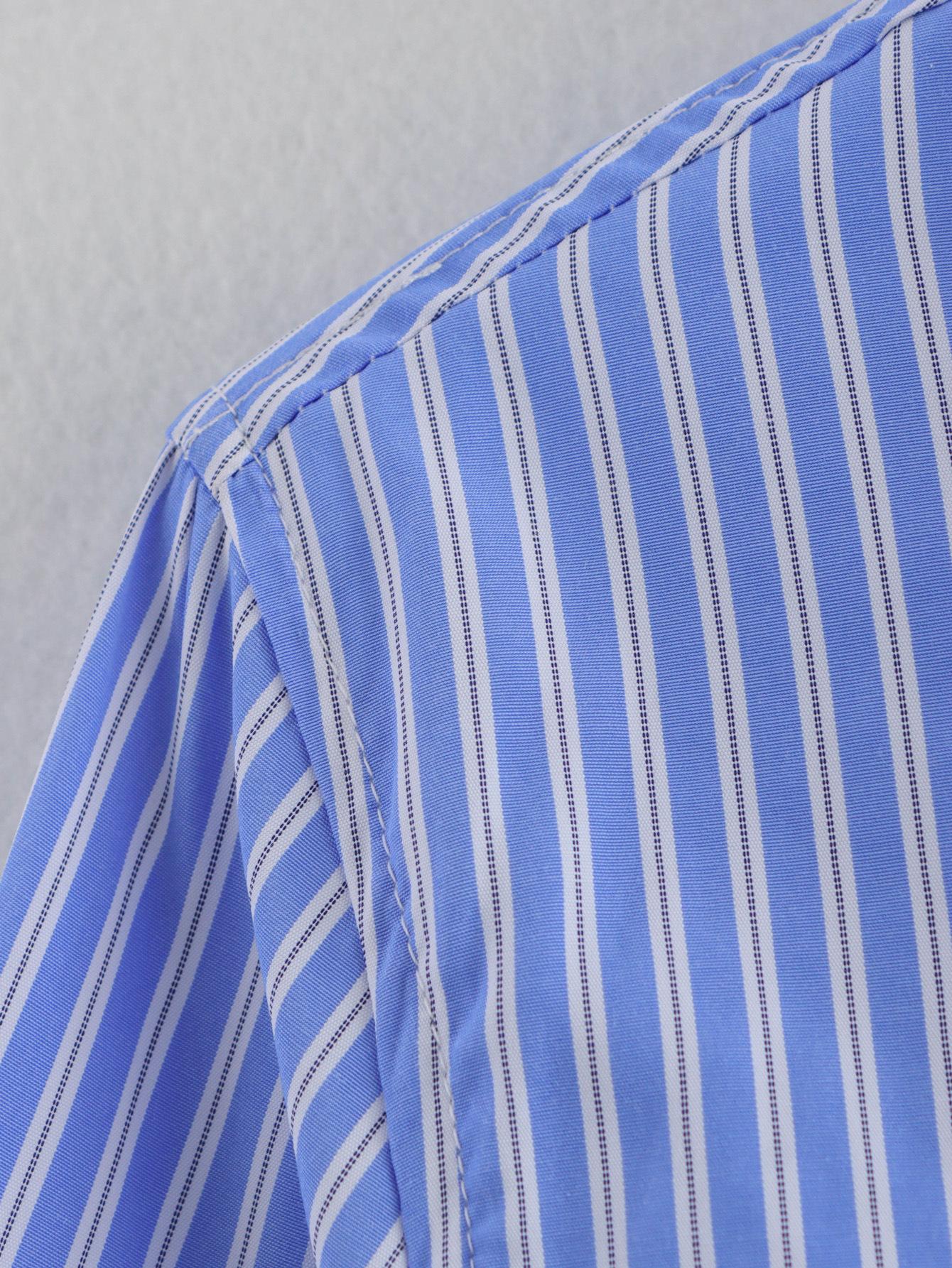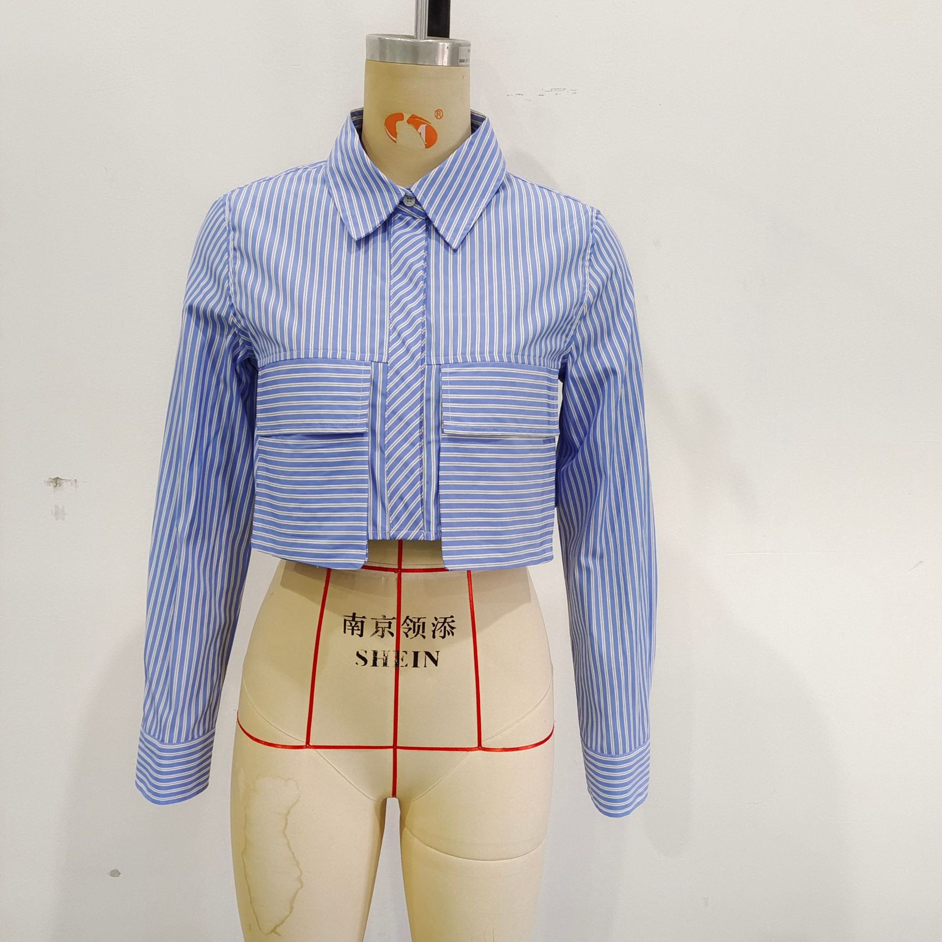 Nuevos productos transfronterizos 2025 Estilo europeo y americano para mujer comercio exterior al por mayor ZRA en stock decoración de bolsillo camisa azul a rayas