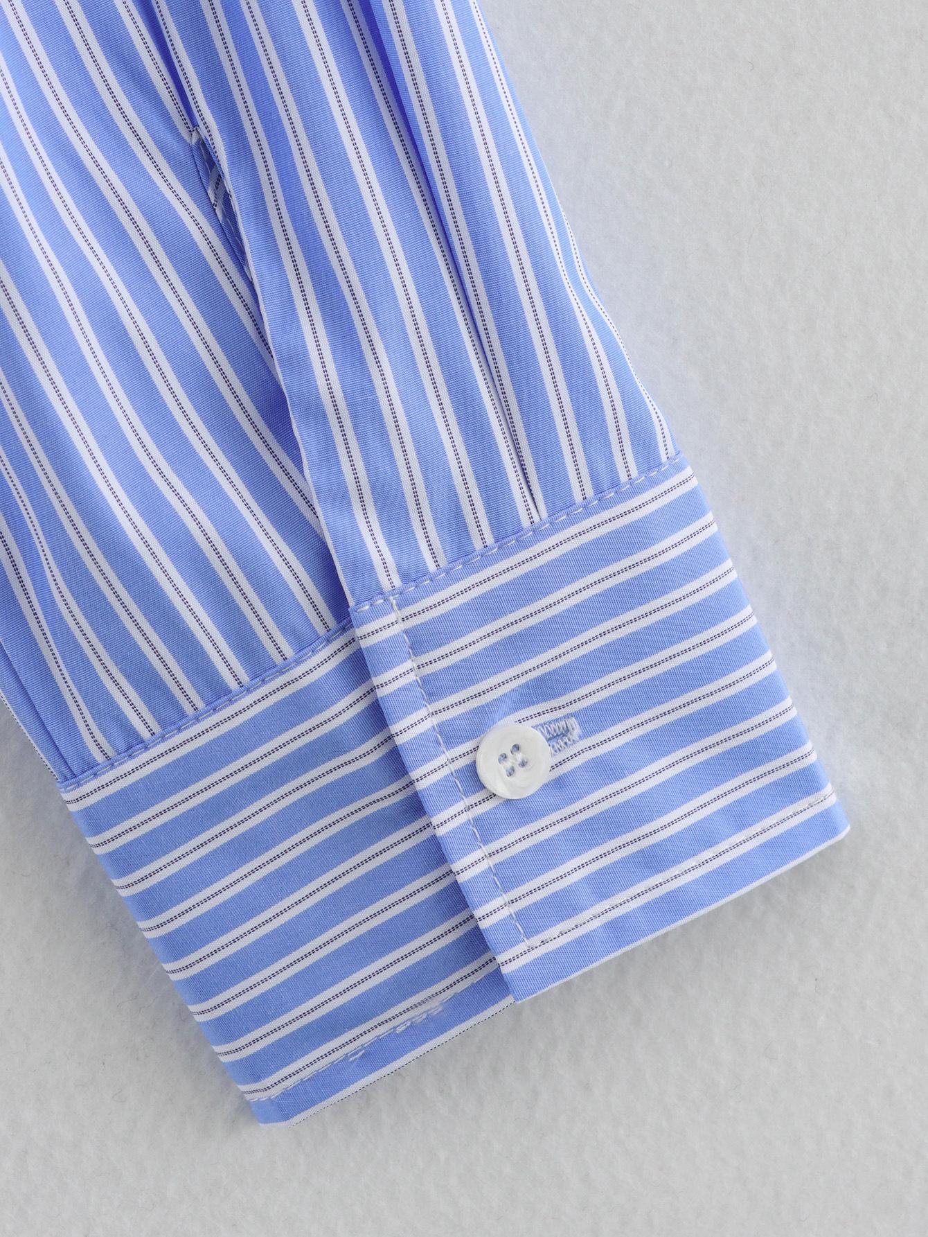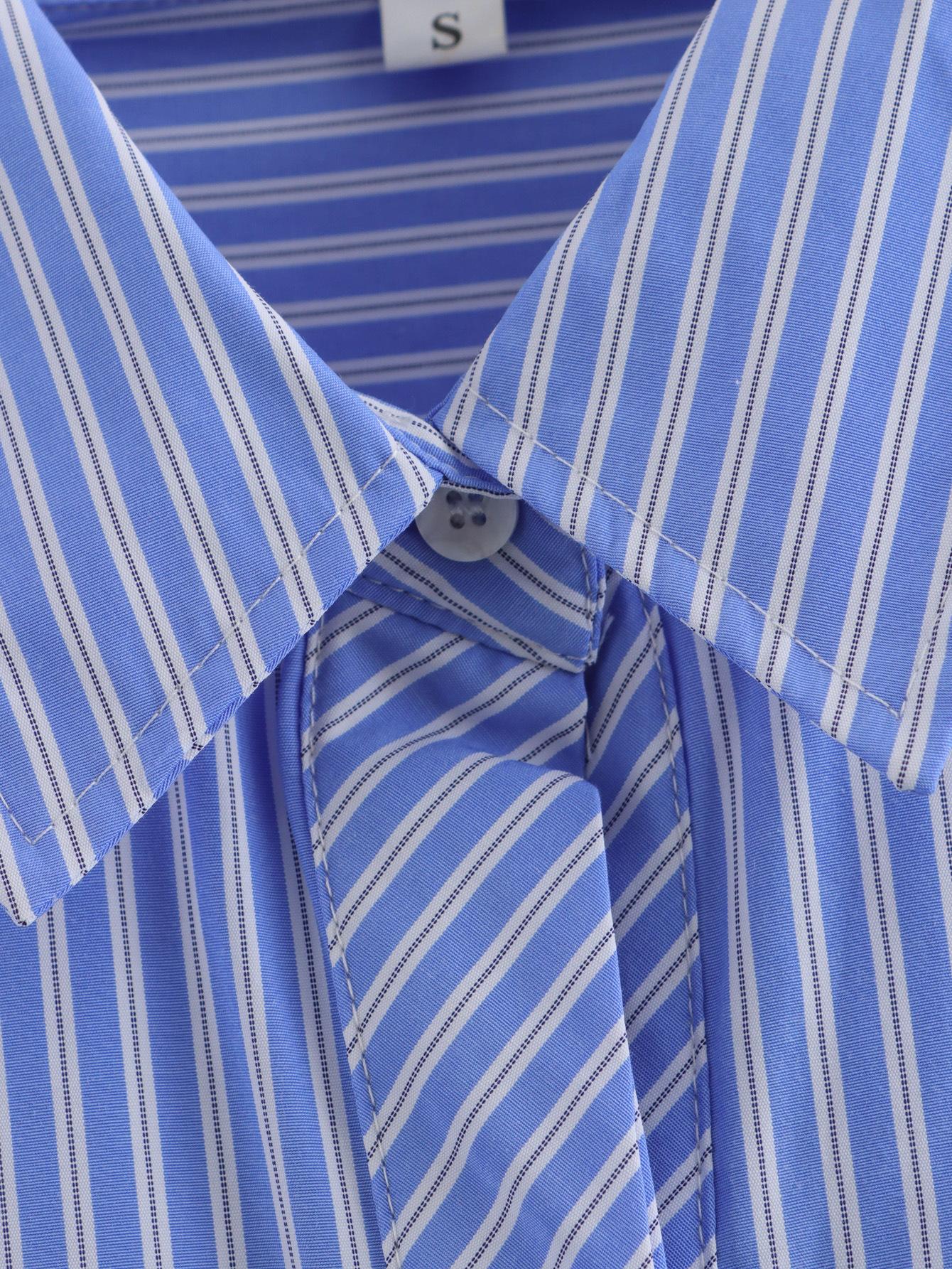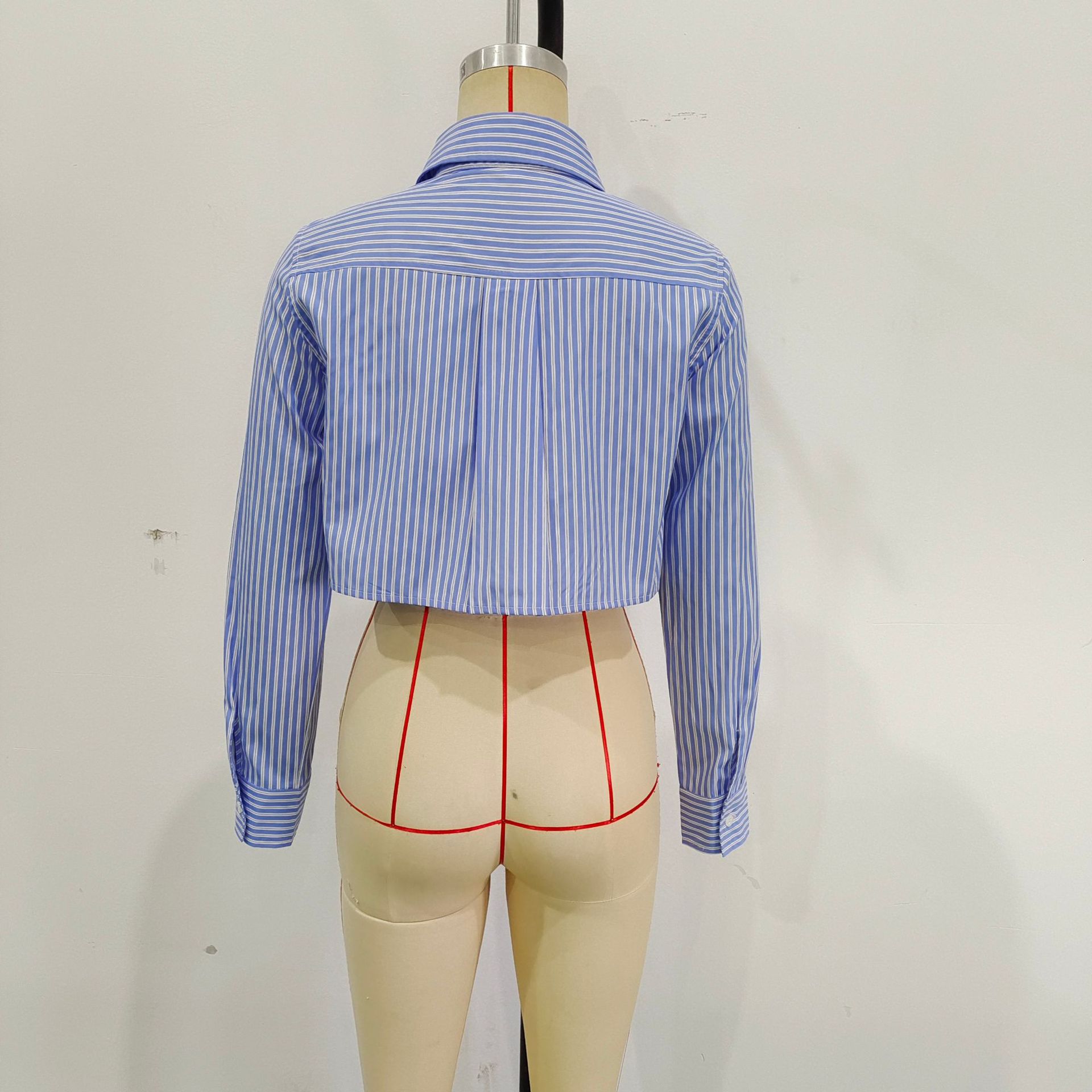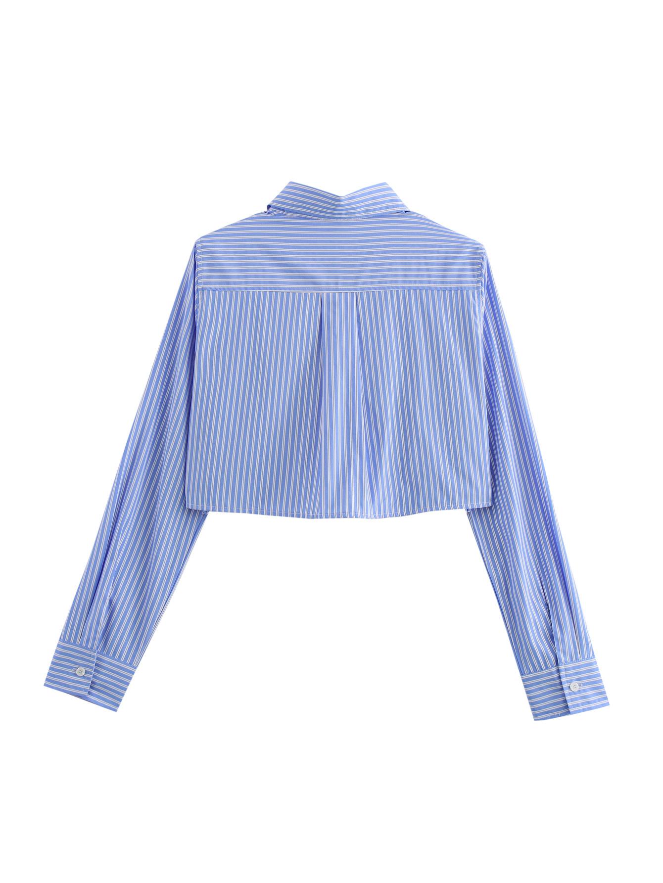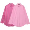 Nuevos productos transfronterizos 2025 Estilo europeo y americano para mujer comercio exterior al por mayor ZRA en stock decoración de bolsillo camisa azul a rayas