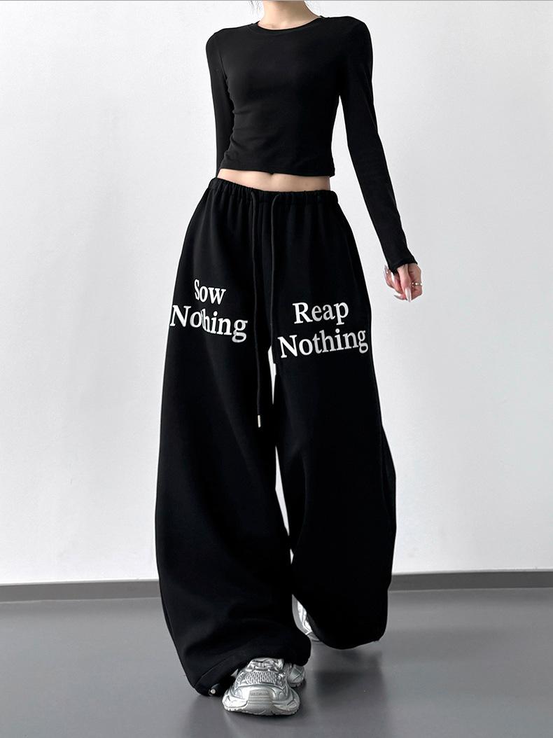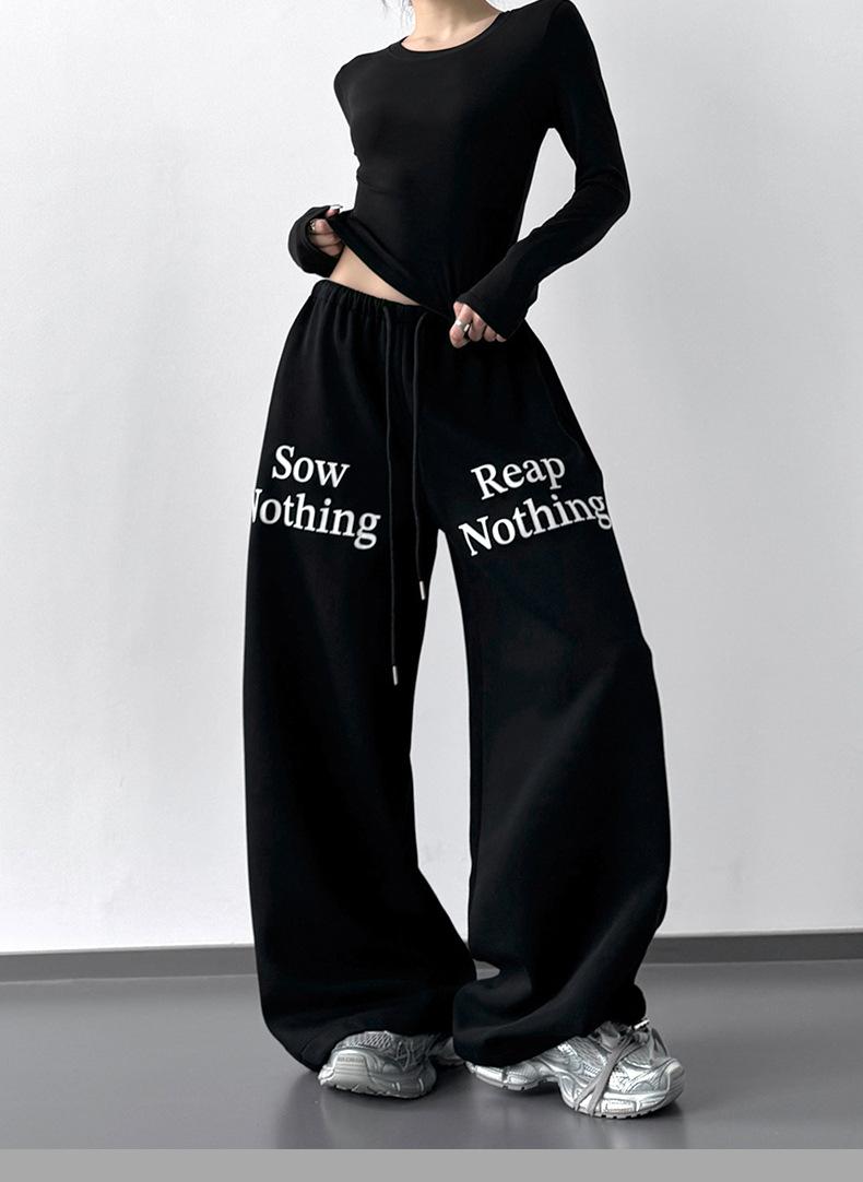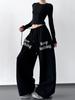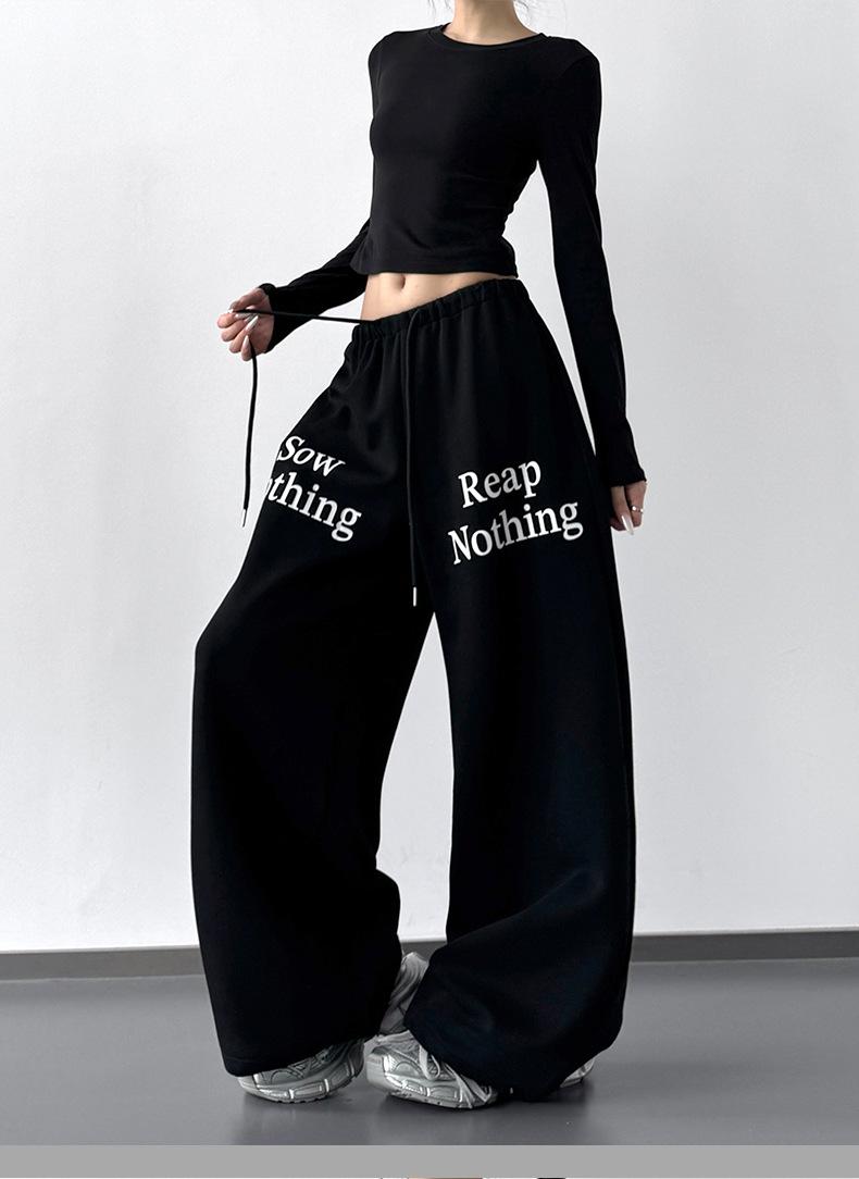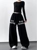Pantalones Casuales Bordados Negros Mujer 2025 Otoño Nuevo Sueltos Holgados Altos Adelgazantes Versátiles Pierna Ancha Pantalones Casuales