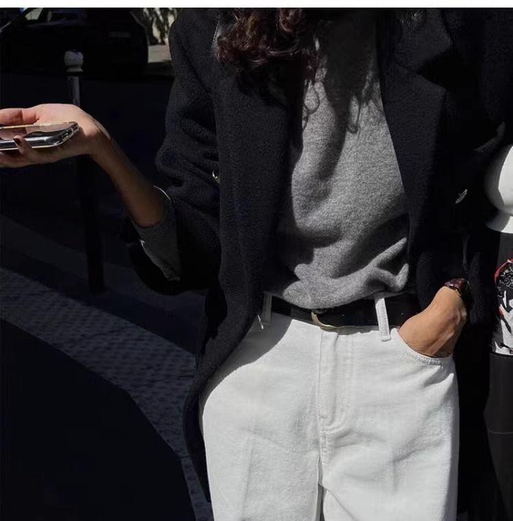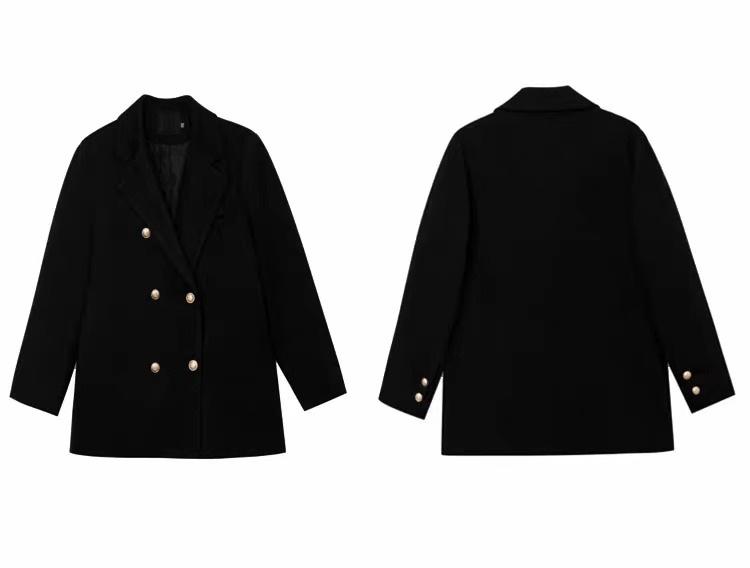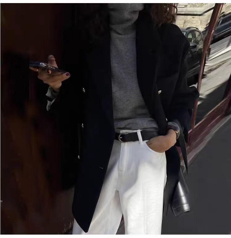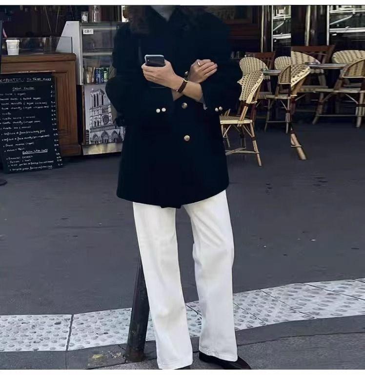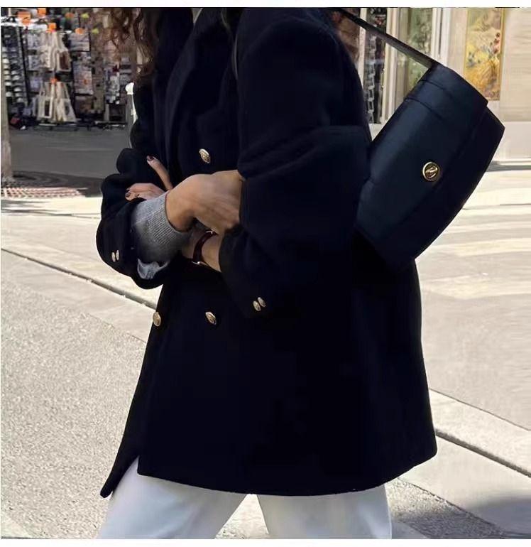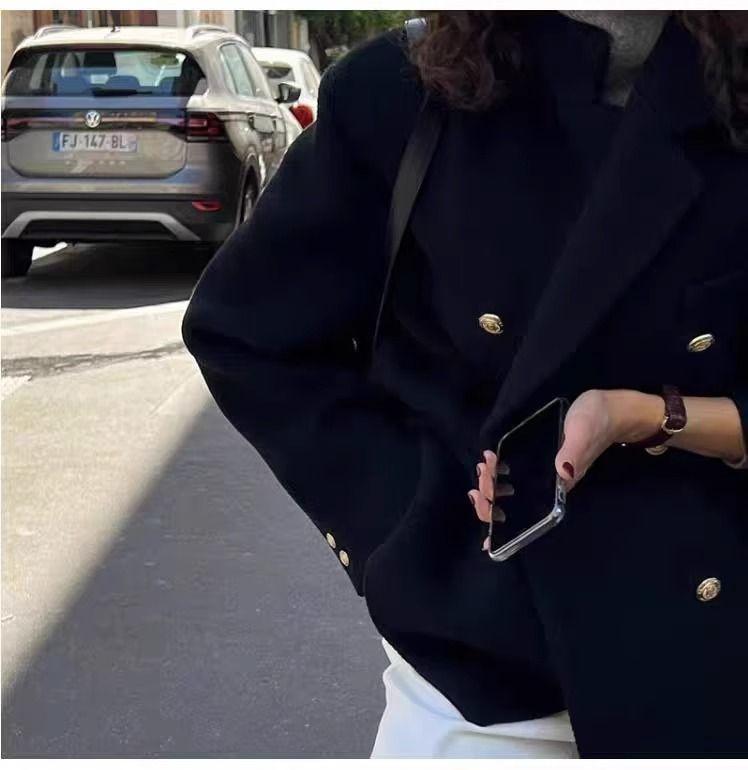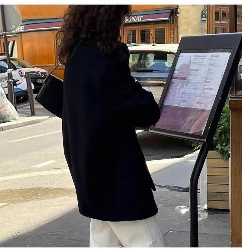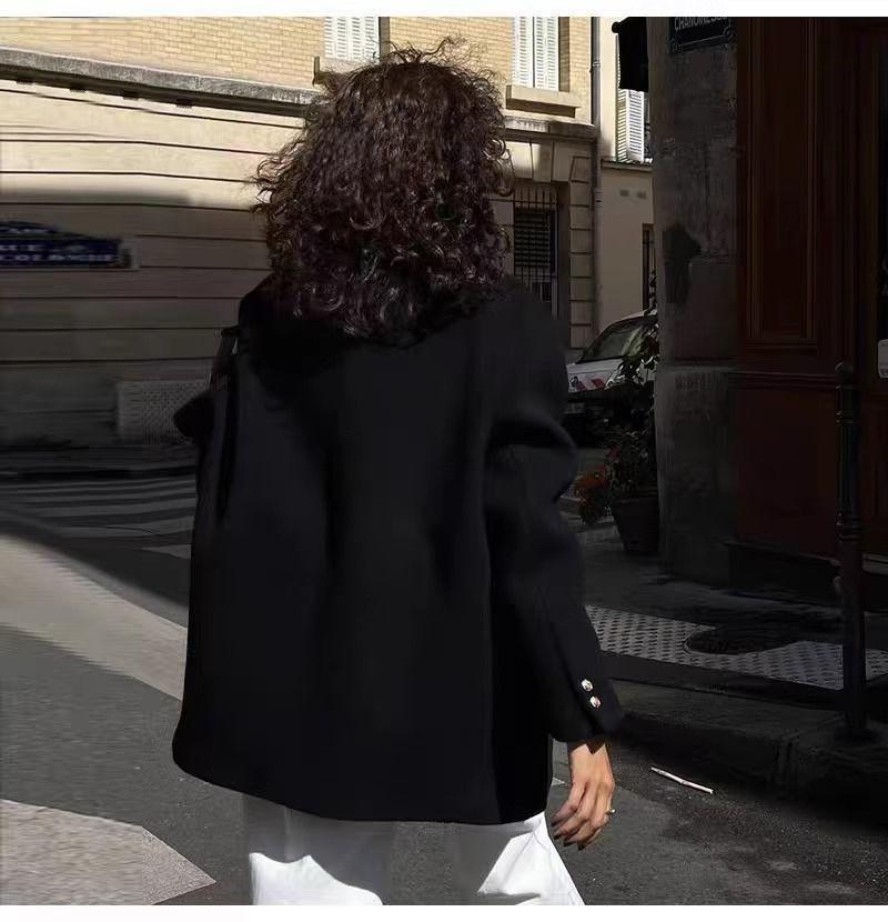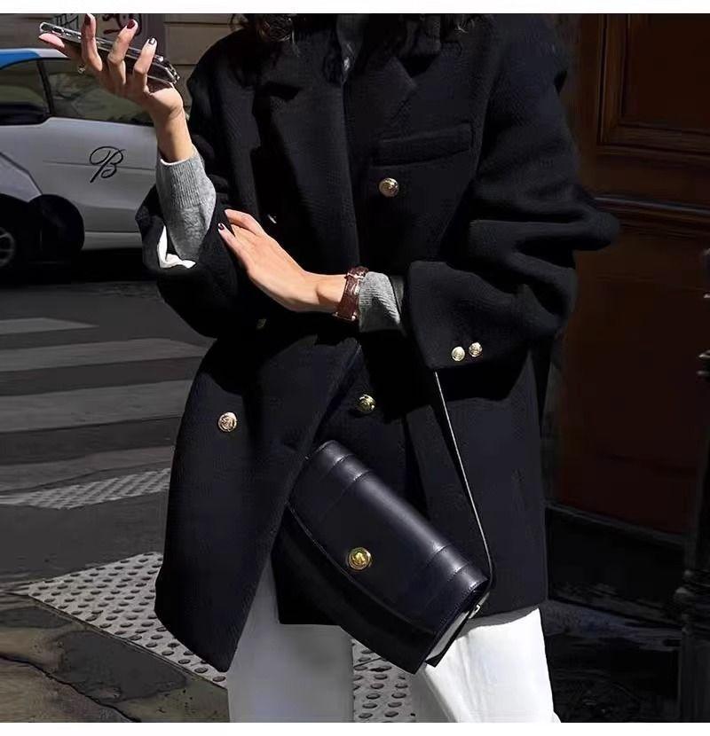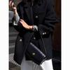 Abrigo de Lana Negro Minimalista Estilo Coreano para Mujer 2025 Otoño/Invierno Nuevo Melaude Estilo Hepburn Abrigo de Lana Grueso Tendencia
